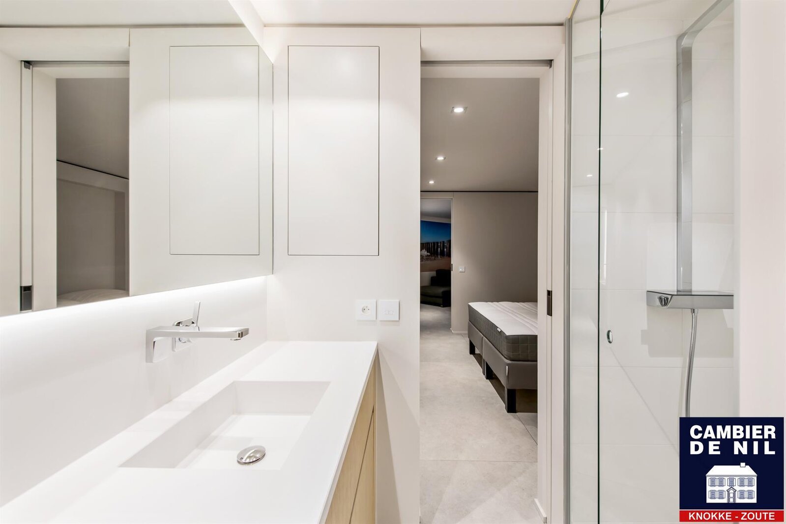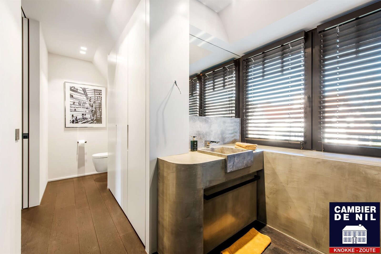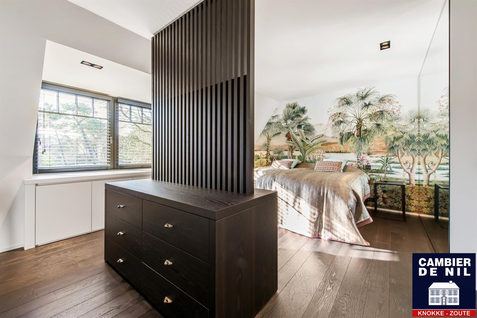 Op de eerste verdieping bevindt zich de master suite met dressing en een luxueuze ensuite badkamer uitgerust met vrijstaand bad, dubbele lavabo, douche en toilet. Daarnaast is er een tweede ruime slaapkamer met dressing en eigen badkamer (douche, dubbele lavabo en toilet). De derde en vierde slaapkamer beschikken over ingemaakte kasten en elk een privatieve sanitaire ruimte met douche, lavabo en toilet.