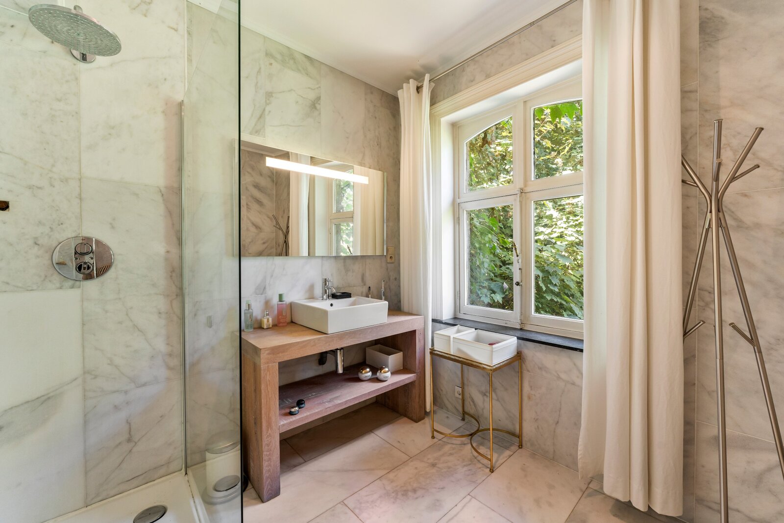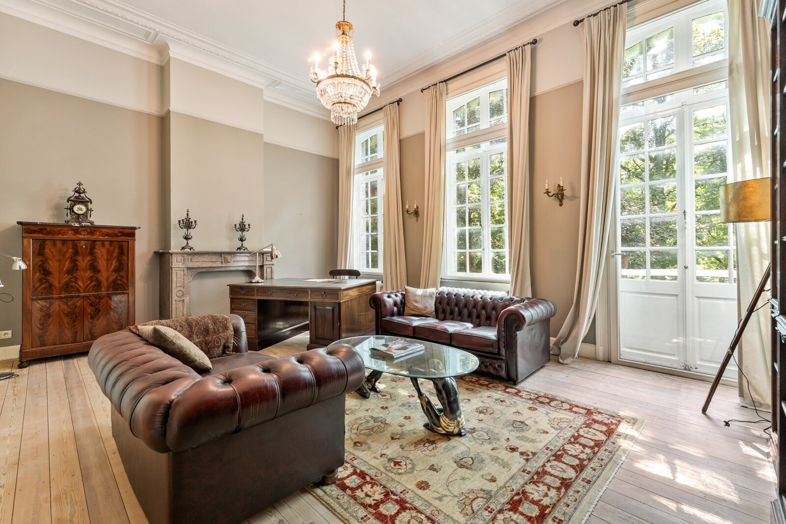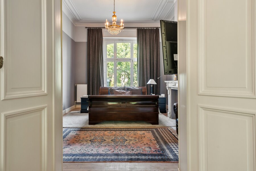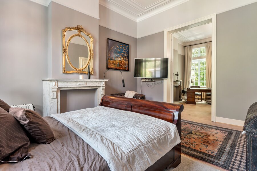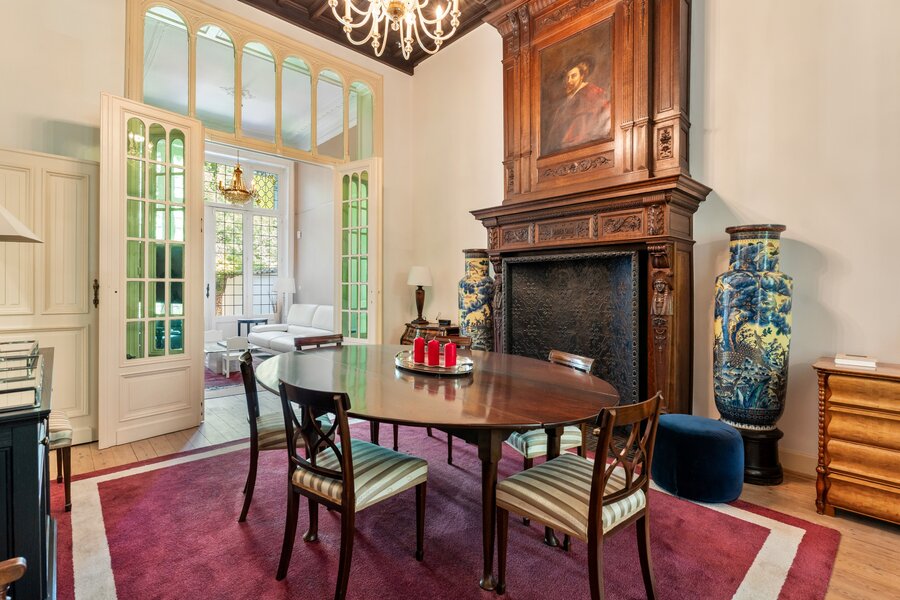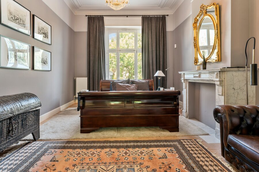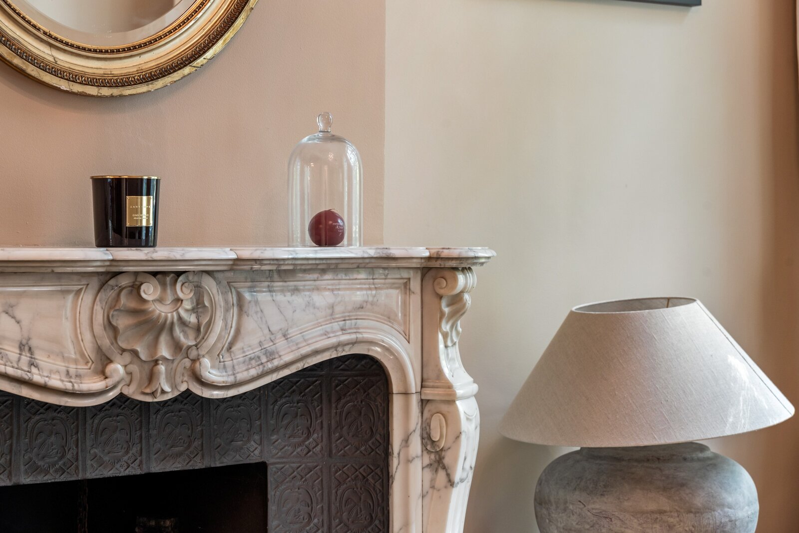 - Authentieke details: marmeren schouwen, parketvloeren, moulures, houten haard