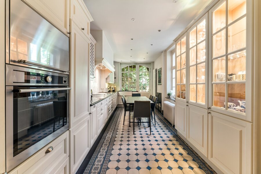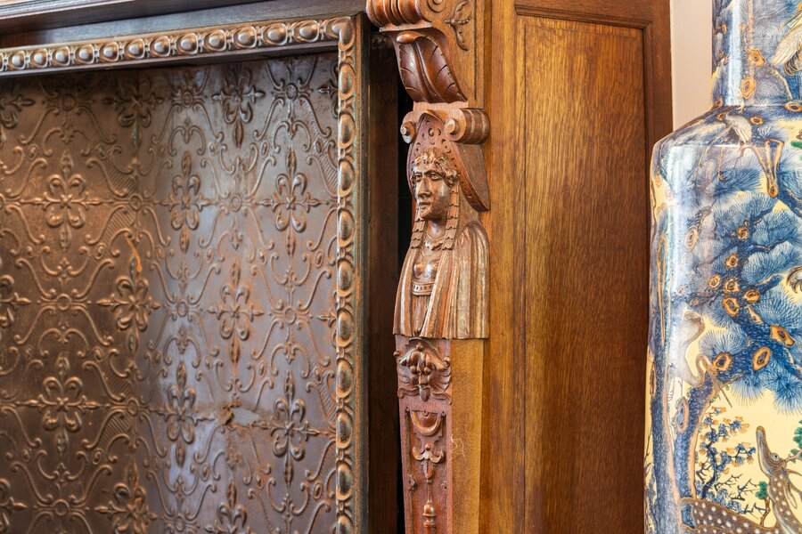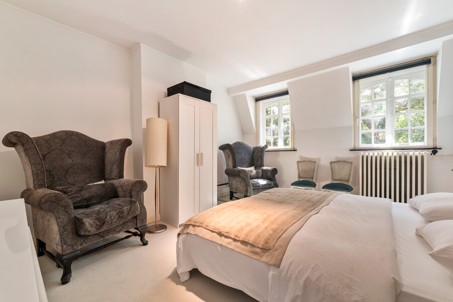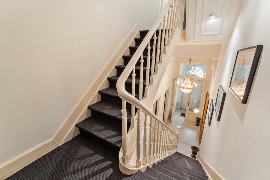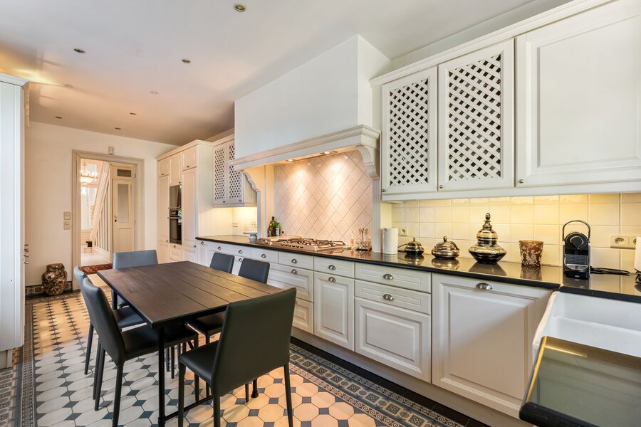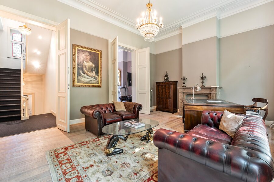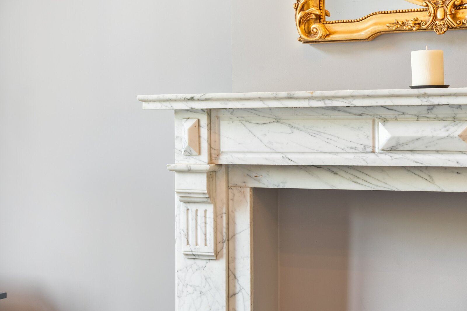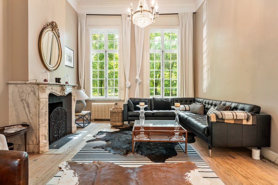 - Authentieke details: marmeren schouwen, parketvloeren, moulures, houten haard