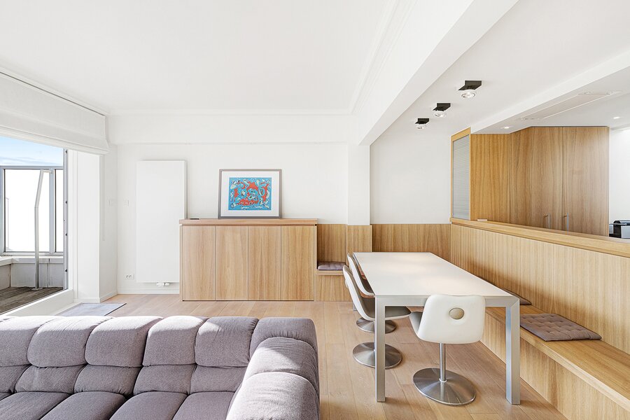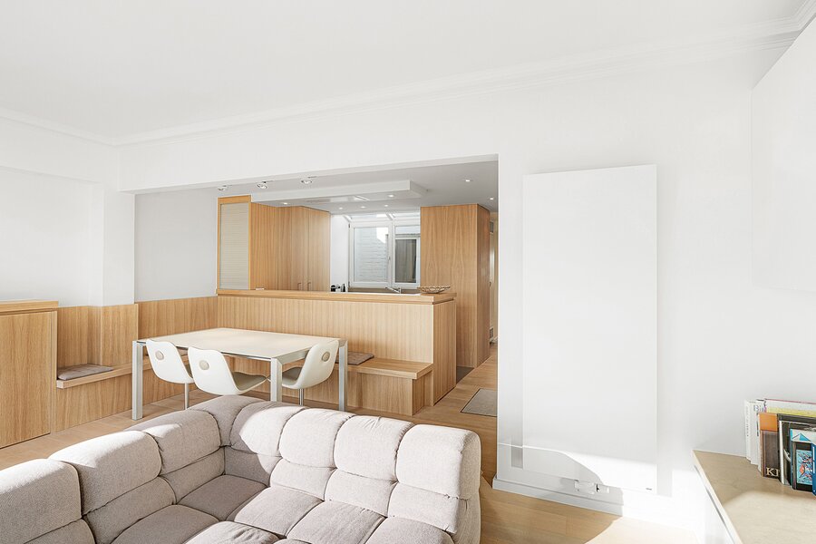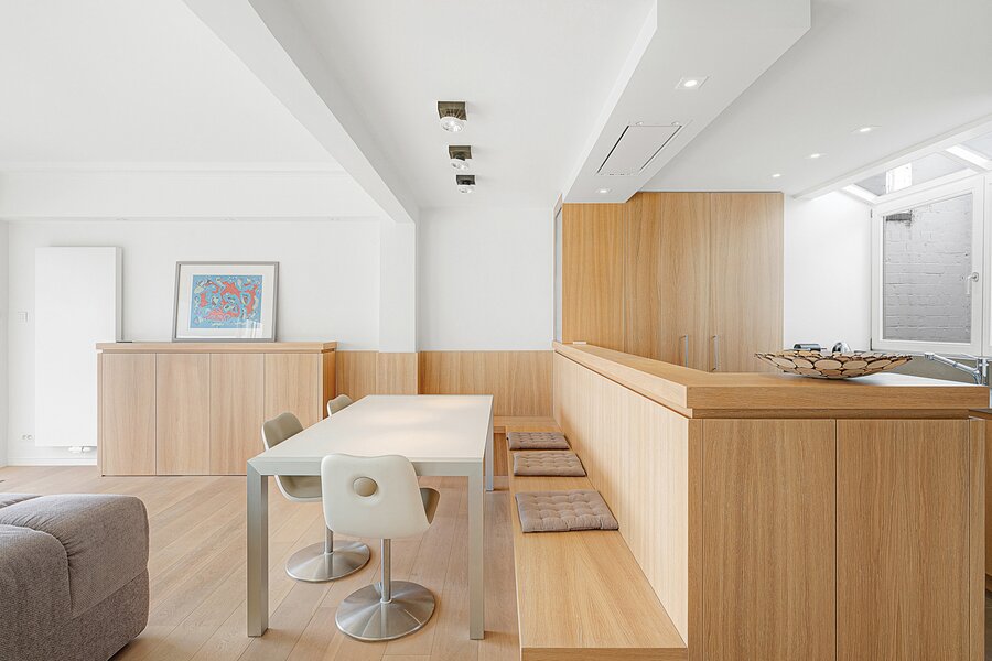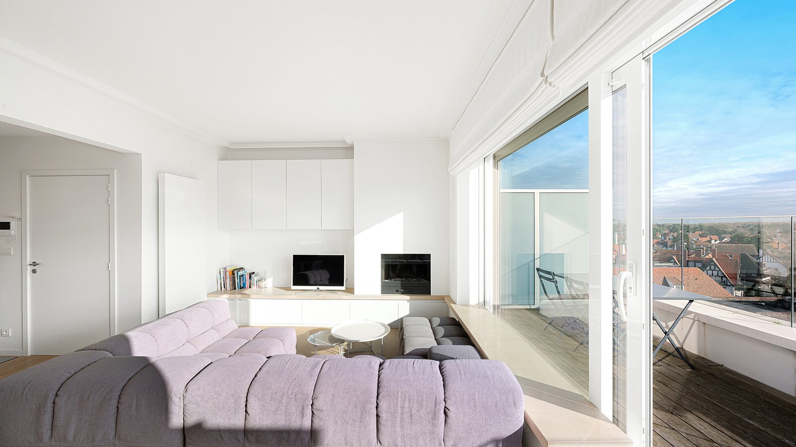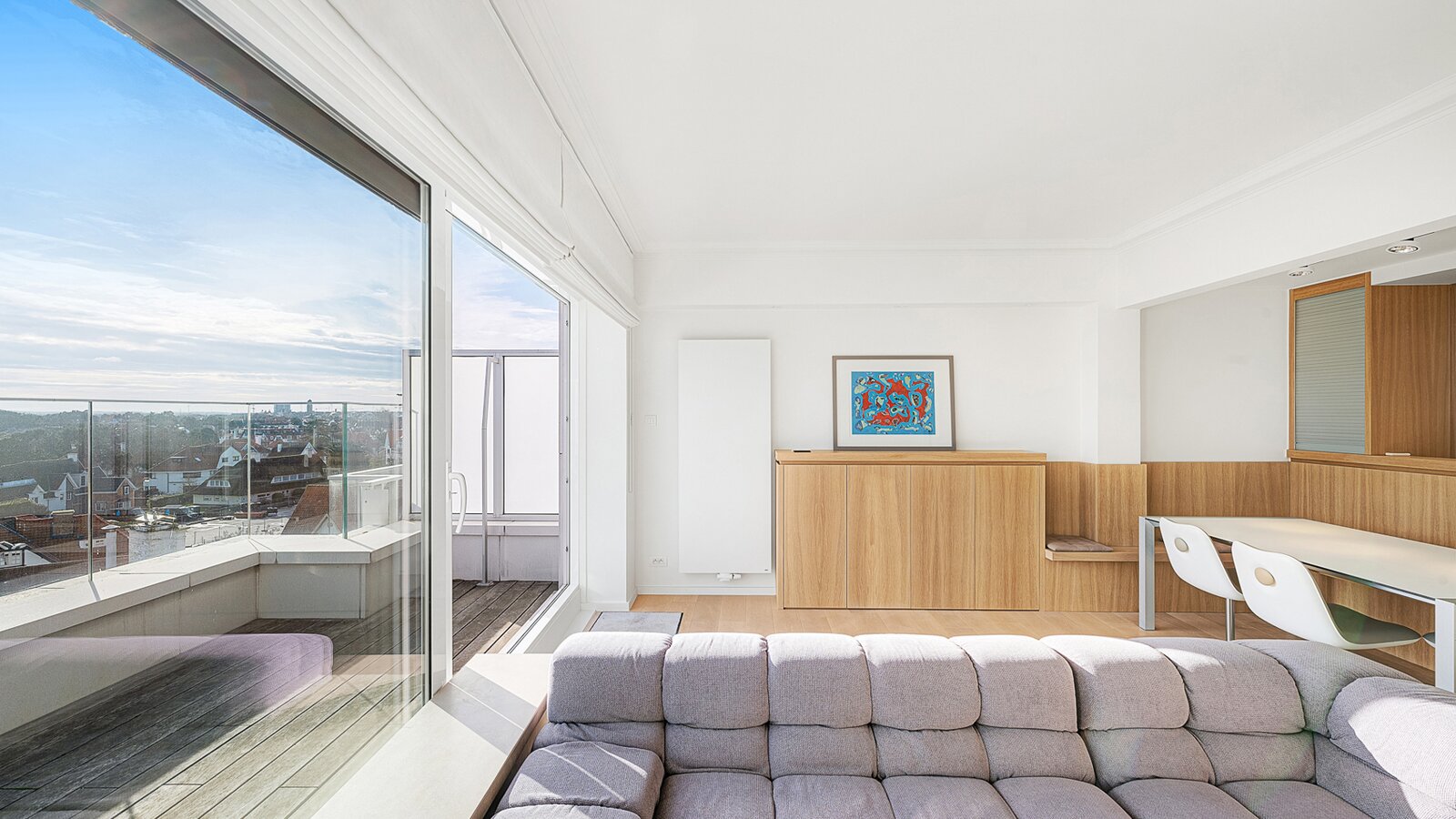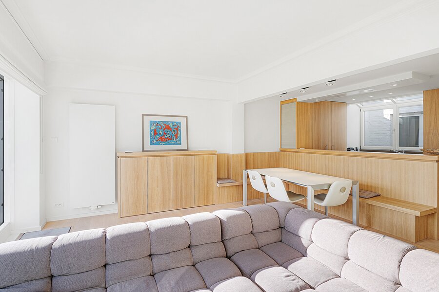 Gezellige penthouse op topligging in het Zoute, tussen de minigolf en het Albertplein, met prachtig open zicht over de villa's. Samenstelling: inkom met vestiaire en gastentoilet. Ruime, zonnige woonkamer met open haard uitgevend op aangenaam zuidgericht terras met panoramisch uitzicht. Ingerichte open keuken, voorzien van alle modern comfort.