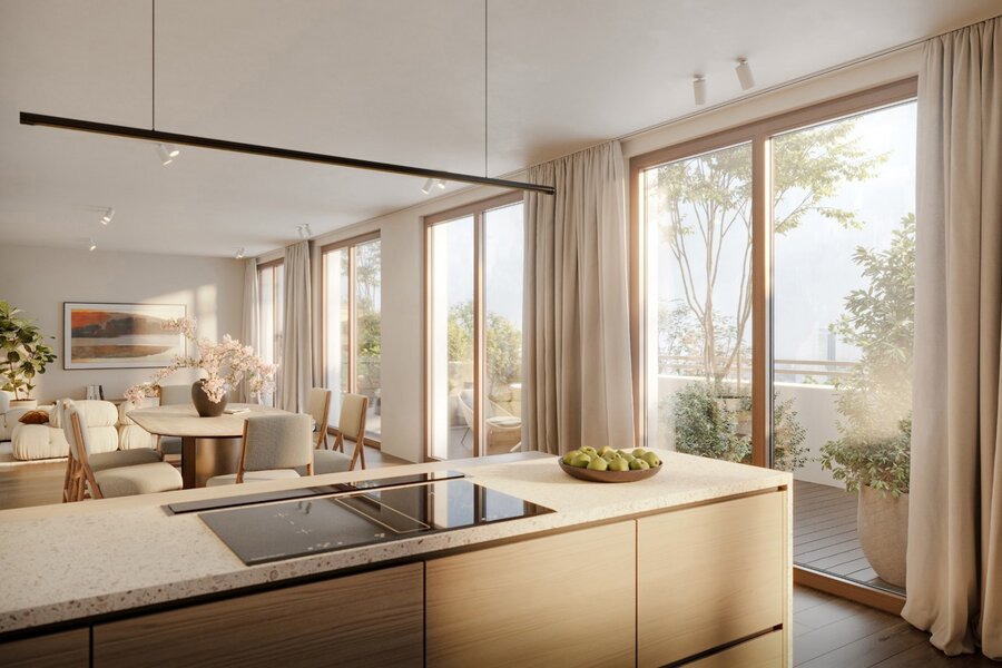 En voor wie écht groots wil wonen: de absolute blikvanger is de riante penthouse met ca. 187 m² bewoonbare oppervlakte en ca. 54 m² terras.