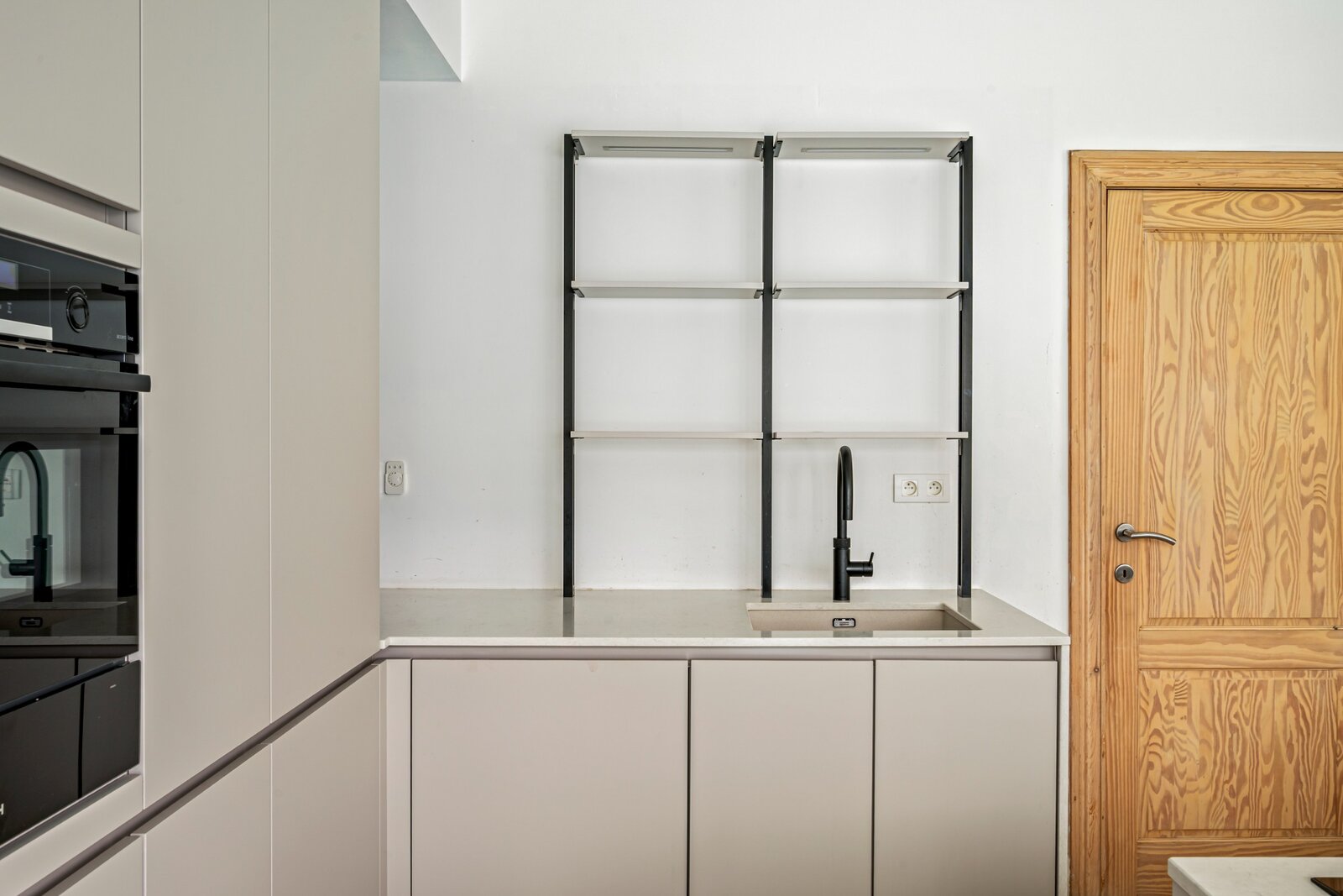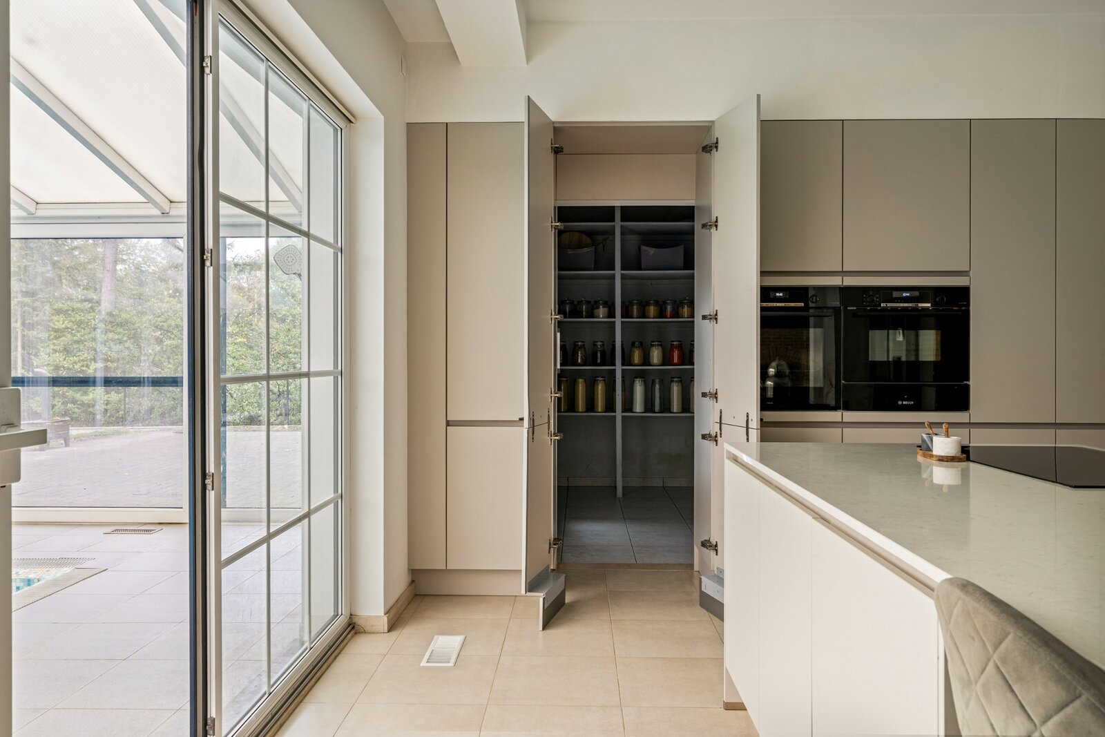 De moderne keuken – ruim en functioneel – is een plek waar koken een beleving wordt. Dankzij de aangrenzende berging blijft alles netjes opgeborgen. Hier woon je in een huis dat ademt: licht, openheid.