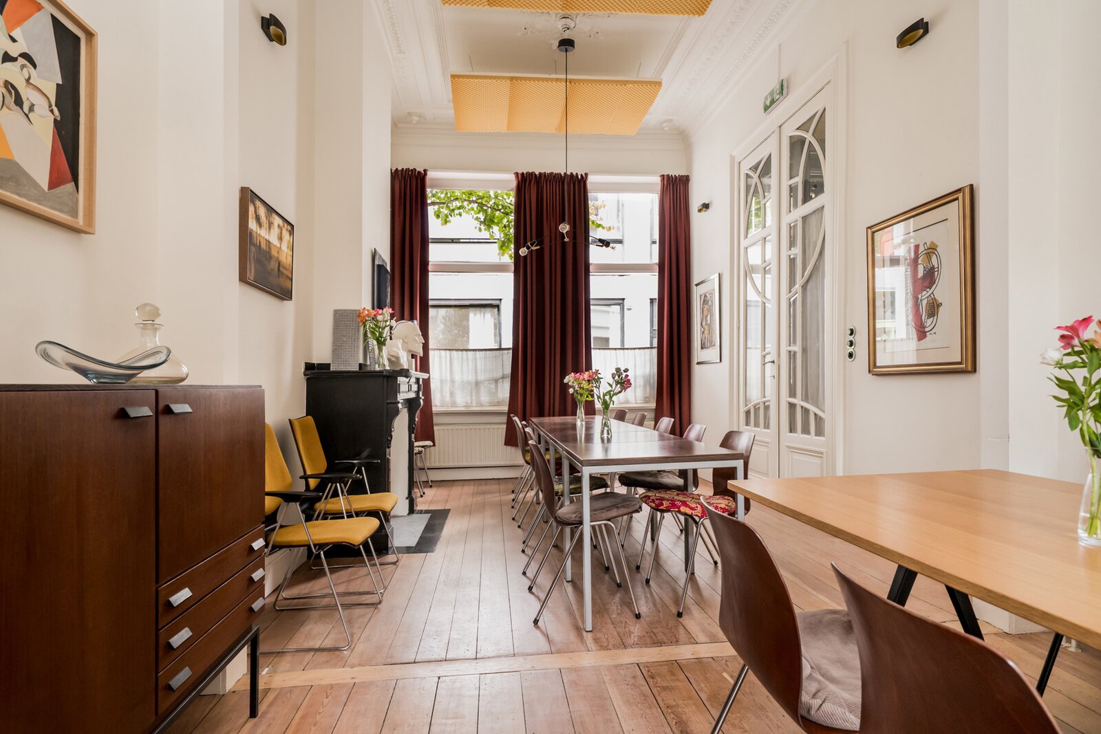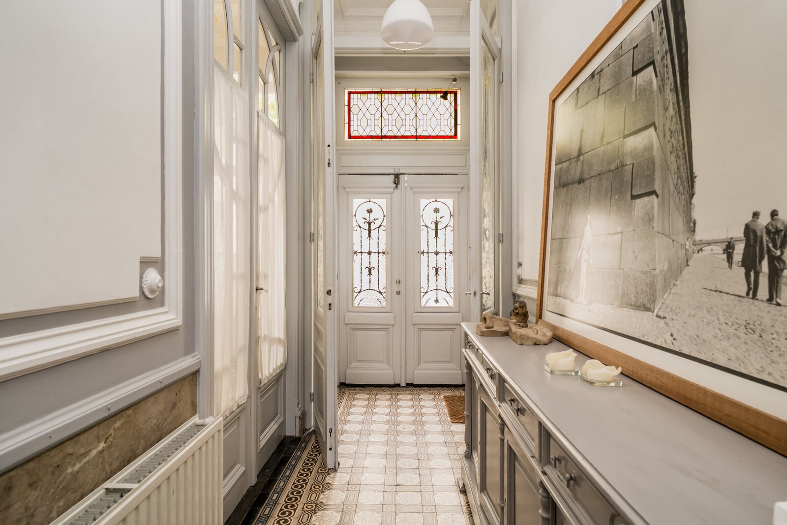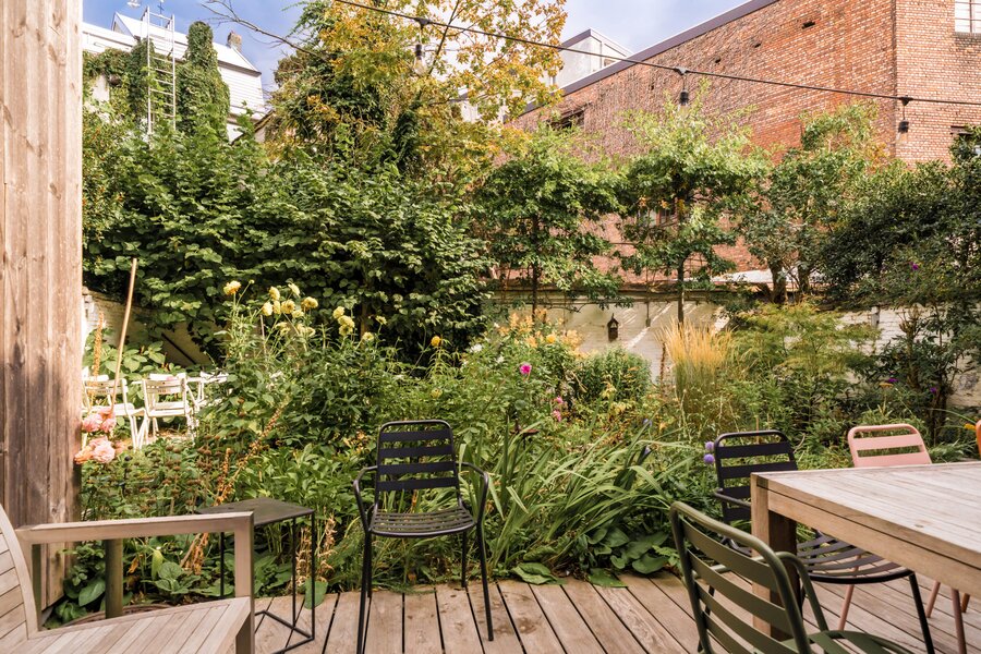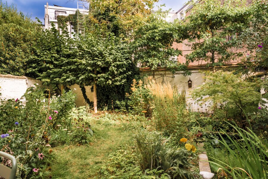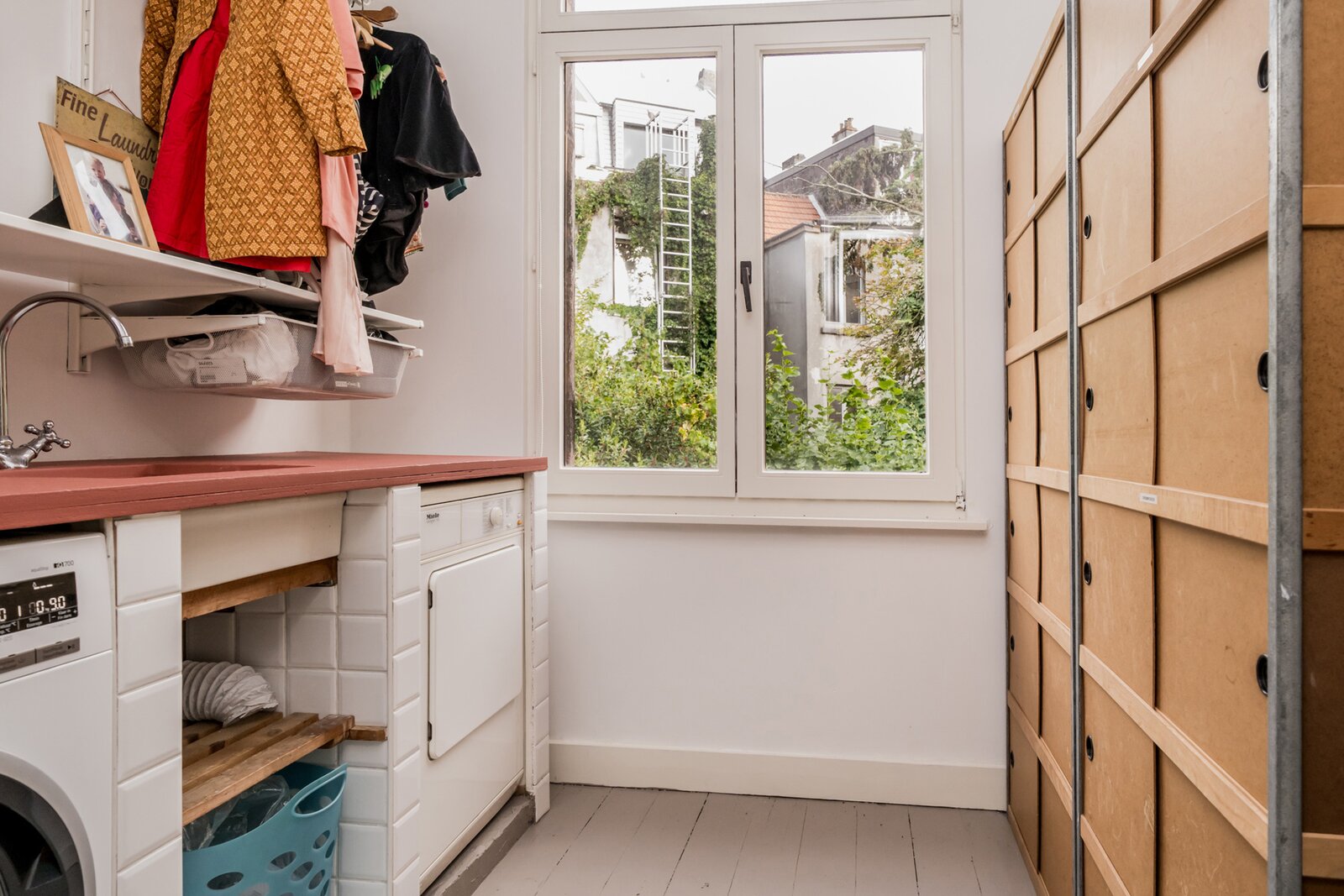U komt binnen via de oude woning met prachtige authentieke elementen en geniet onmiddellijk van het comfort van de nieuwbouwwoning met zeer hoge plafonds en een grote raampartij die rechtstreeks uitkomt op de tuin. De breedte van de tuin is 11 meter, ingericht in Piet Oudolfstijl, waardoor je midden in de stad kan genieten van een eigentijdse oase van groen.