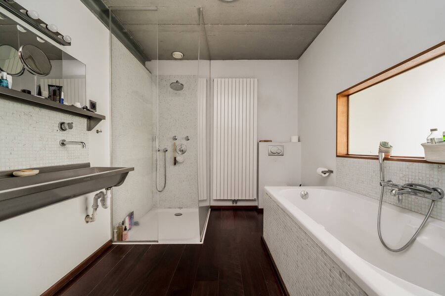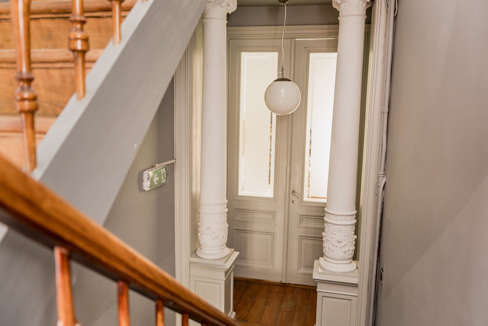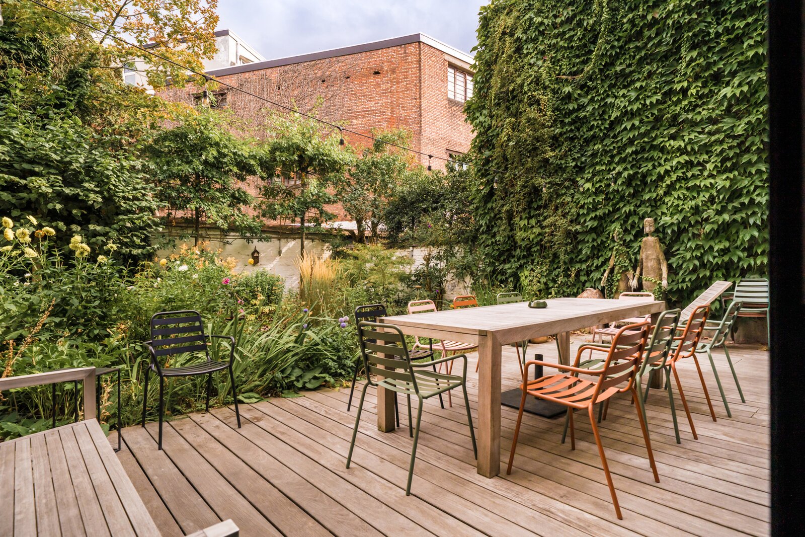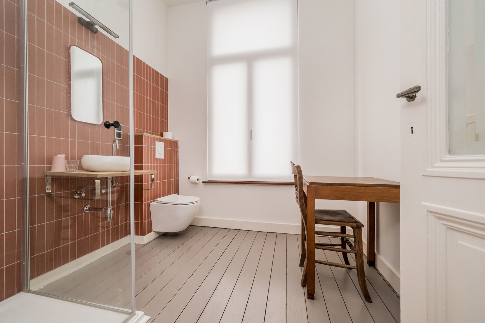 U komt binnen via de oude woning met prachtige authentieke elementen en geniet onmiddellijk van het comfort van de nieuwbouwwoning met zeer hoge plafonds en een grote raampartij die rechtstreeks uitkomt op de tuin. De breedte van de tuin is 11 meter, ingericht in Piet Oudolfstijl, waardoor je midden in de stad kan genieten van een eigentijdse oase van groen.