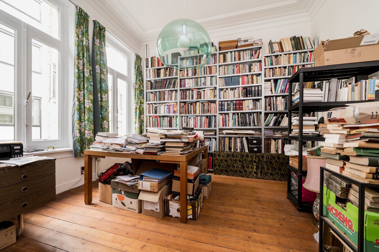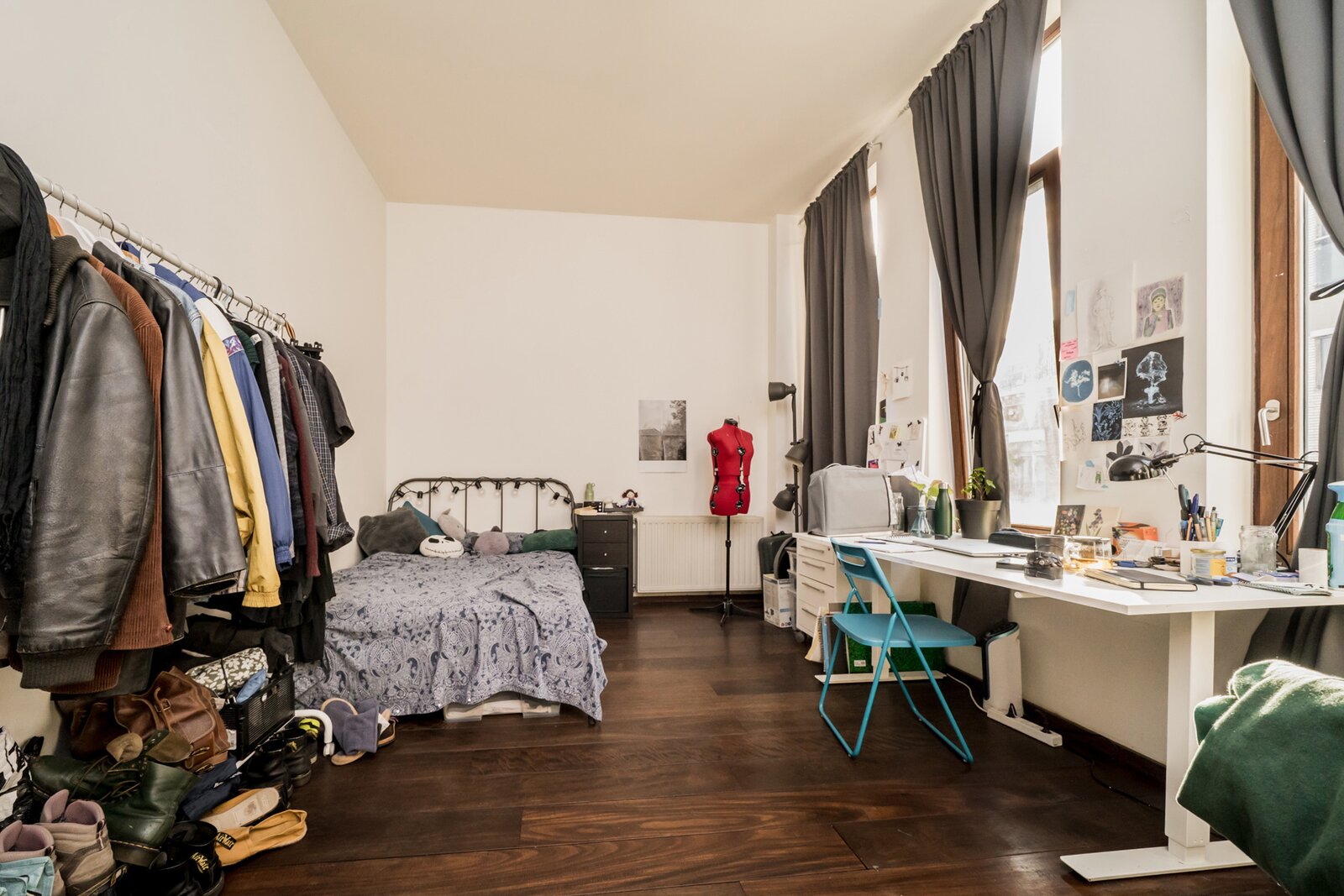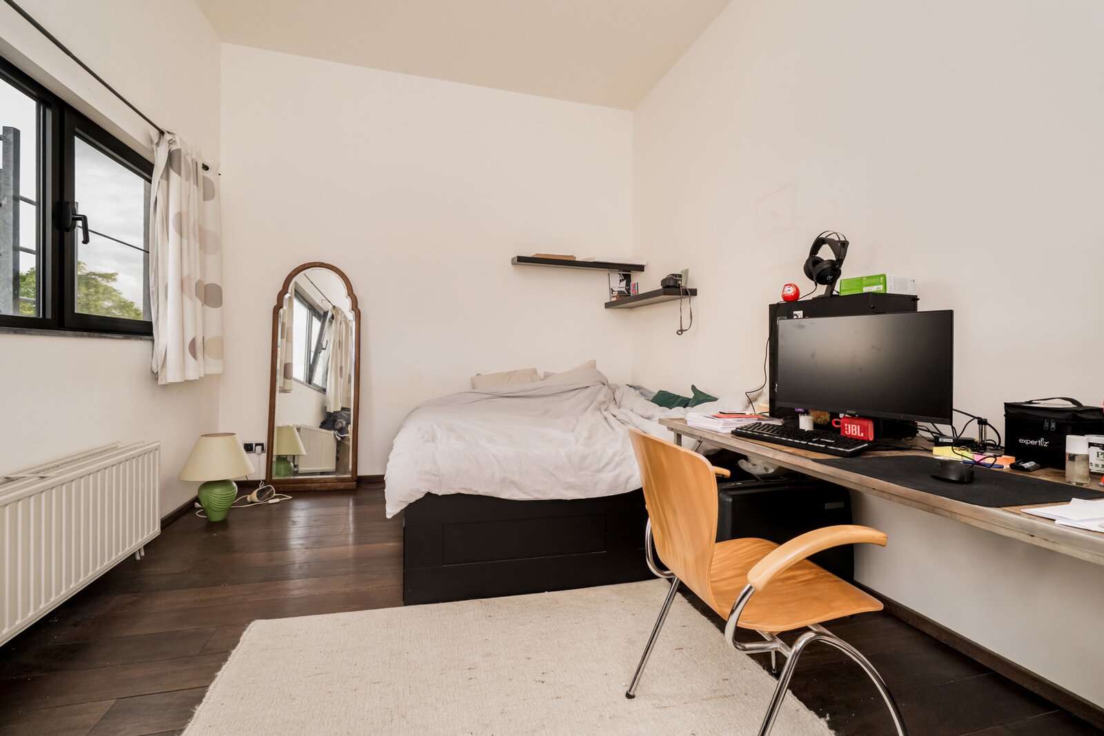 Omdat de woning meer dan 500m² omvat beschikt u over een grote leefruimte met geïnstalleerde keuken, aangrenzend aan de tuin. Via zwevende betonnen treden komt u in de living. In dit (nieuwbouw) gedeelte van de woning vindt u ook nog drie slaapkamers en een badkamer en dressing. Naast de keuken bevindt zich een grote garage (40m²). Als je in de inkomhal de trap omhoog neemt, komt u in een apart gedeelte van de woning met nog eens vier slaapkamers, twee badkamers, een leefruimte met keuken en een dakterras met prachtig zicht op de stad, dit gedeelte staat volledig los van de andere delen van de woning en wordt momenteel in co-housing gebruikt. De woning is ontworpen door de architecten 'Verdickt & Verdickt '. Ideaal als praktijk of kantoorruimte.
