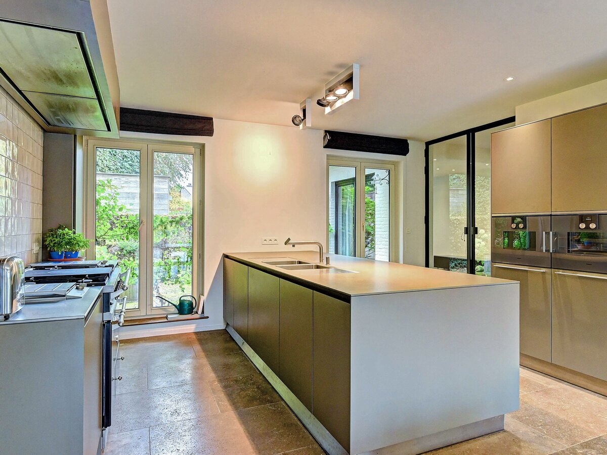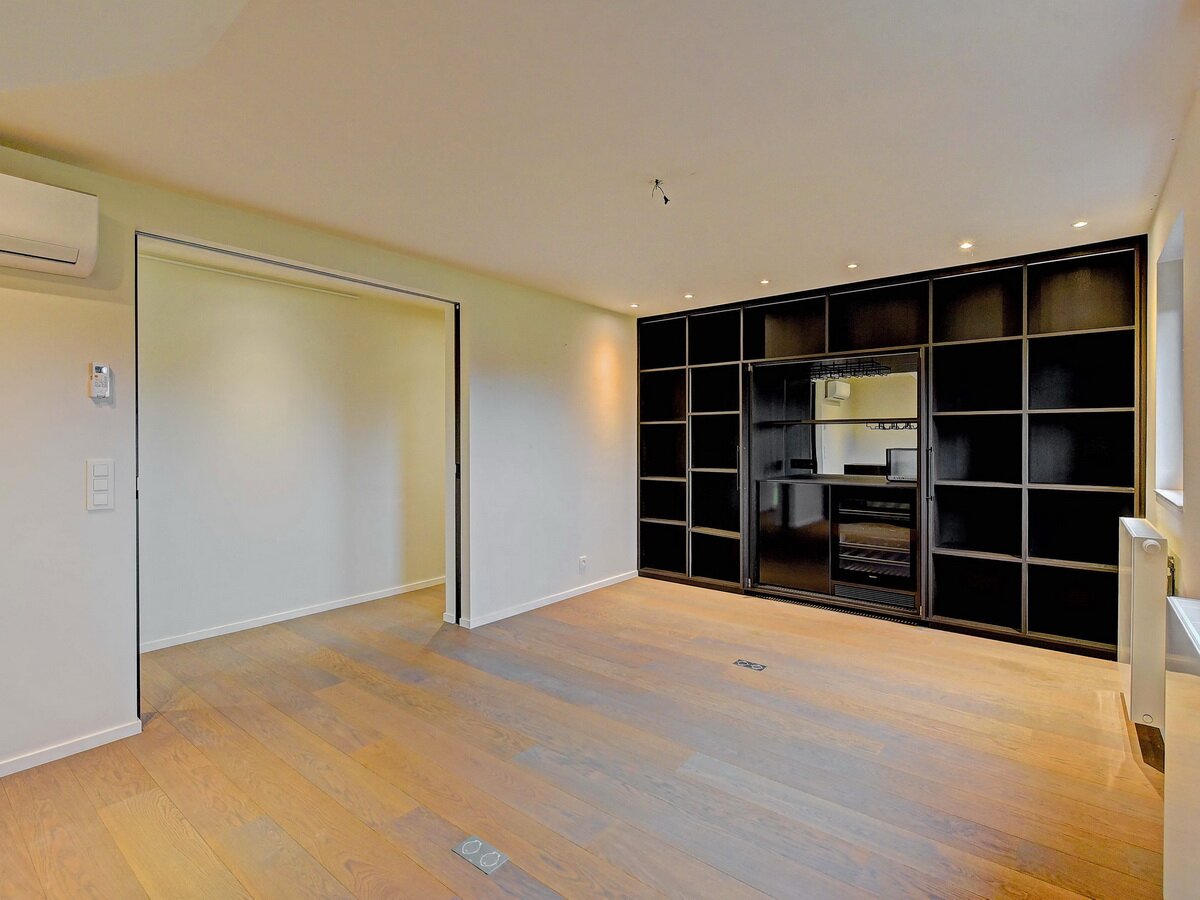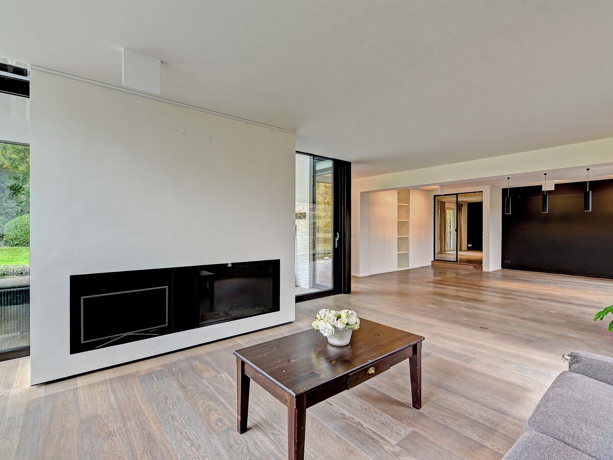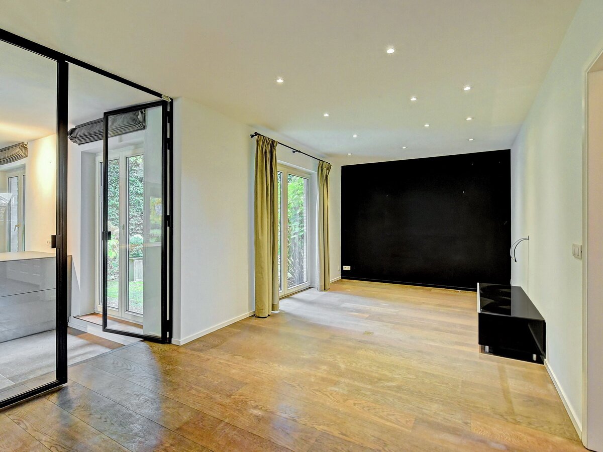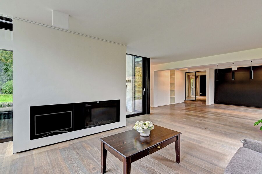 - Gelijkvloers. Ruime en stijlvolle inkomhal, praktische vestiaire & gastentoilet, zeer lichte living en eetkamer met grote raampartijen, TV-kamer of polyvalante kamer, hyper geïnstalleerde, moderne keuken.