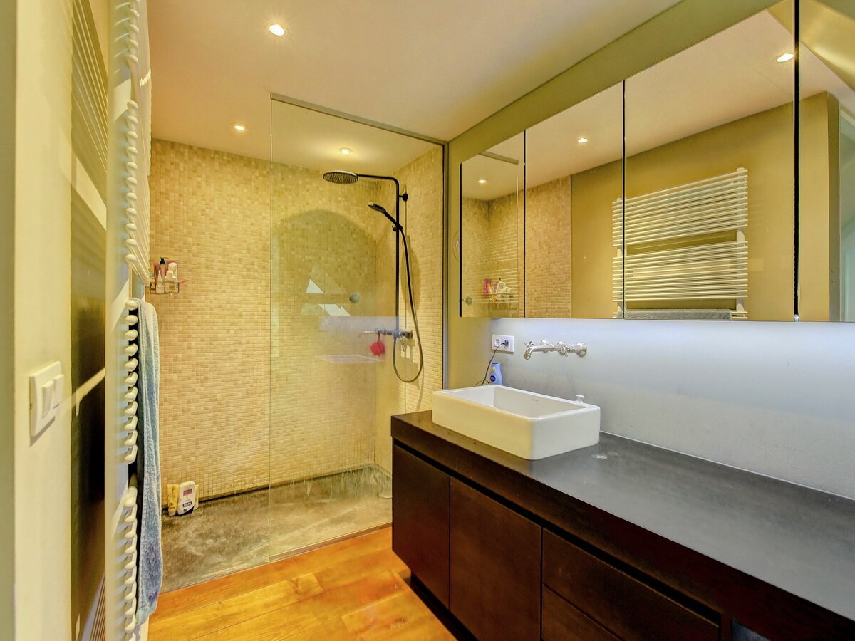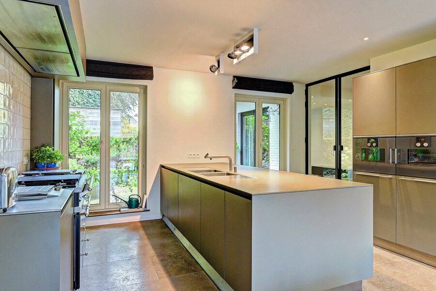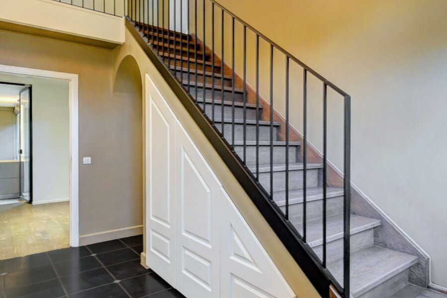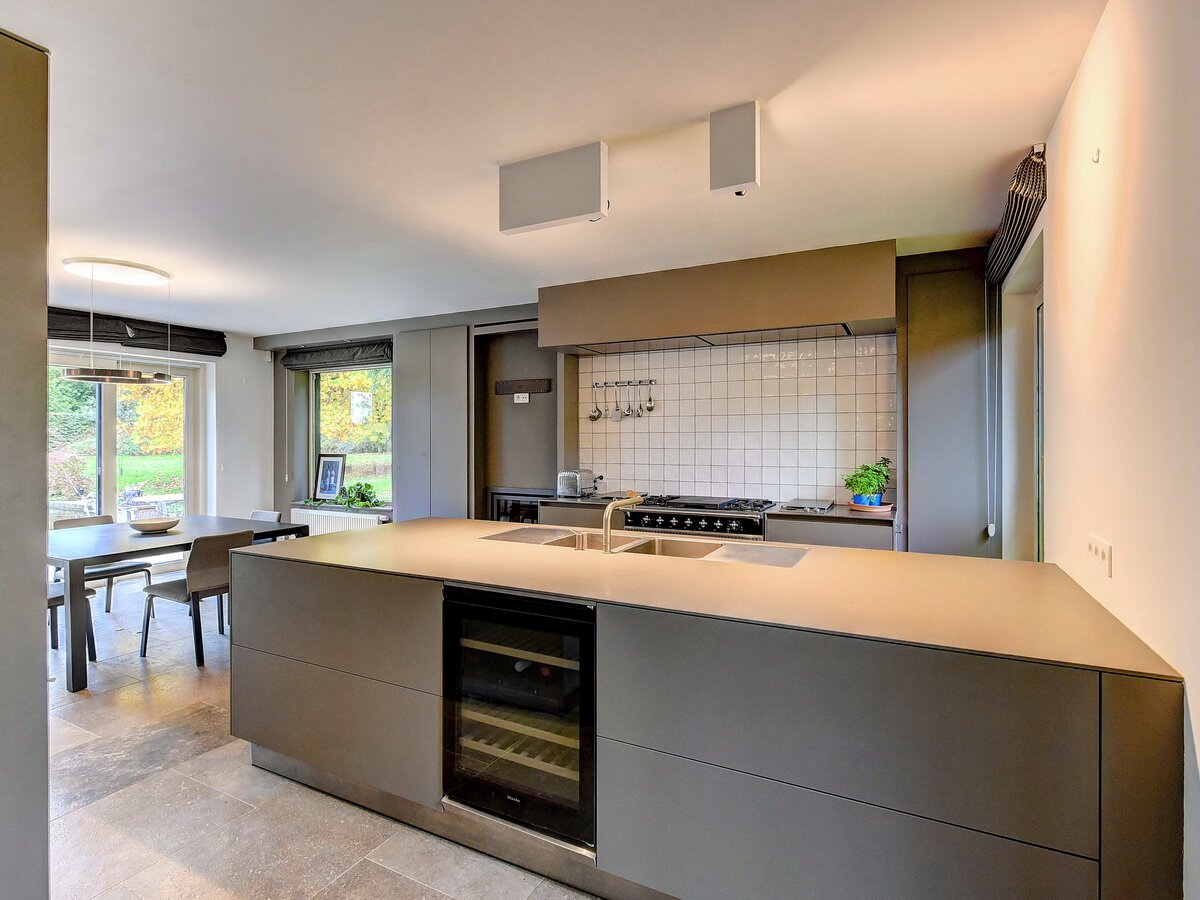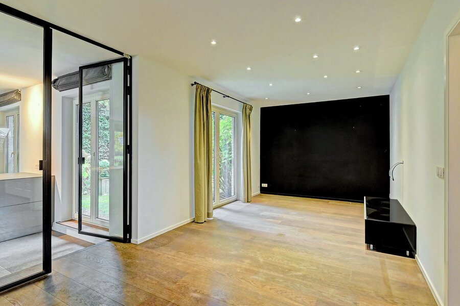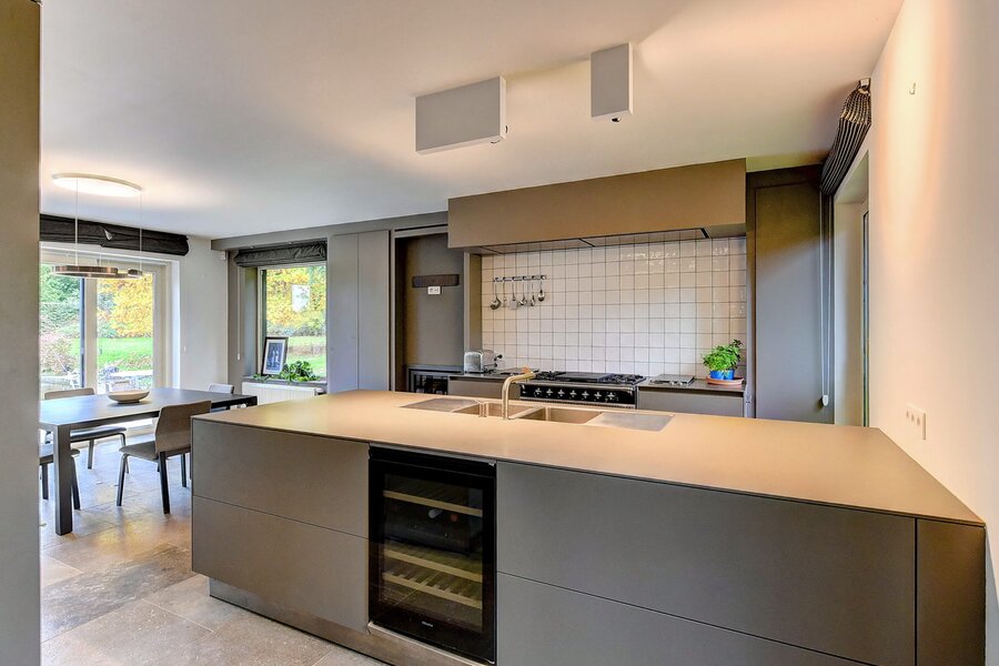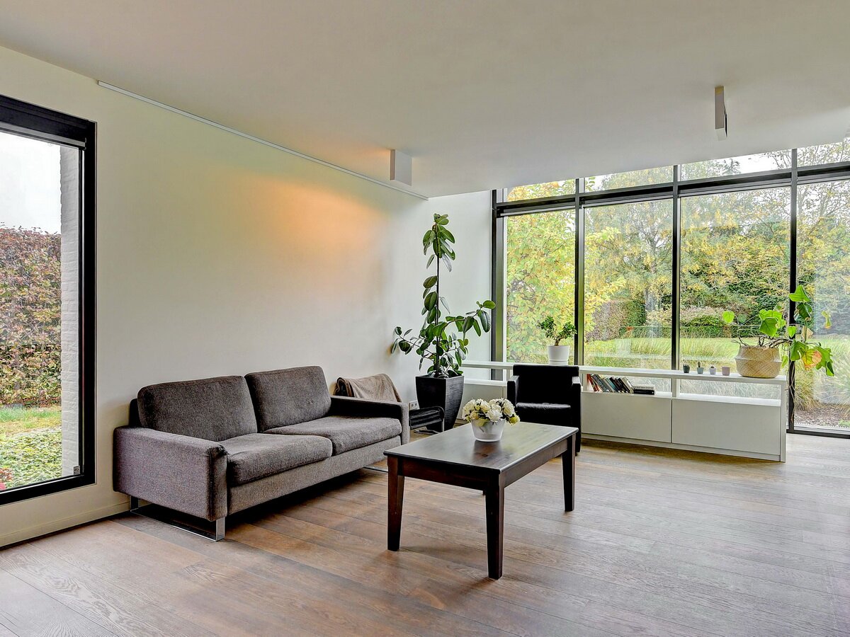 - Gelijkvloers. Ruime en stijlvolle inkomhal, praktische vestiaire & gastentoilet, zeer lichte living en eetkamer met grote raampartijen, TV-kamer of polyvalante kamer, hyper geïnstalleerde, moderne keuken.