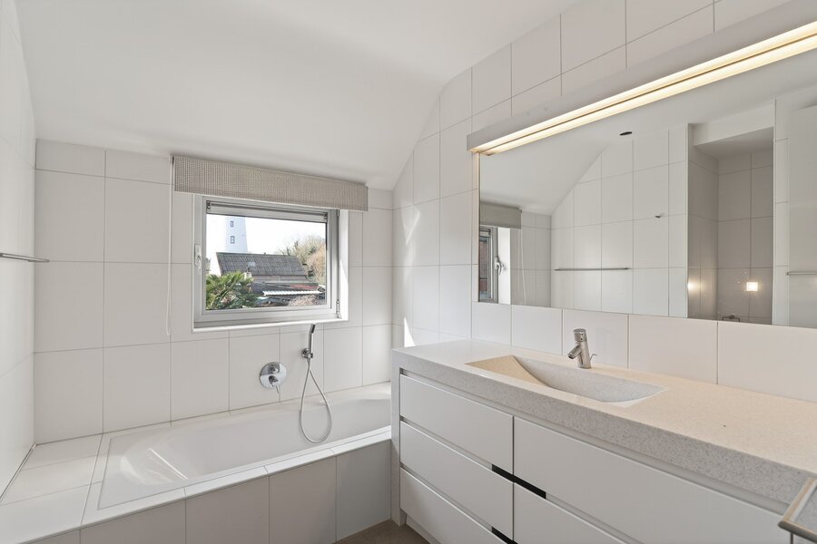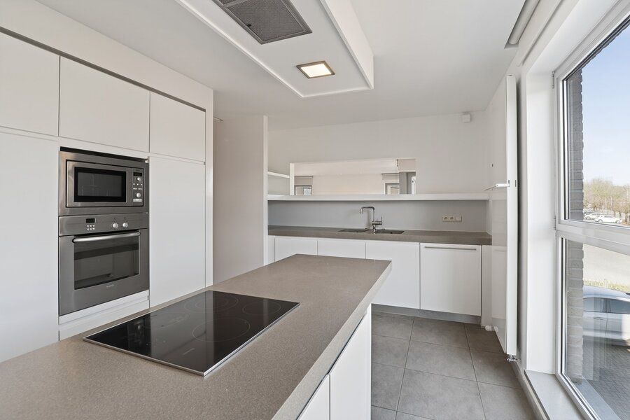 Verder biedt het appartement nog een tweede berging/ wasruimte. Op de benedenverdieping bevindt zich een ruime garage met plaats voor twee wagens achter elkaar, dewelke is inbegrepen in de huurprijs. Het appartement is volledig voorzien van parket en is onmiddellijk beschikbaar.
