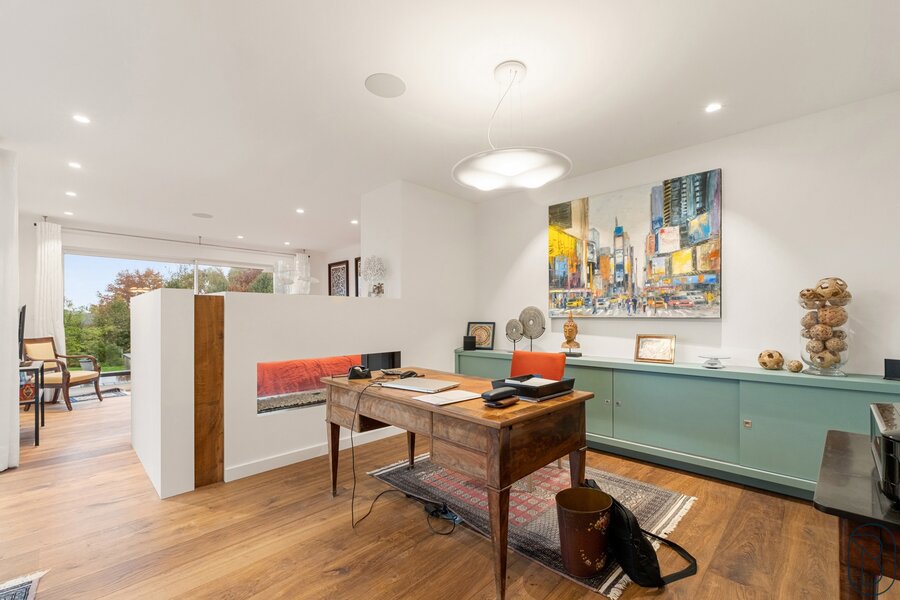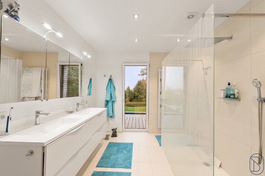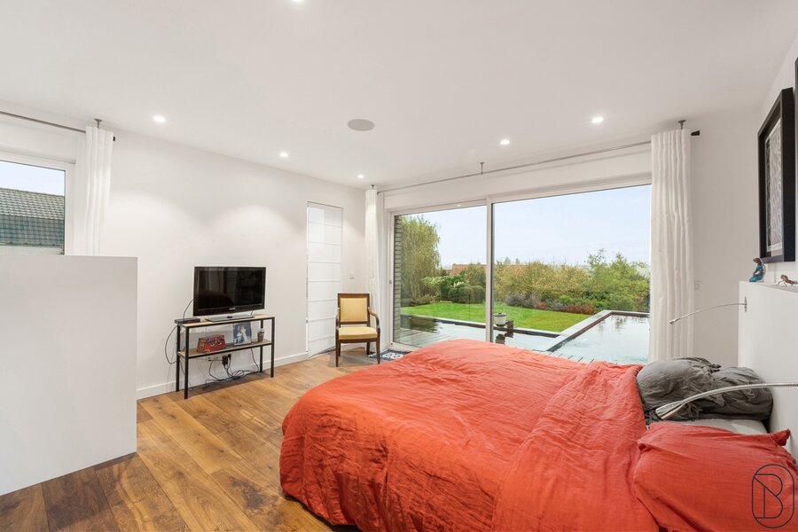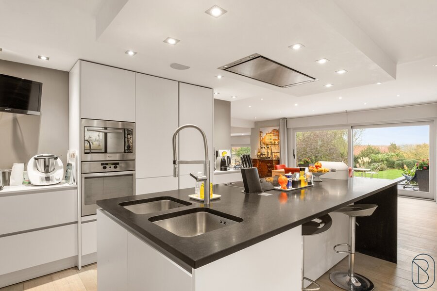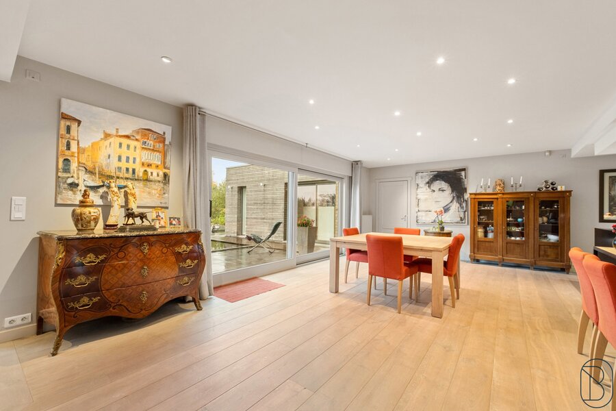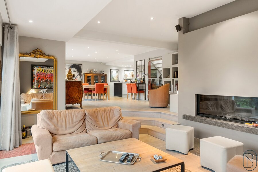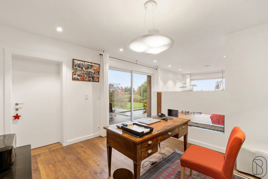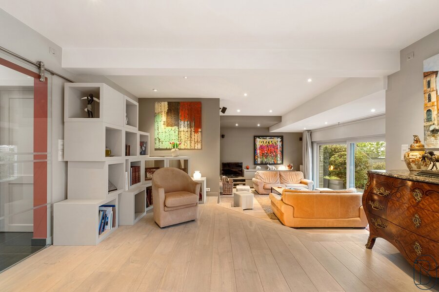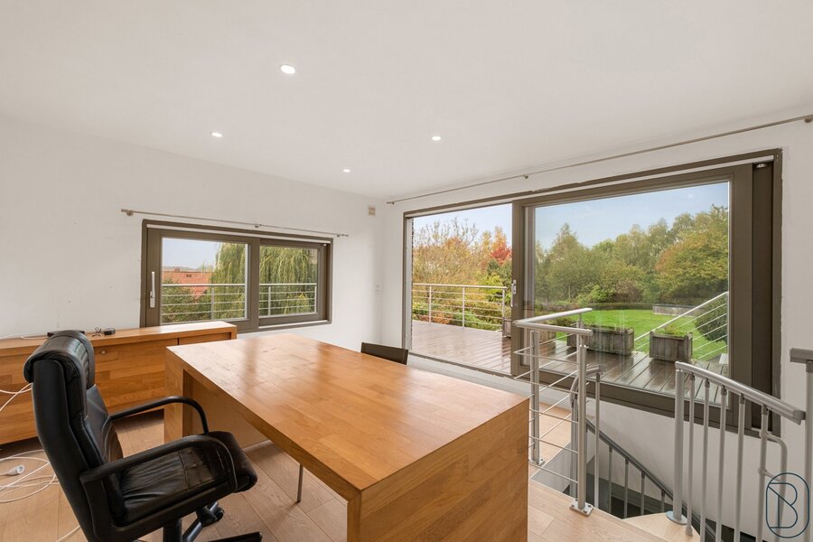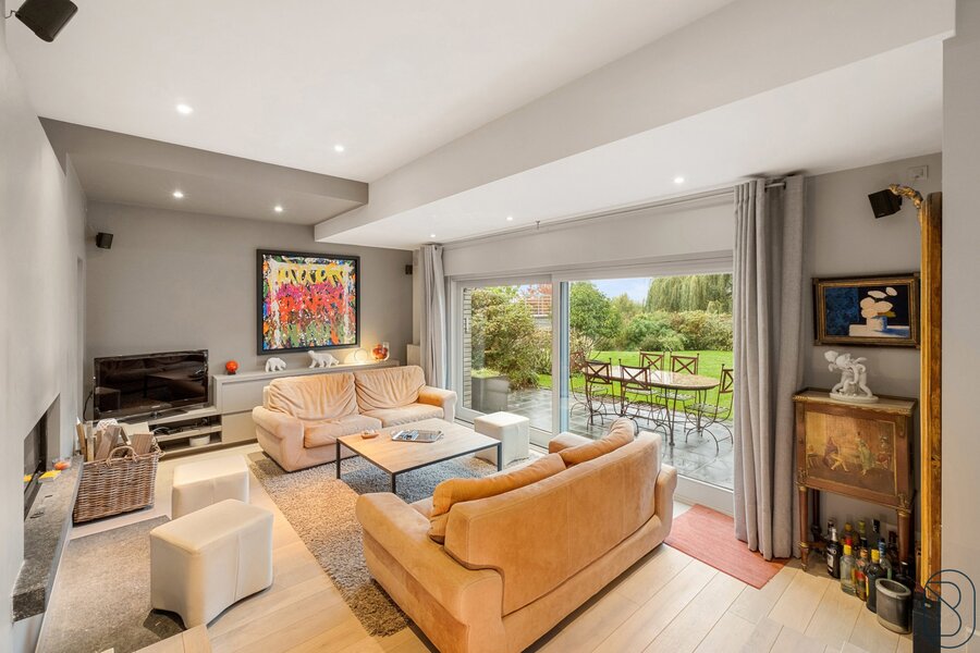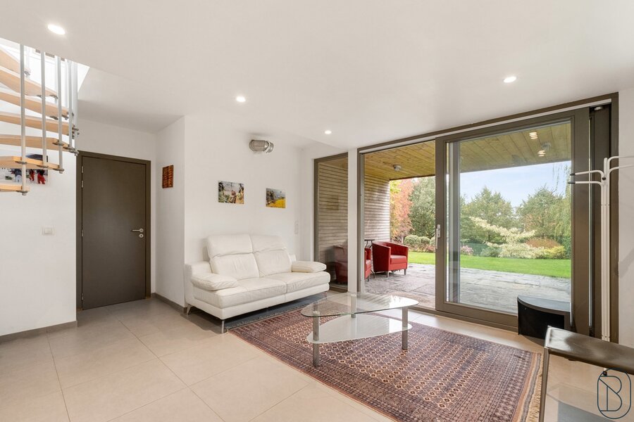 Ook ideaal voor vrije beroepen of nieuw samengestelde gezinnen: zeer ruime woning, kwalitatieve afwerking, lange oprit met parking en een prachtig aangelegde tuin met tuinhuis.