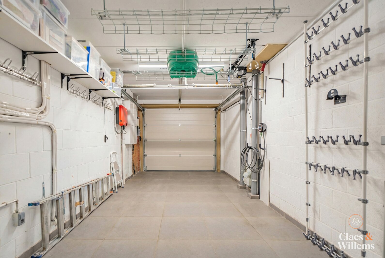 De woning beschikt over een garage voor één wagen en een oprit met plaats voor twee bijkomende parkeerplaatsen.