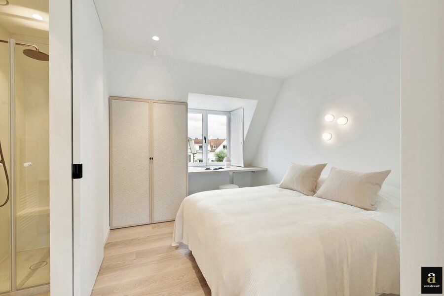Uitzonderlijk hoekappartement van 188m² gelegen in een voorname villa residentie en genietend van fantastische zichten op de Approach minigolf in hartje Zoute. Recent volledig en luxueus gerenoveerd door Quality Properties, met veel aandacht voor afwerking en detail. Indeling van het appartement: Inkomhal met vestiaire en gastentoilet. Een zonovergoten leefruimte met stijlvolle gashaard, ingedeeld met een gezellig salon dat uitgeeft op het terras met mooie open zichten op de Approach minigolf, een sfeervolle eetplaats en een open luxueus ingerichte keuken voorzien van alle comfort. De master bedroom beschikt over maatkasten en een ensuite badkamer met dubbele lavabo, ligbad, inloopdouche en toilet. De drie overige slaapkamers zijn elk uitgerust met ingemaakte kasten en een eigen douchekamer met lavabo en douche. Aparte berging met aansluiting voor wasmachine en droogkast zorgt voor extra comfort. Daarnaast beschikt het appartement over een ruime, privatieve kelder in de residentie en een gemeenschappelijke fietsenberging. Mogelijkheid: dubbele autostaanplaats. Een uitzonderlijk aanbod op toplocatie!