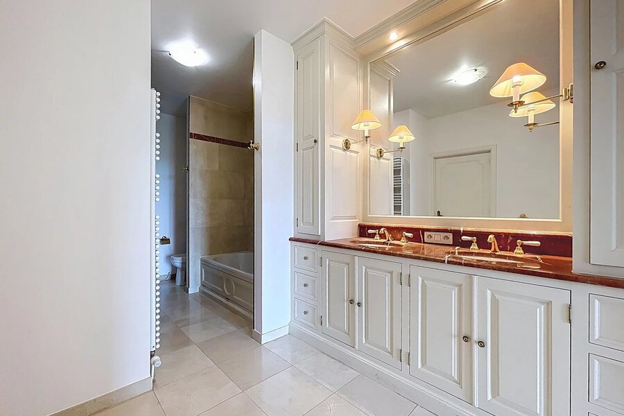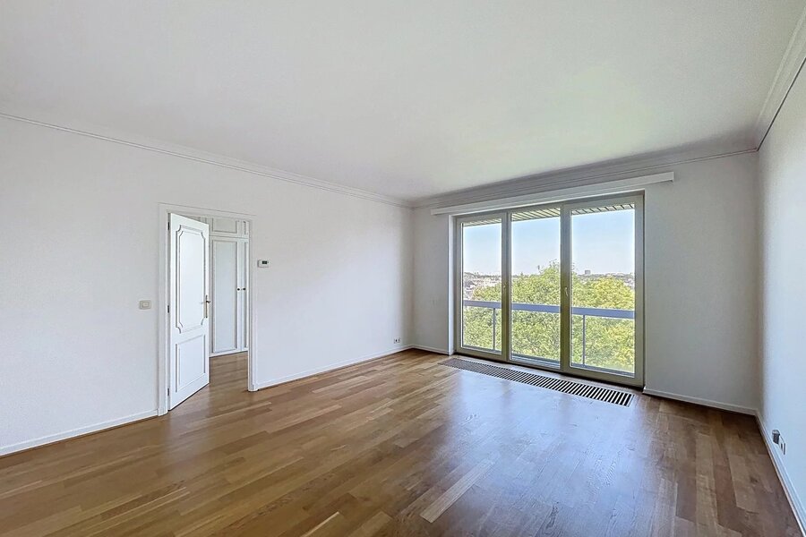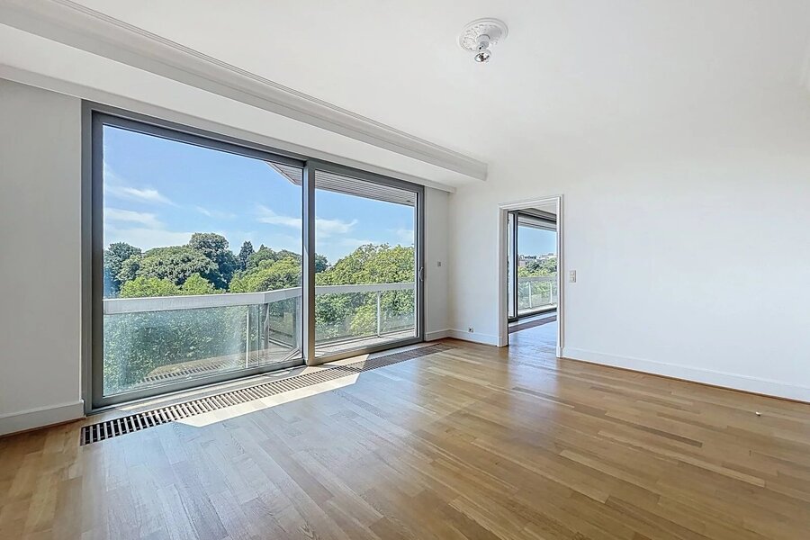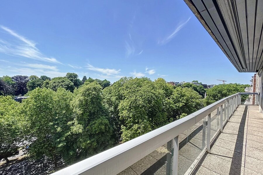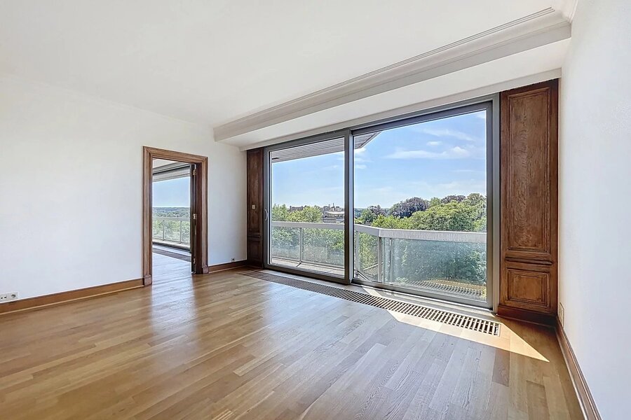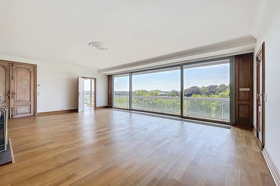 Ideale ligging in een ambassadewijk en op enkele minuten van de Europese instellingen van Montgomery, gelegen op de 7e verdieping tegenover het Stocletpaleis, met een vrij uitzicht over heel Chant d'Oiseau, ruim APPARTEMENT met een bewoonbare oppervlakte van ±270 m². Inkomhal, mooie ontvangstruimten (woonkamer met open haard en elektrische zonnetent, eetkamer en bureau), hyper-geïnstalleerde keuken, 3 slaapkamers (mogelijkheid tot 4), 2 badkamers. Voor- en achterterras.2 parkeerplaatsen (naast elkaar met elektrische laadpaal) in de parkeergarage van het gebouw en 2 kelders. Dit appartement baadt in het licht (ontvangstruimten georiënteerd op het zuidwesten) en de slaapkamers geven uit op het achtergelegen balkon met zicht op het gemeenschappelijk park. Mooie afwerkingen, alarmsysteem, 2 liften, nabijheid van winkels, scholen en openbaar vervoer ... een echte aanrader!! EPC C