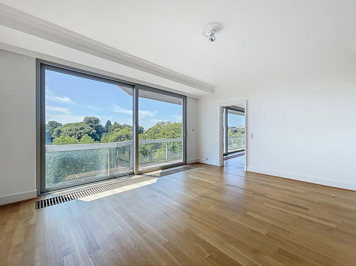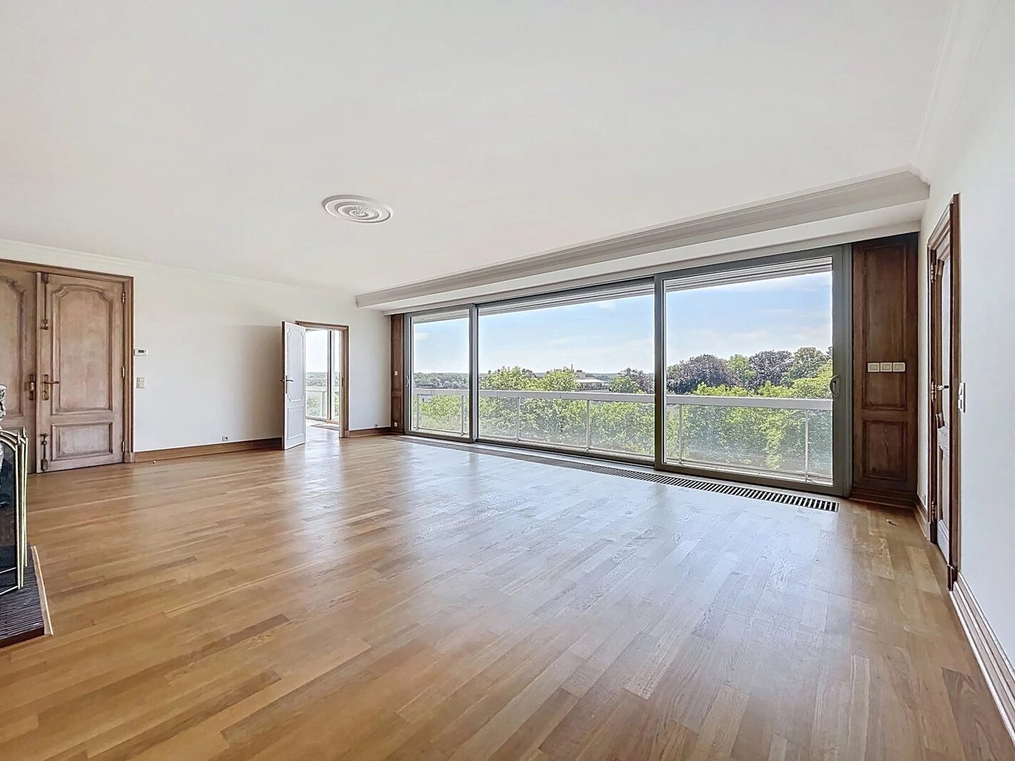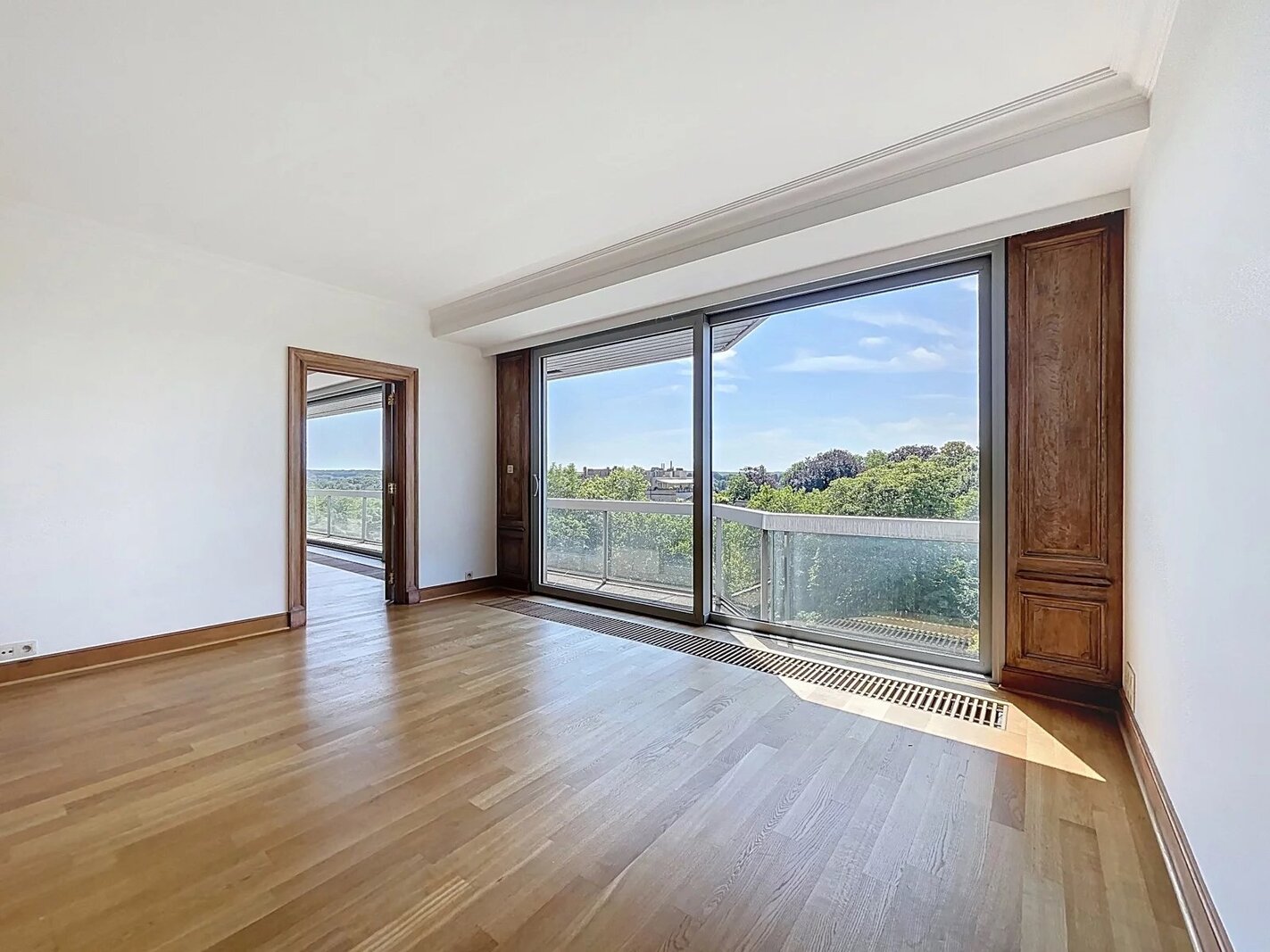 Ideale ligging in een ambassadewijk en op enkele minuten van de Europese instellingen van Montgomery, gelegen op de 7e verdieping tegenover het Stocletpaleis, met een vrij uitzicht over heel Chant d'Oiseau, ruim APPARTEMENT met een bewoonbare oppervlakte van ±270 m². Inkomhal, mooie ontvangstruimten (woonkamer met open haard en elektrische zonnetent, eetkamer en bureau), hyper-geïnstalleerde keuken, 3 slaapkamers (mogelijkheid tot 4), 2 badkamers. Voor- en achterterras.2 parkeerplaatsen (naast elkaar met elektrische laadpaal) in de parkeergarage van het gebouw en 2 kelders. Dit appartement baadt in het licht (ontvangstruimten georiënteerd op het zuidwesten) en de slaapkamers geven uit op het achtergelegen balkon met zicht op het gemeenschappelijk park. Mooie afwerkingen, alarmsysteem, 2 liften, nabijheid van winkels, scholen en openbaar vervoer ... een echte aanrader!! EPC C