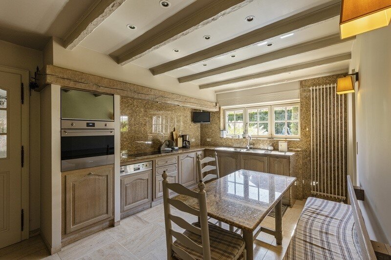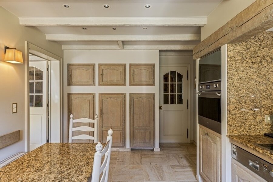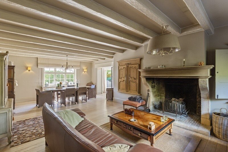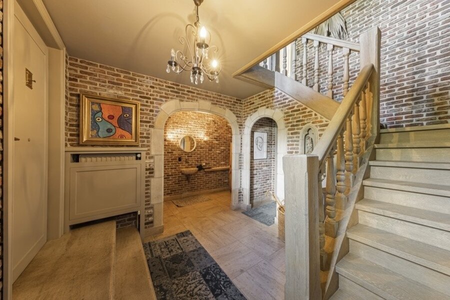 Voel je welkom: elegante inkomhal met gastentoilet en handige mantelberging - een ruime en charmante leefruimte vormt het hart van de woning en is voorzien van een indrukwekkende open haard (Bourgondisch Kruis) -ingerichte keuken voorzien van toestellen - een aparte tuinkamer biedt uitzicht op het groen en kan dienen als bureel, leeshoek of ontbijtruimte - praktische was- en berguimte en een dubbele garage.