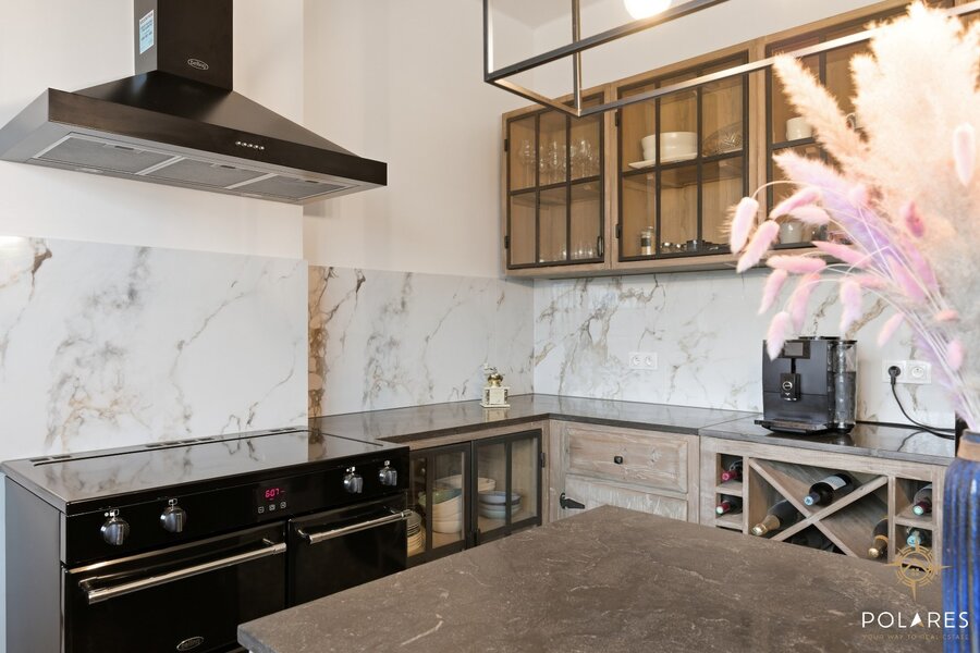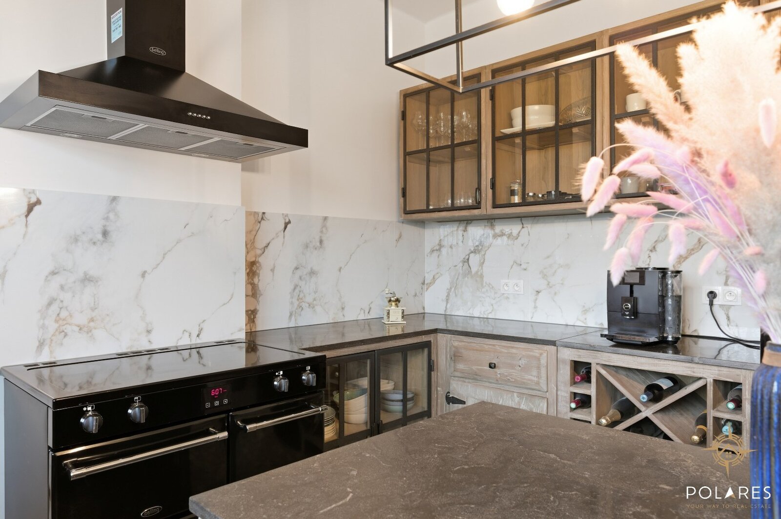 De uiterst lichtrijke leefruimte is het hart van het huis; dankzij de grote raampartijen geniet u hier van een panoramisch zicht op de prachtig aangelegde, zuidgerichte tuin en het uitnodigende terras. De keuken is modern en volledig uitgerust en slim geschakeld met een praktische bureauruimte.