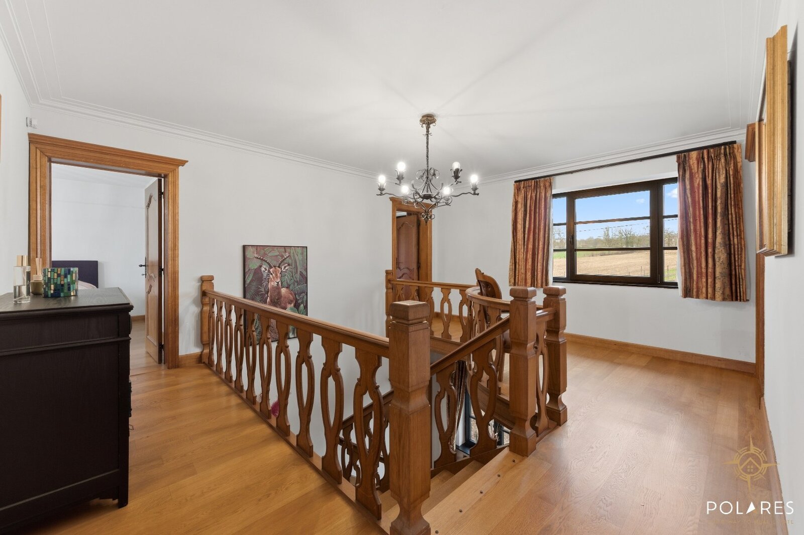 Bij het betreden van de woning wordt u onmiddellijk verwelkomd door een royale inkomhal. De prachtige trap vormt hier het centrale pronkstuk en zet direct de toon voor de hoogwaardige afwerking die u in de rest van de villa terugvindt.