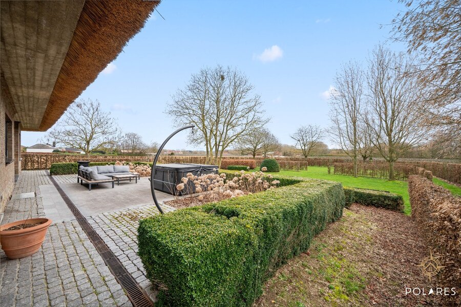 Buiten zet de luxe zich voort. De tuin is een waar paradijs waar u in alle privacy kunt ontspannen met een uniek zicht op de achtergelegen boomgaard. Er is verder een inpandige garage, terwijl de oprit parkeergelegenheid biedt aan meerdere wagens.