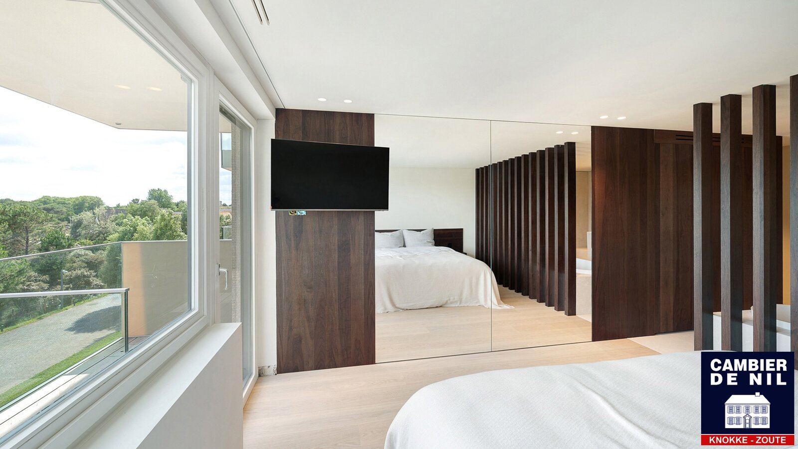 Indeling: ruime inkomhal met vestiaire en gastentoilet, fantastische eetkamer met prachtige open keuken met onneembaar zicht op zwin én zee en een heerlijk zonneterras, uiterst ruime salon met transparant zicht op de zee en duinen + mooi terras. In de vleugel achteraan bevinden zich vijf volwaardige slaapkamers, elk met prachtige zichten over het Zwin, en vier bad- of doucheruimtes.