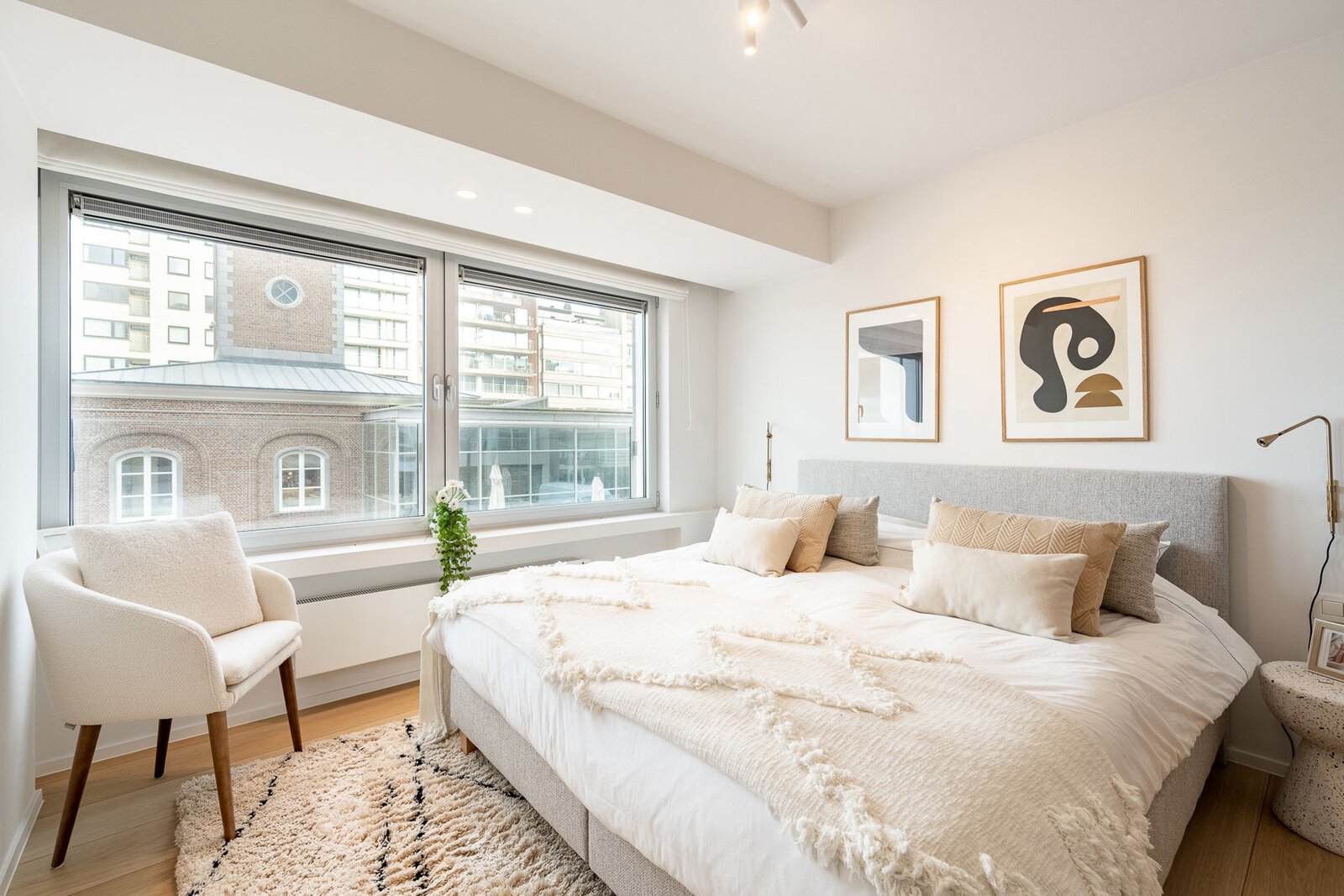 Dit uitzonderlijke hoekappartement combineert een frontaal zeezicht met een prachtig panorama over het Lichttorenplein.