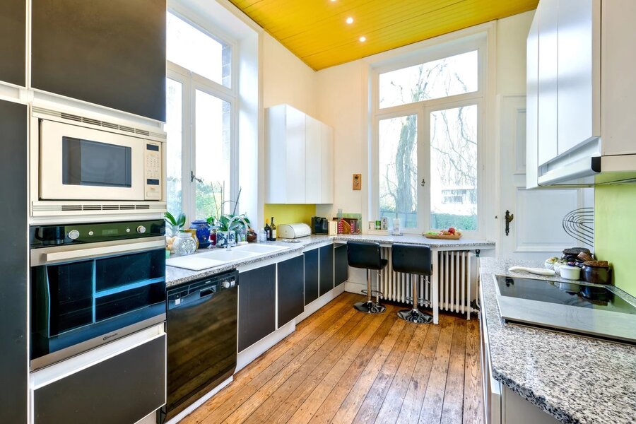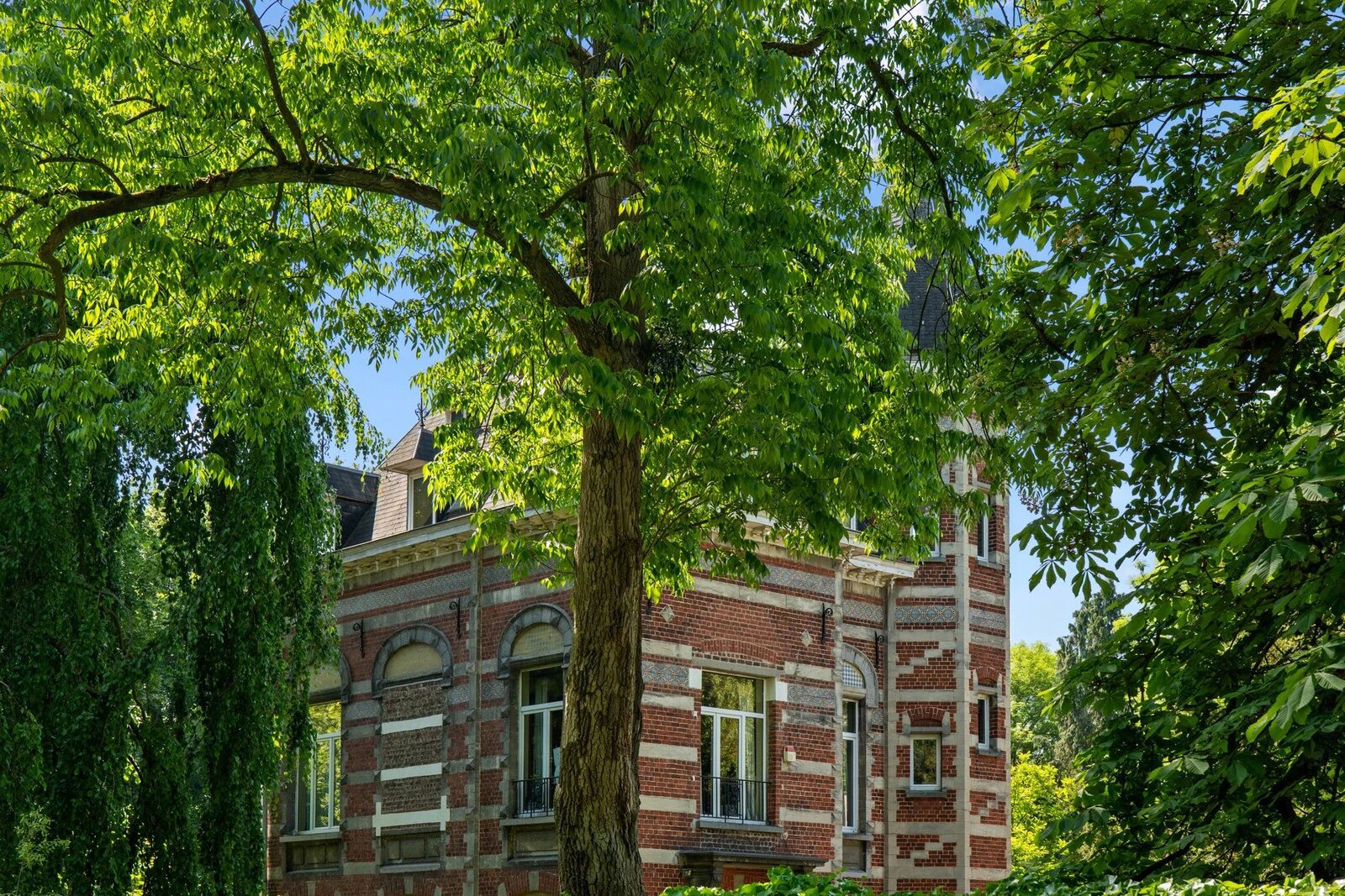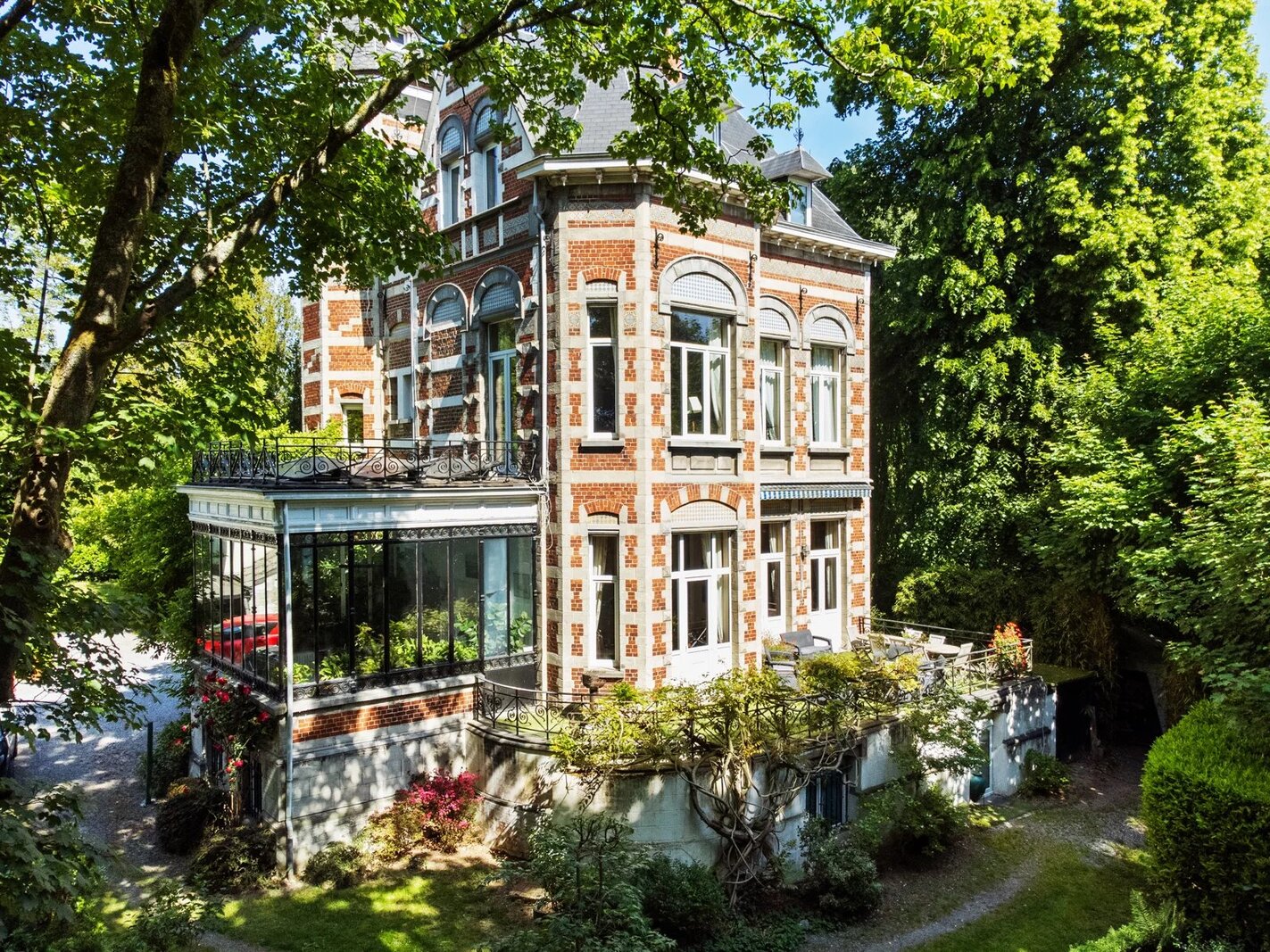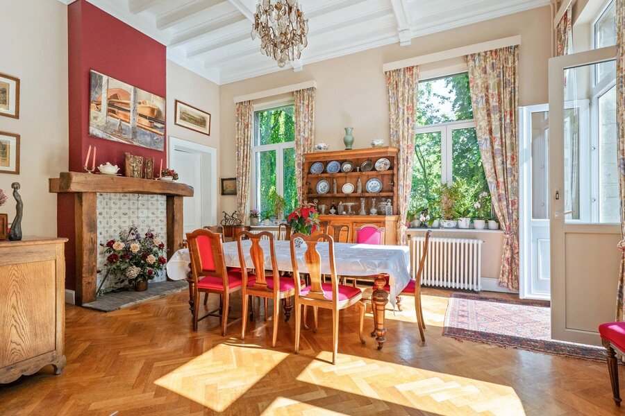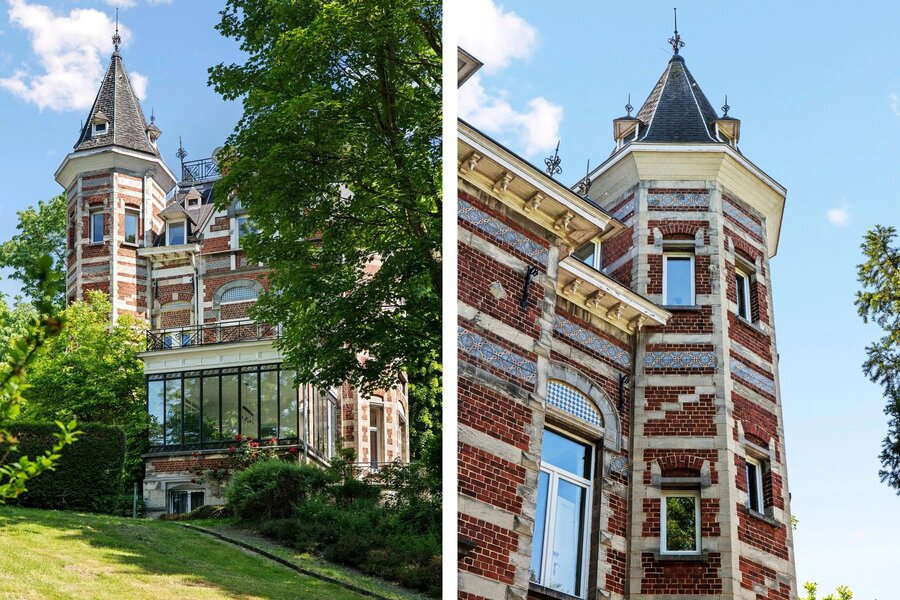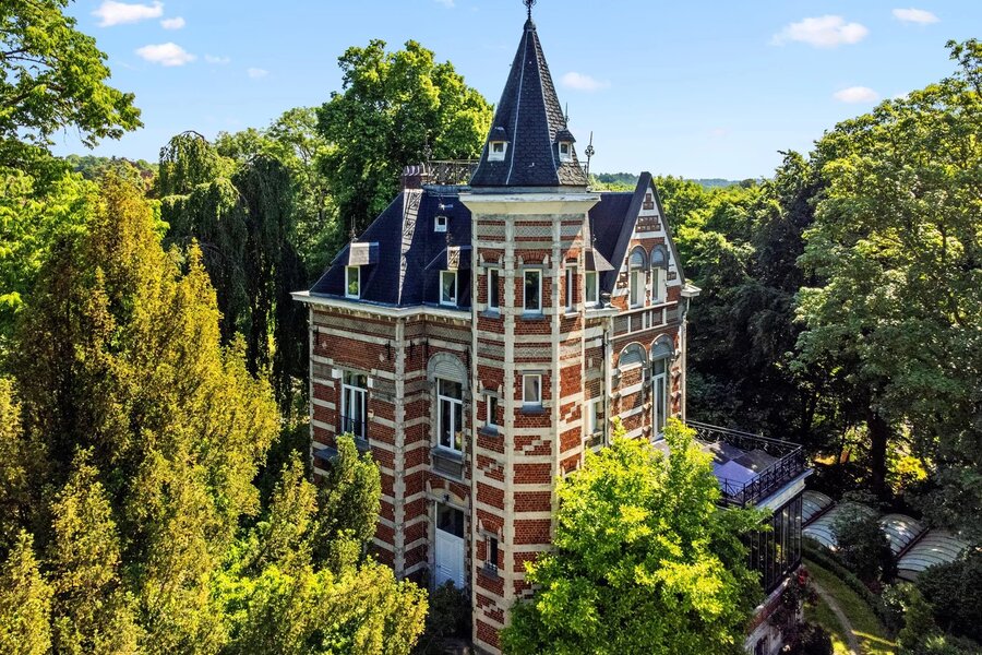 Ukkel: Victoire - Junot stelt u exclusief deze karaktervolle woning voor, gebouwd in de 19e eeuw op een perceel van ± 80 are. De woning is gerenoveerd en combineert oud en nieuw. De uitgestrekte tuin omvat beboste gedeelten, een groot overdekt en verwarmd zwembad, weelderige groenzones, kinderspeelplaats. Gelijkvloers: Ruime inkomhal, grote ontvangstruimtes, salon, eetkamer acces tot het terras, prachtig uitzicht op de tuin en eeuwenoude bomen, wintertuin, volledig uitgeruste keuken. Eerste verdieping: Master suite met open haard, badkamer met douchekamer, toilet , tv-salon met open haard en toegang tot het terras met zonnepanelen, buro. Tweede verdieping: Drie slaapkamers, speelkamer, badkamer (enkele treden hoger), douchekamer, acces tot de torenkamer en zolder. Overige ruimtes: Zolder, ruime kelders, stookruimte met condensatieketel op gas, voorraadkamer, waskamer, kelder en toegang tot de tuin. Automatische poort met parkeermogelijkheid voor 7 wagens. Naast de woning bevindt zich een atelier. Het park is volledig omheind en toegankelijk via een automatische poort. EPC: G