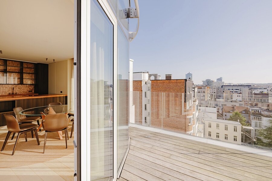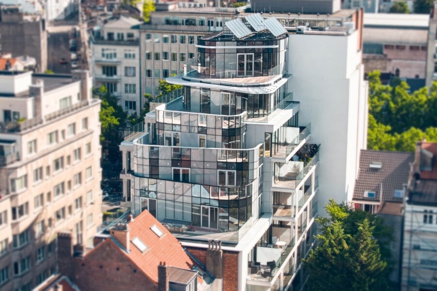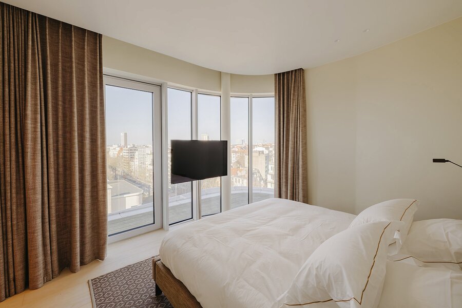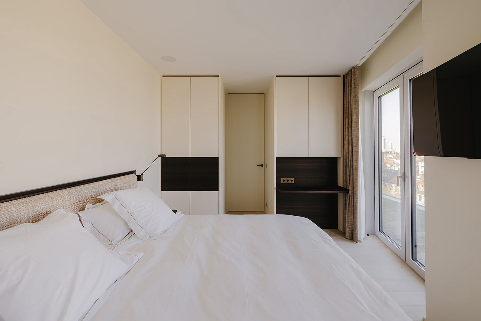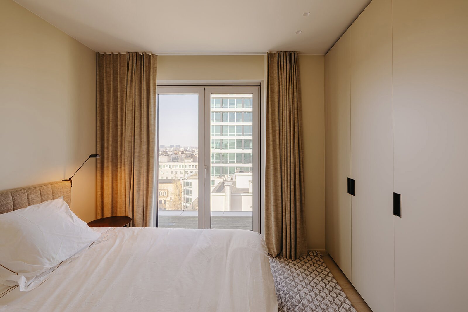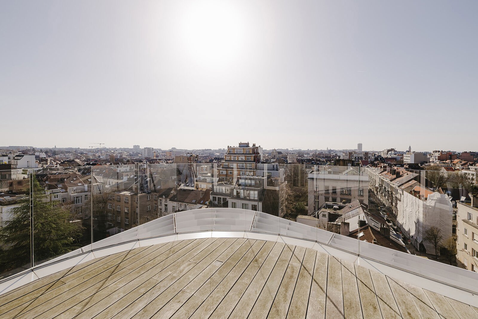 Gelegen op de 10e verdieping van het iconische gebouw “Edition”, ideaal gelegen aan de Louizalaan ter hoogte van de wijk Châtelain, bevindt zich dit gemeubelde penthouse met ruime volumes en een rondlopend terras.