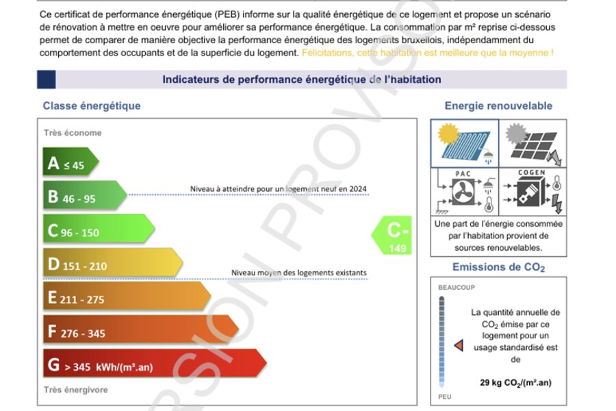 Het gebouw is energiezuinig en uitgerust met zonnepanelen, driedubbele beglazing, brandwerende deuren en een ventilatiesysteem met dubbele stroom. EPC: C.