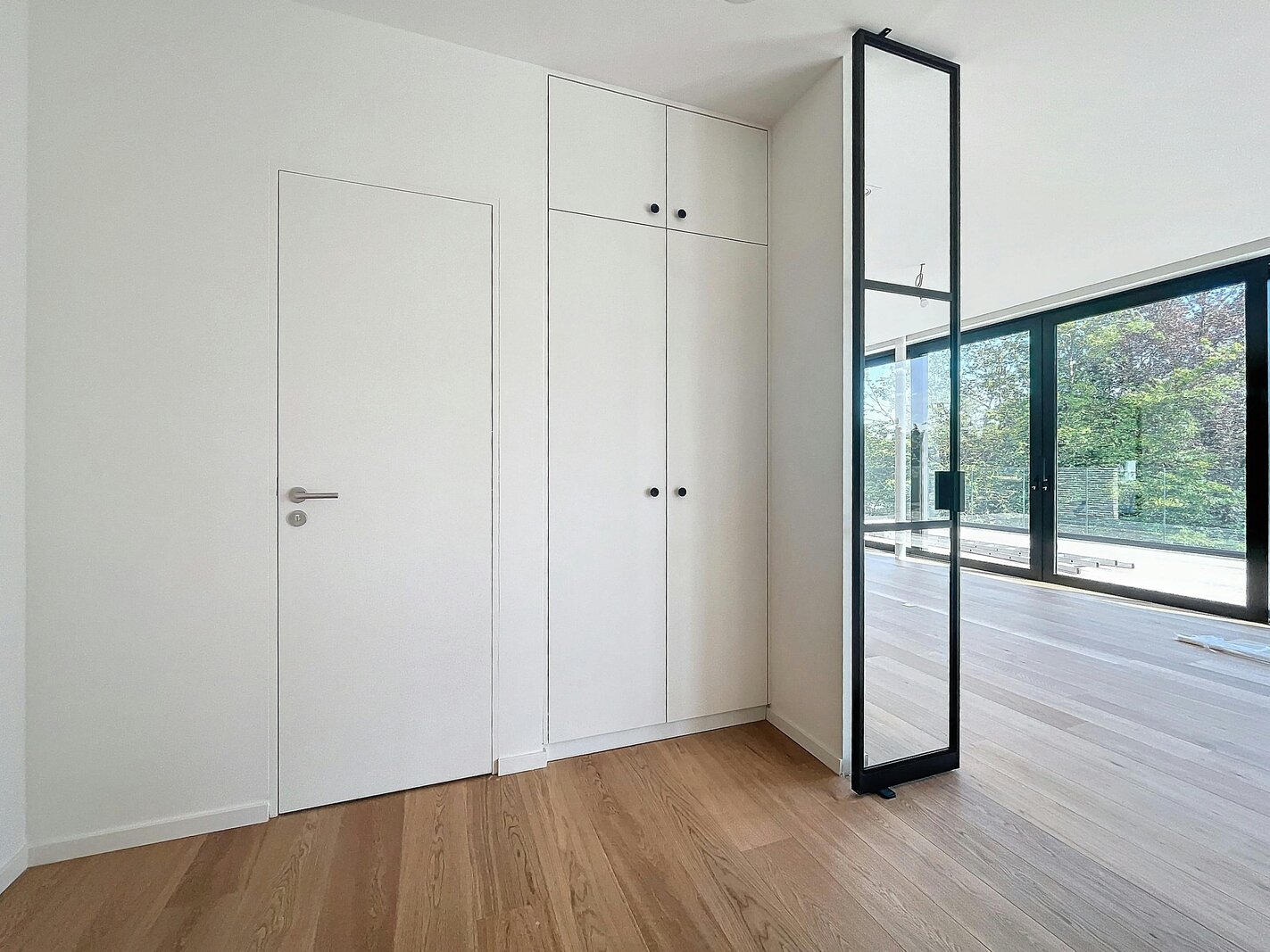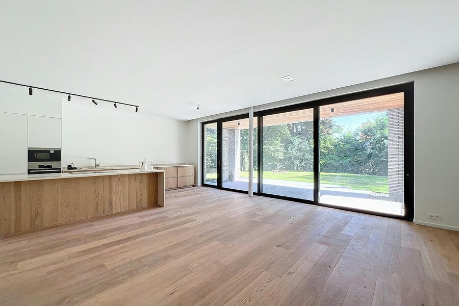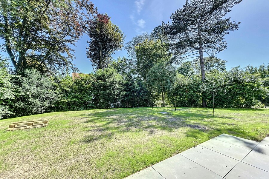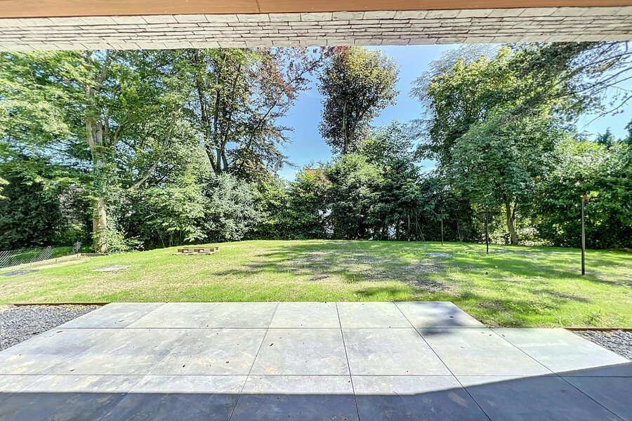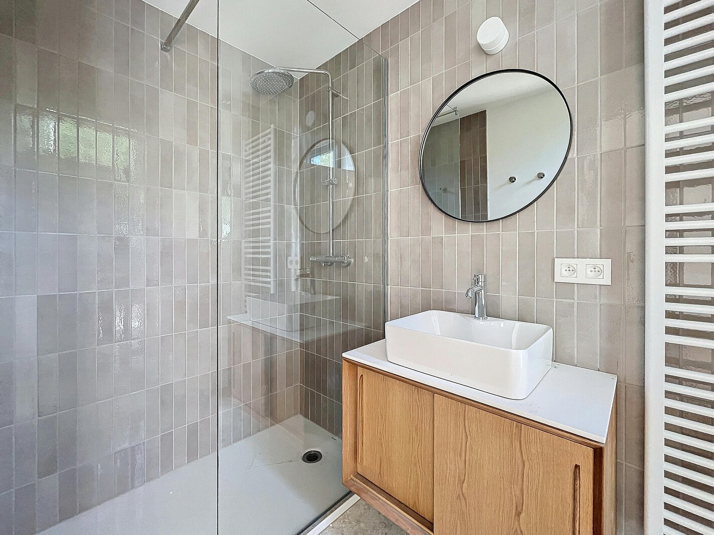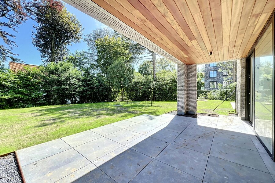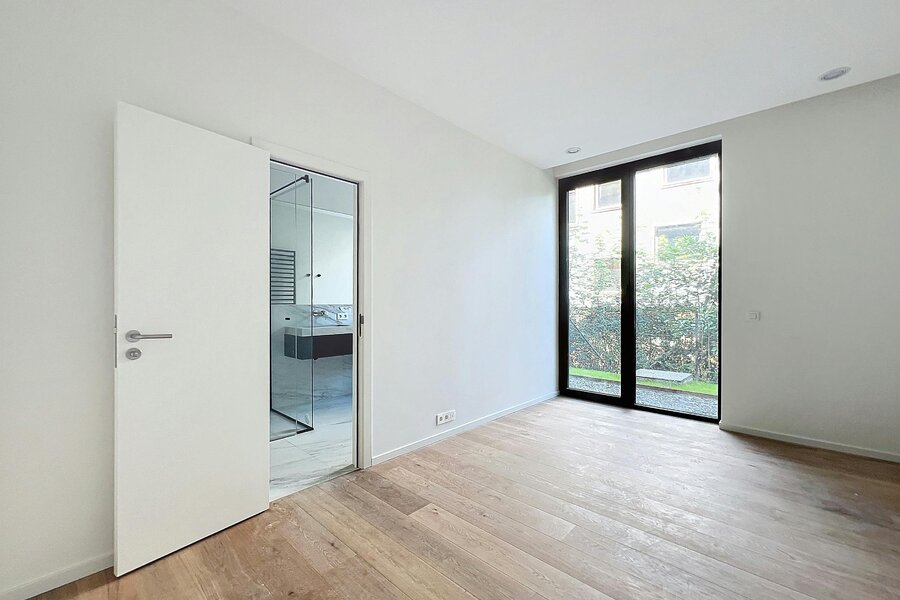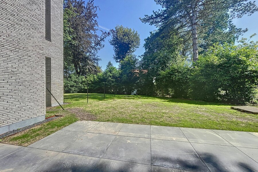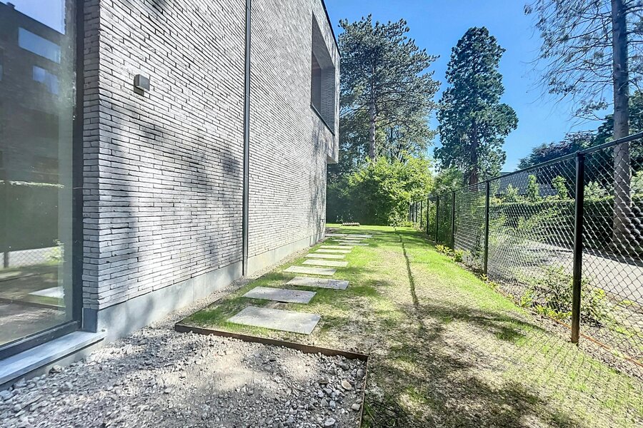 Het appartement, beschikbaar vanaf 1 februari 2026, beschikt over een inkomhal met ingebouwde kasten, een lichte woonkamer met een prachtig uitgeruste open keuken, een schitterend terras en een tuin. Twee comfortabele slaapkamers hebben elk een aangrenzende badkamer. Ook een wasruimte is aanwezig.