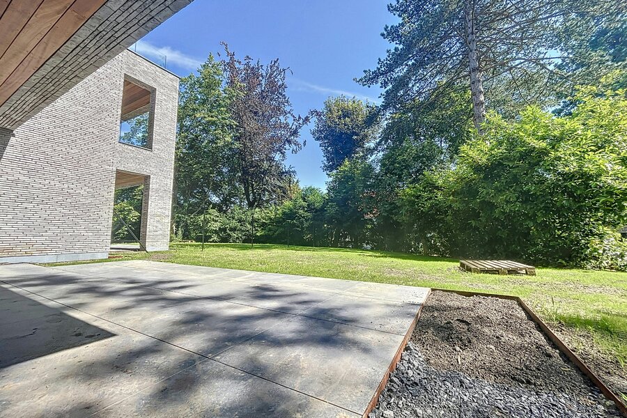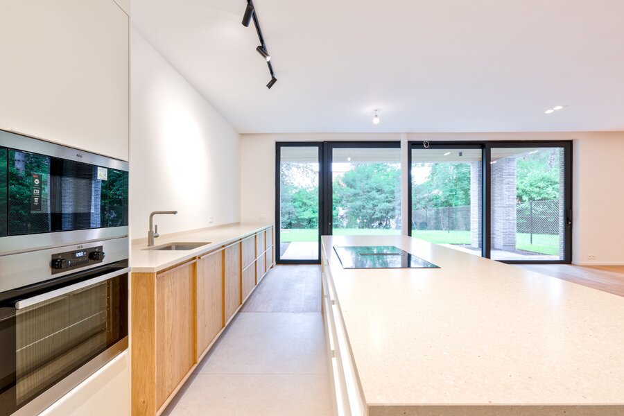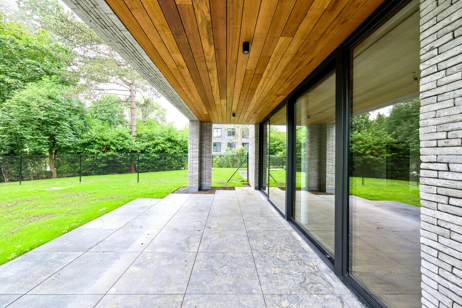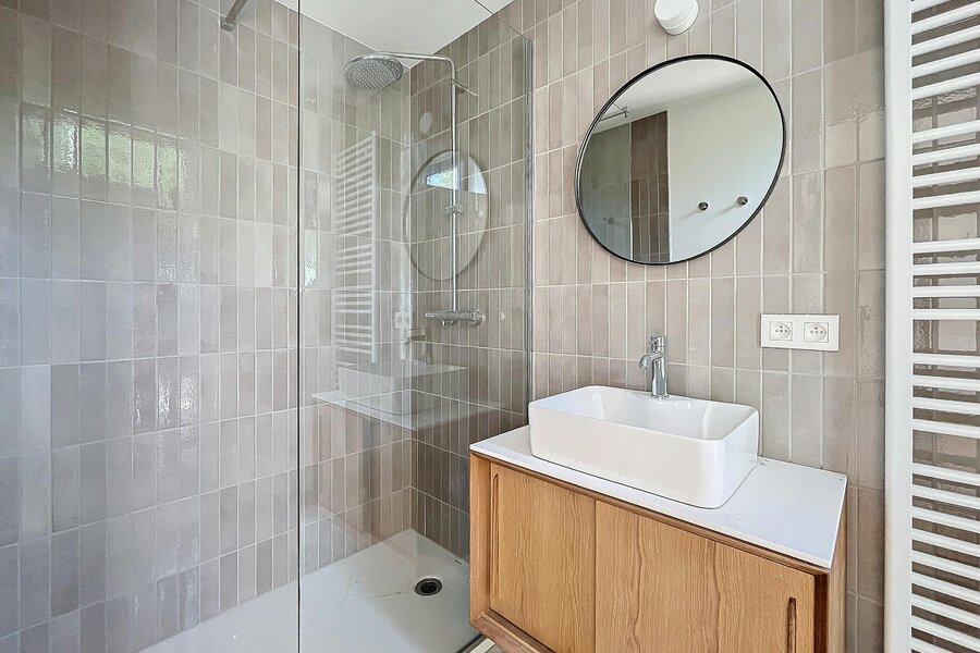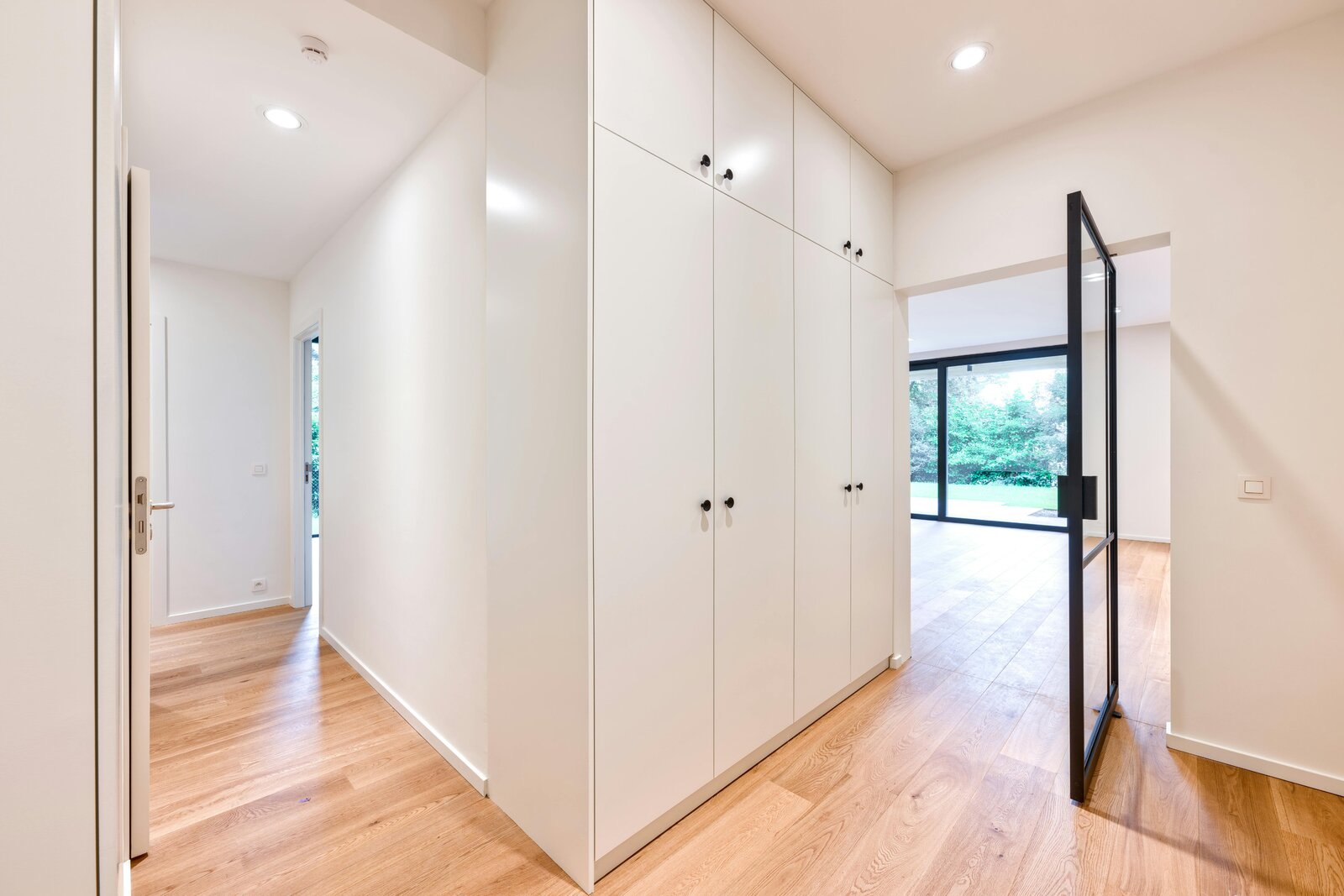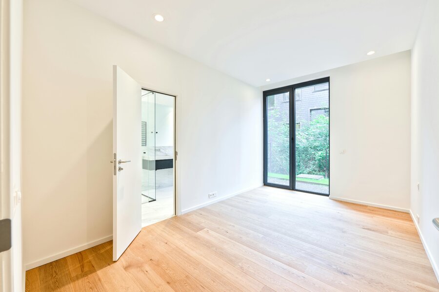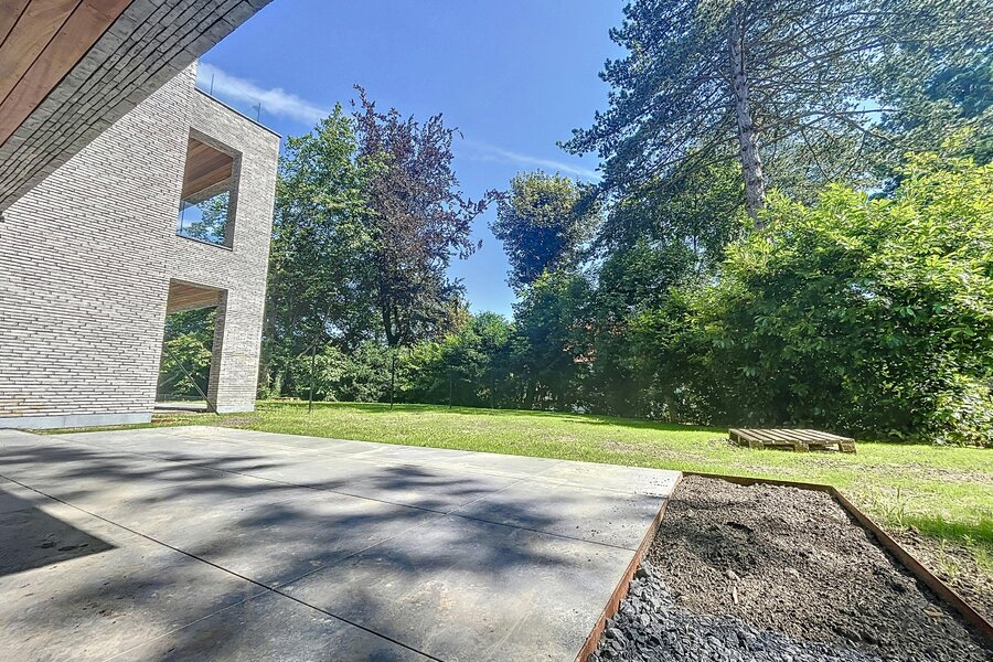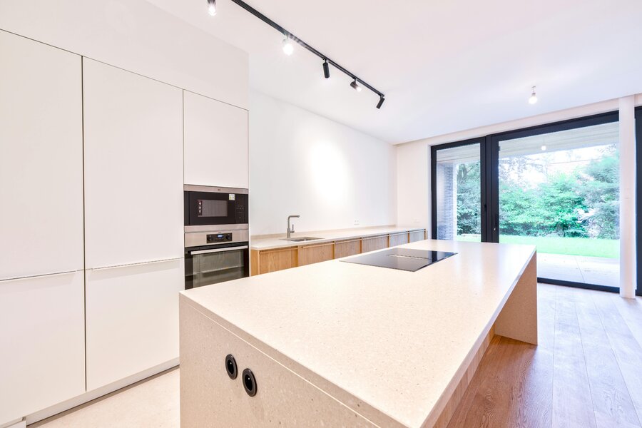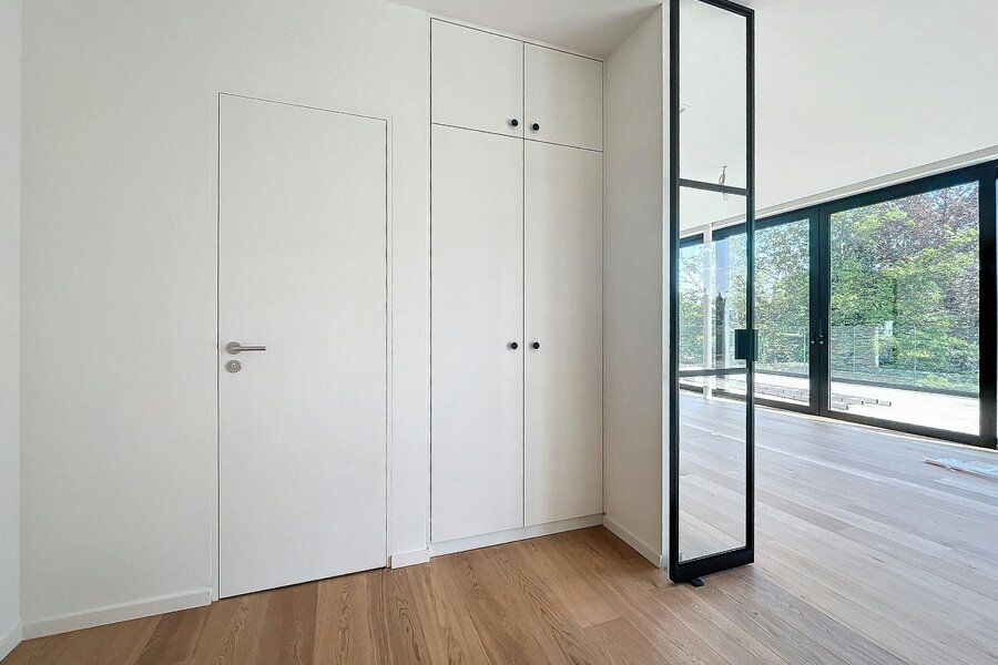 Het appartement, beschikbaar vanaf 1 februari 2026, beschikt over een inkomhal met ingebouwde kasten, een lichte woonkamer met een prachtig uitgeruste open keuken, een schitterend terras en een tuin. Twee comfortabele slaapkamers hebben elk een aangrenzende badkamer. Ook een wasruimte is aanwezig.