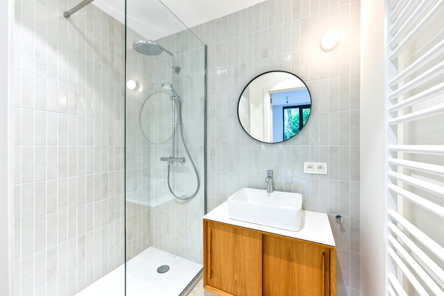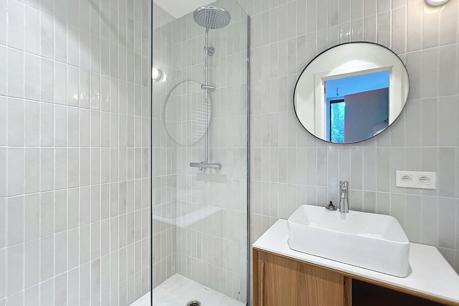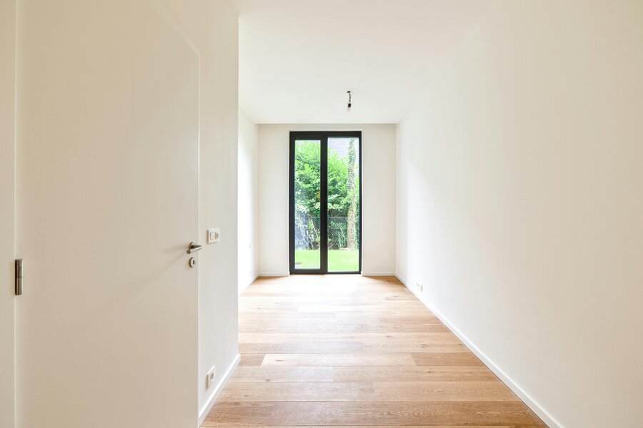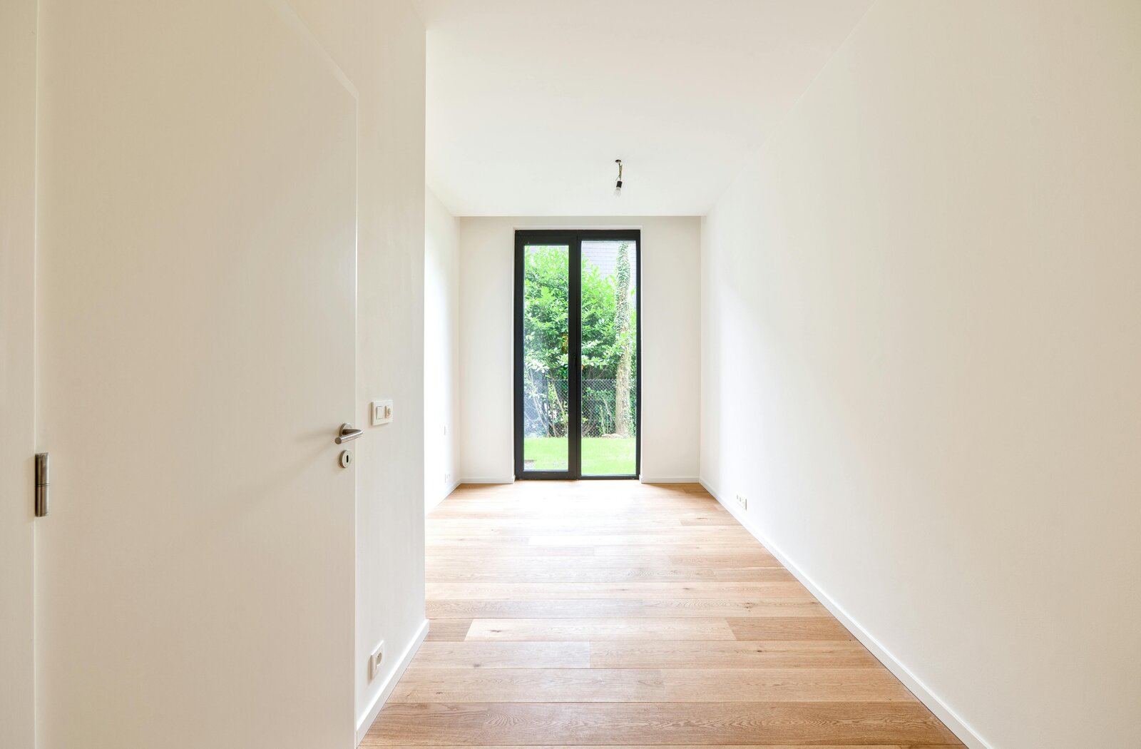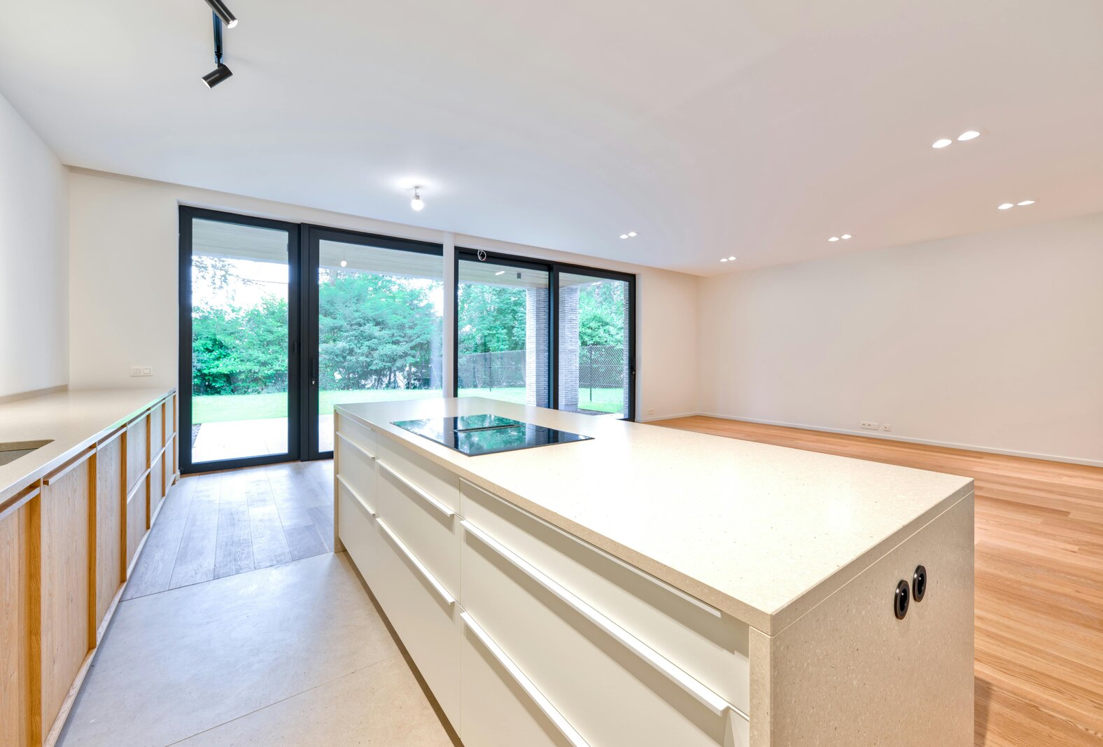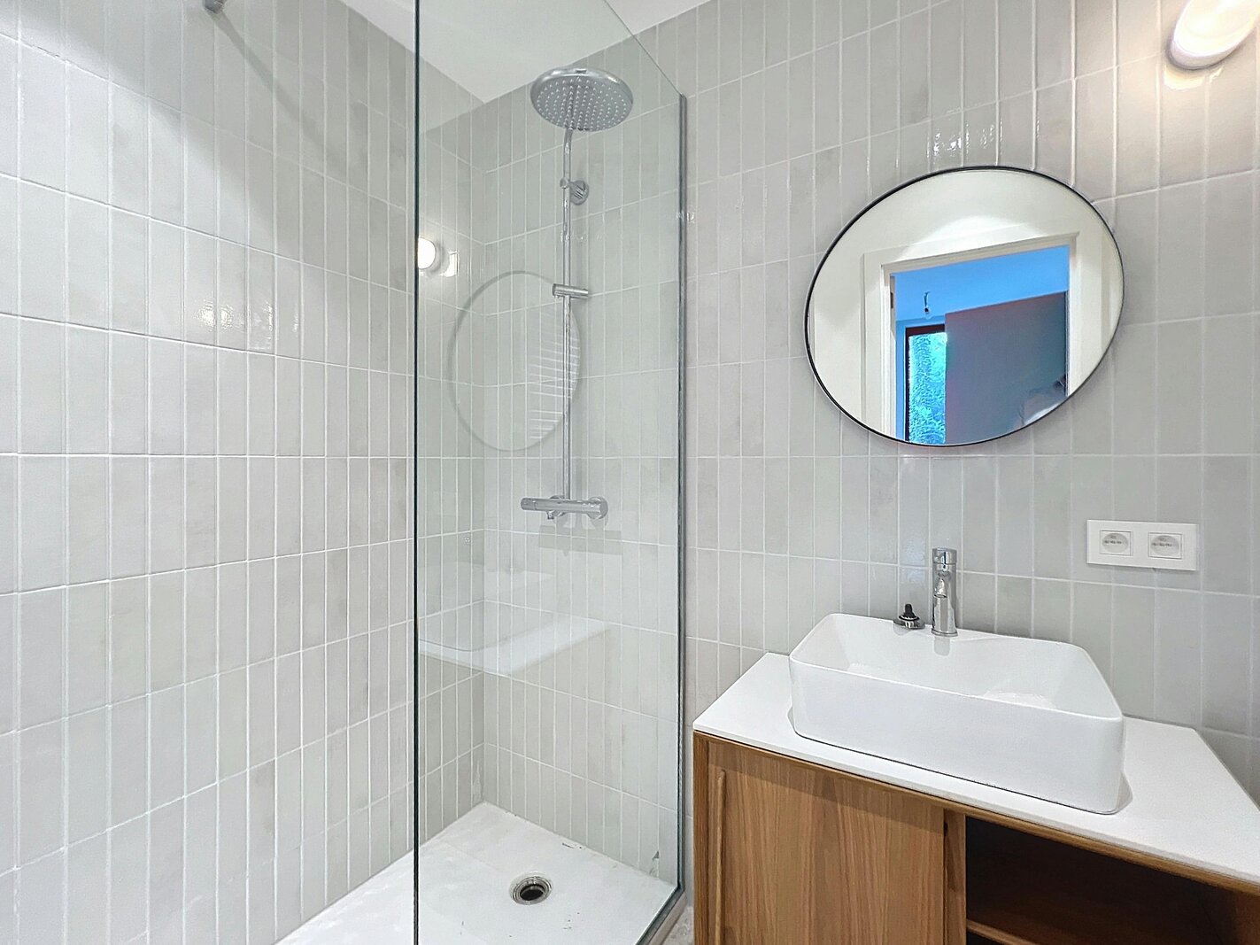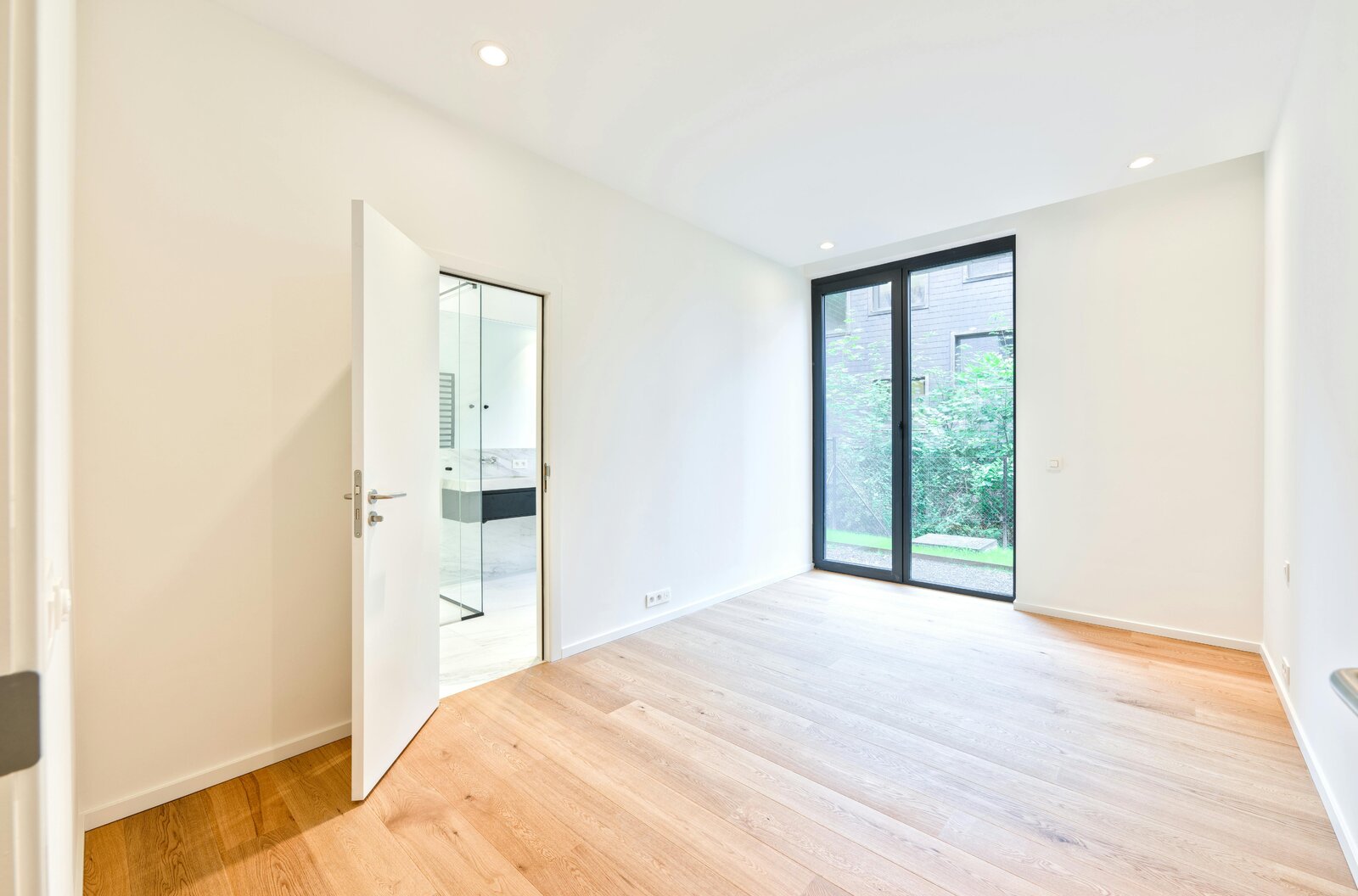 Het appartement, beschikbaar vanaf 1 februari 2026, beschikt over een inkomhal met ingebouwde kasten, een lichte woonkamer met een prachtig uitgeruste open keuken, een schitterend terras en een tuin. Twee comfortabele slaapkamers hebben elk een aangrenzende badkamer. Ook een wasruimte is aanwezig.