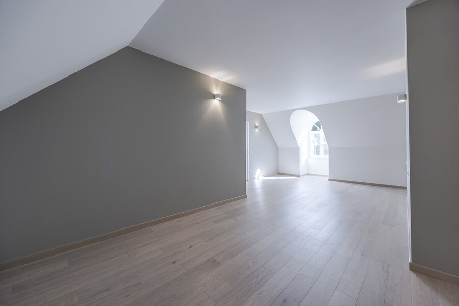 De ruime vide beschikt over 3 grote slaapkamers (41,16m², 27,55m² en 36,70m²), afgewerkt met parket. Op deze verdieping werd er een recente badkamer geïnstalleerd met dubbele wastafel, toilet, spiegelkast en inloopdouche. Eveneens een dressingruimte met inbouwkasten werd voorzien.