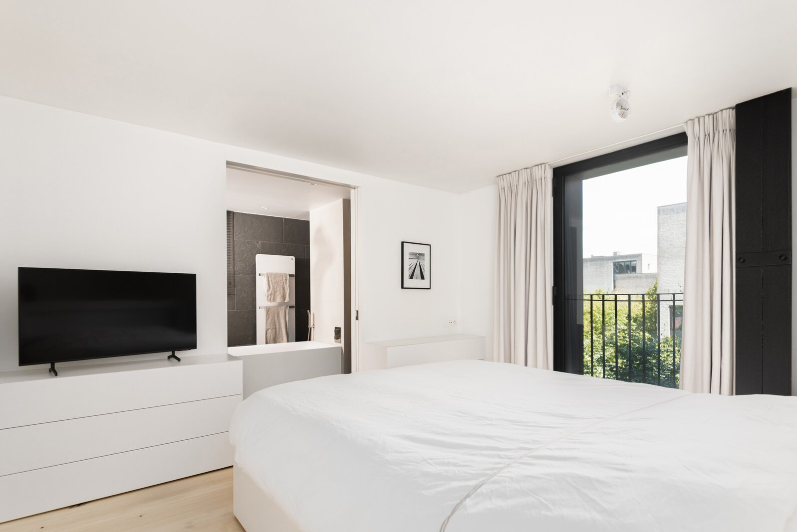 Vandaag is deze magnifieke loft ingericht als een éénslaapkamer appartement met één badkamer, alle voorzieningen zitten klaar om de mezzanine verdieping in te richten als een tweede master met ensuite badkamer.