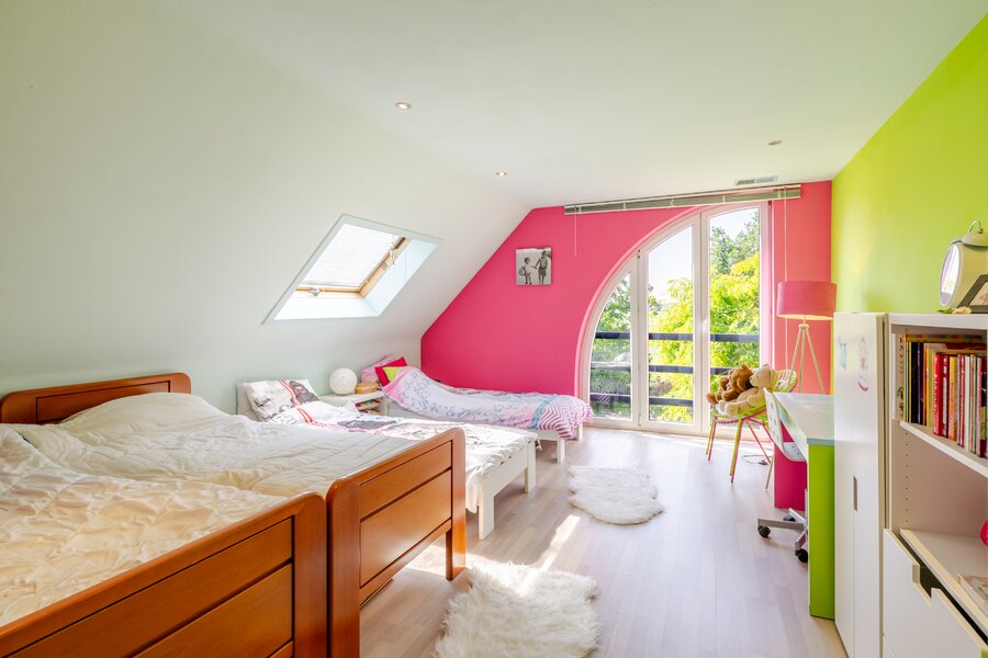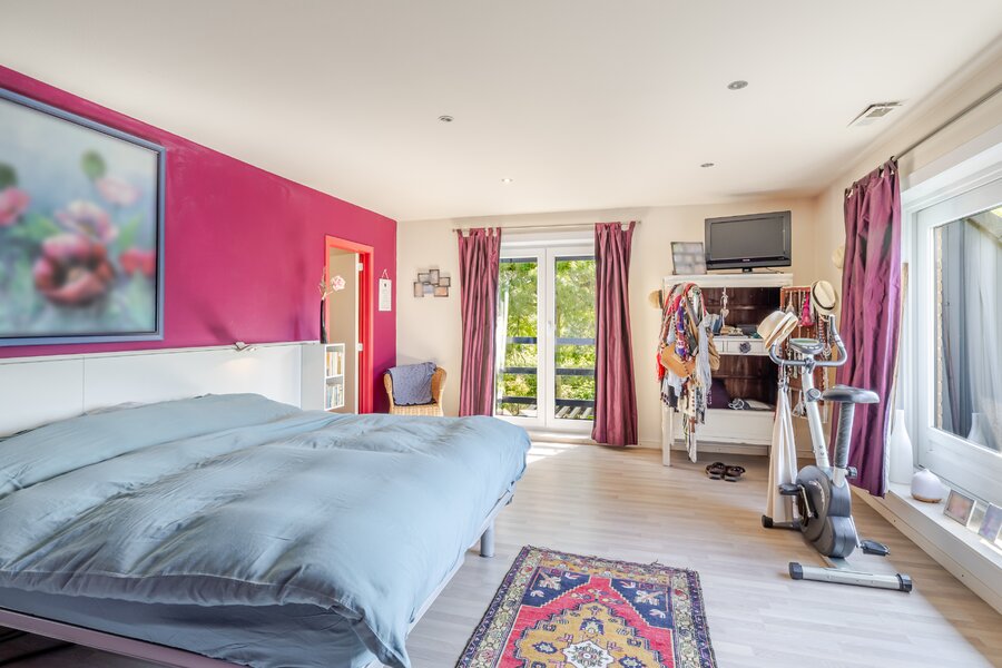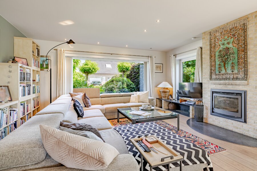 Bij het betreden van de woning wordt u meteen verwelkomd door een gevoel van licht en ruimte. De villa beschikt over vijf volwaardige slaapkamers, ideaal voor grote gezinnen of wie nood heeft aan extra bureauruimte, hobbykamer of logeerkamers. De leefruimtes zijn ruim en doordacht ingedeeld, met grote raampartijen die niet alleen overvloedig daglicht binnenlaten, maar ook het prachtige uitzicht op het omliggende landschap naar binnen brengen.