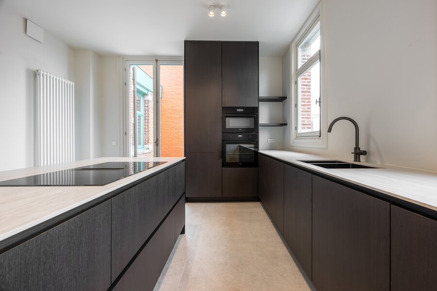 In dit unieke complex, meer bepaald in het art-nouveau pand dat deel uitmaakt van de Confiserie en dat volledig in ere werd hersteld, kan U dit appartement terugvinden. Hier werd met uiterste zorg en oog voor detail gewerkt om de authentieke elementen te behouden, zoals hoge plafonds, sierlijsten en grote raampartijen die voor een overvloed aan natuurlijk licht zorgen. De appartementen zijn afgewerkt met hoogwaardige materialen en voorzien van de nieuwste technieken, waaronder akoestisch geïsoleerde ramen, zodat u kunt genieten van optimaal wooncomfort in een stijlvolle setting. Het industriële karakter van de voormalige panden wordt bovendien versterkt door nieuwbouwelementen rond het binnenplein, wat zorgt voor een unieke combinatie van oud en nieuw. De voorgevel, een prachtig art-nouveau pand, werd volledig in ere hersteld en vormt een echte eyecatcher in het stadsbeeld. Dit project biedt niet alleen een luxueuze woonomgeving, maar ook een duurzame investering op een toplocatie. Bent u op zoek naar een karaktervolle, energiezuinige en exclusieve woonst in een van de meest gegeerde buurten van Antwerpen? Neem dan snel contact met ons op voor meer informatie of een bezichtiging.