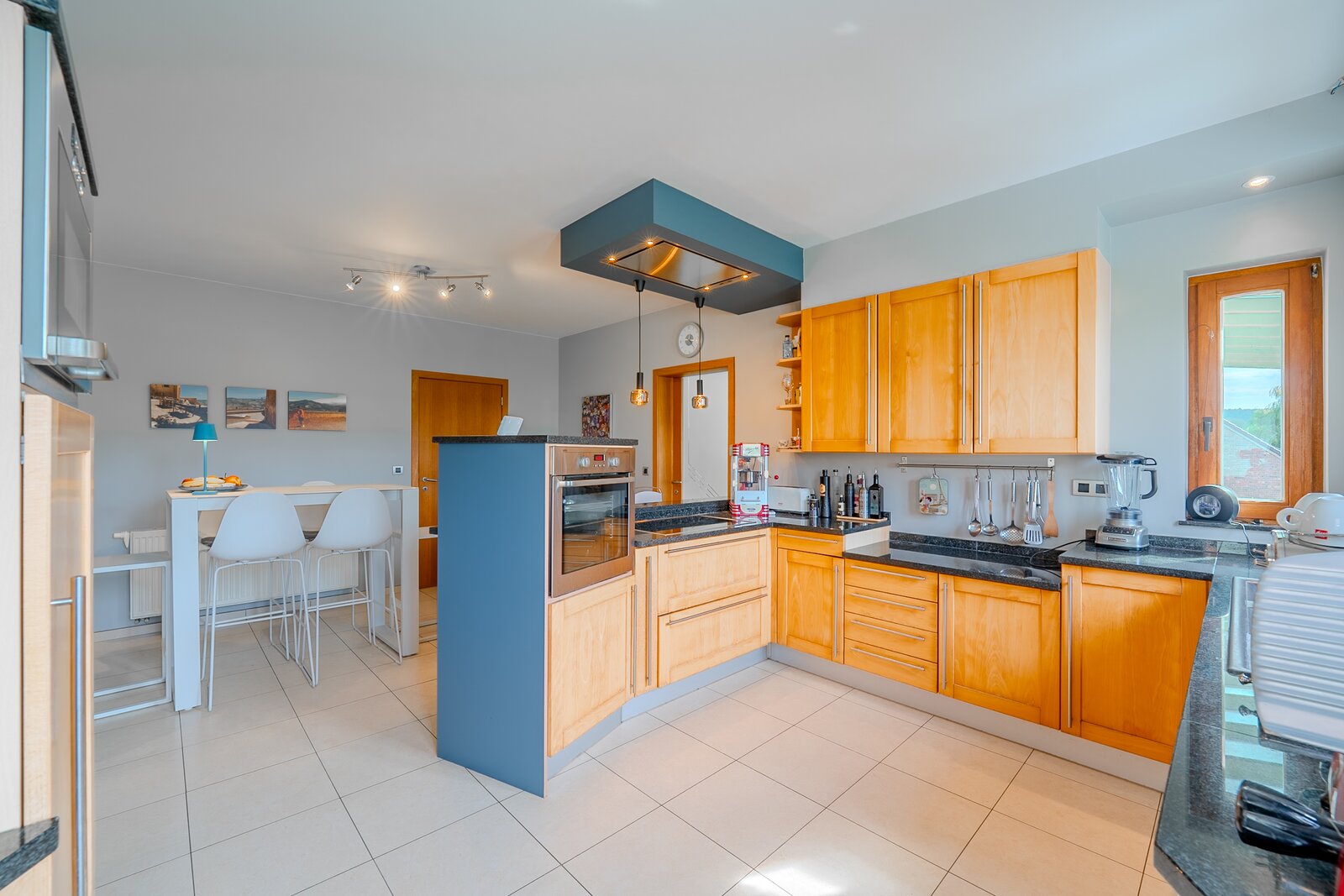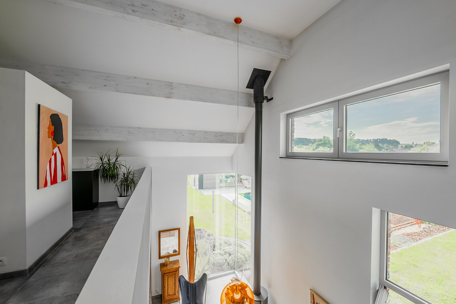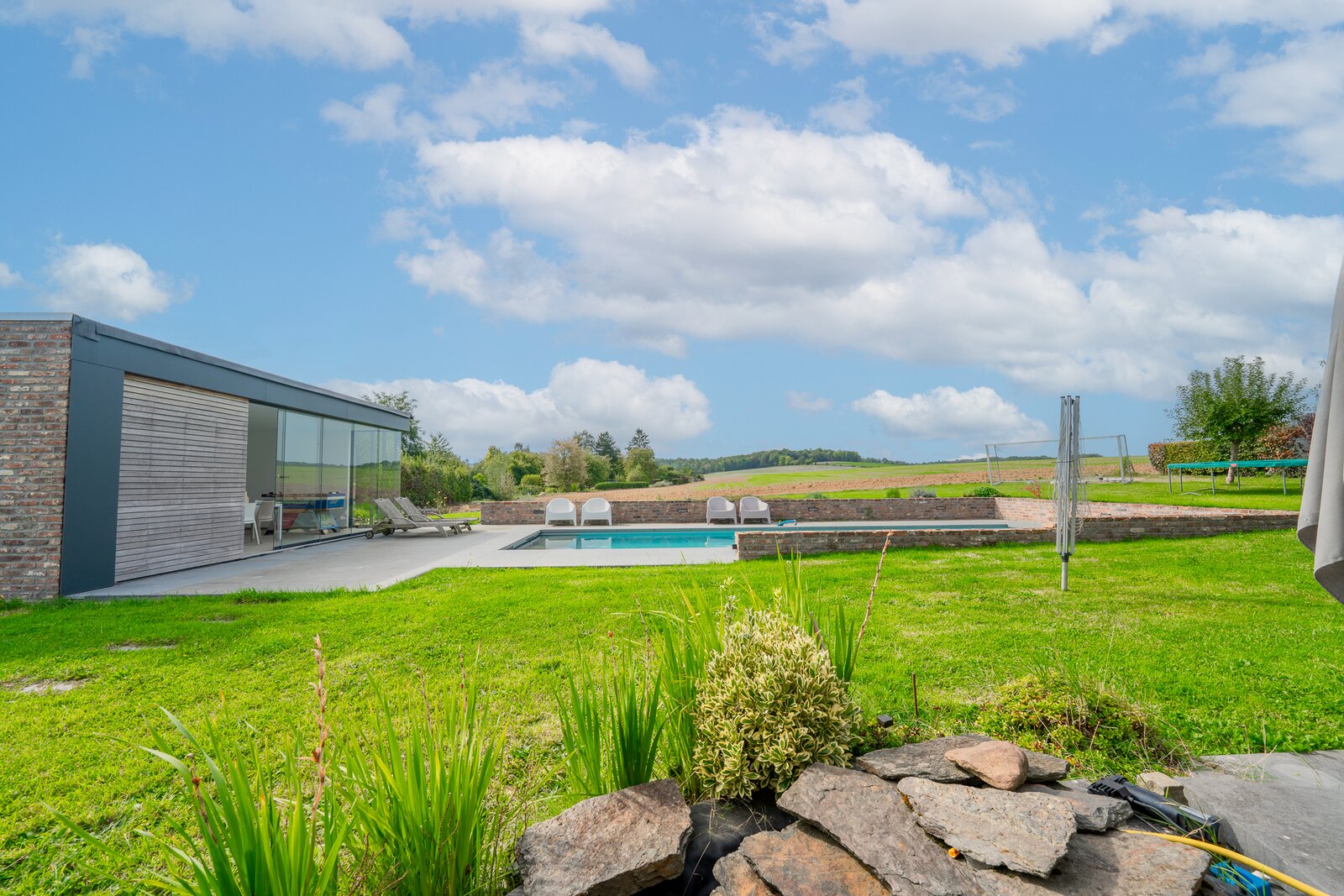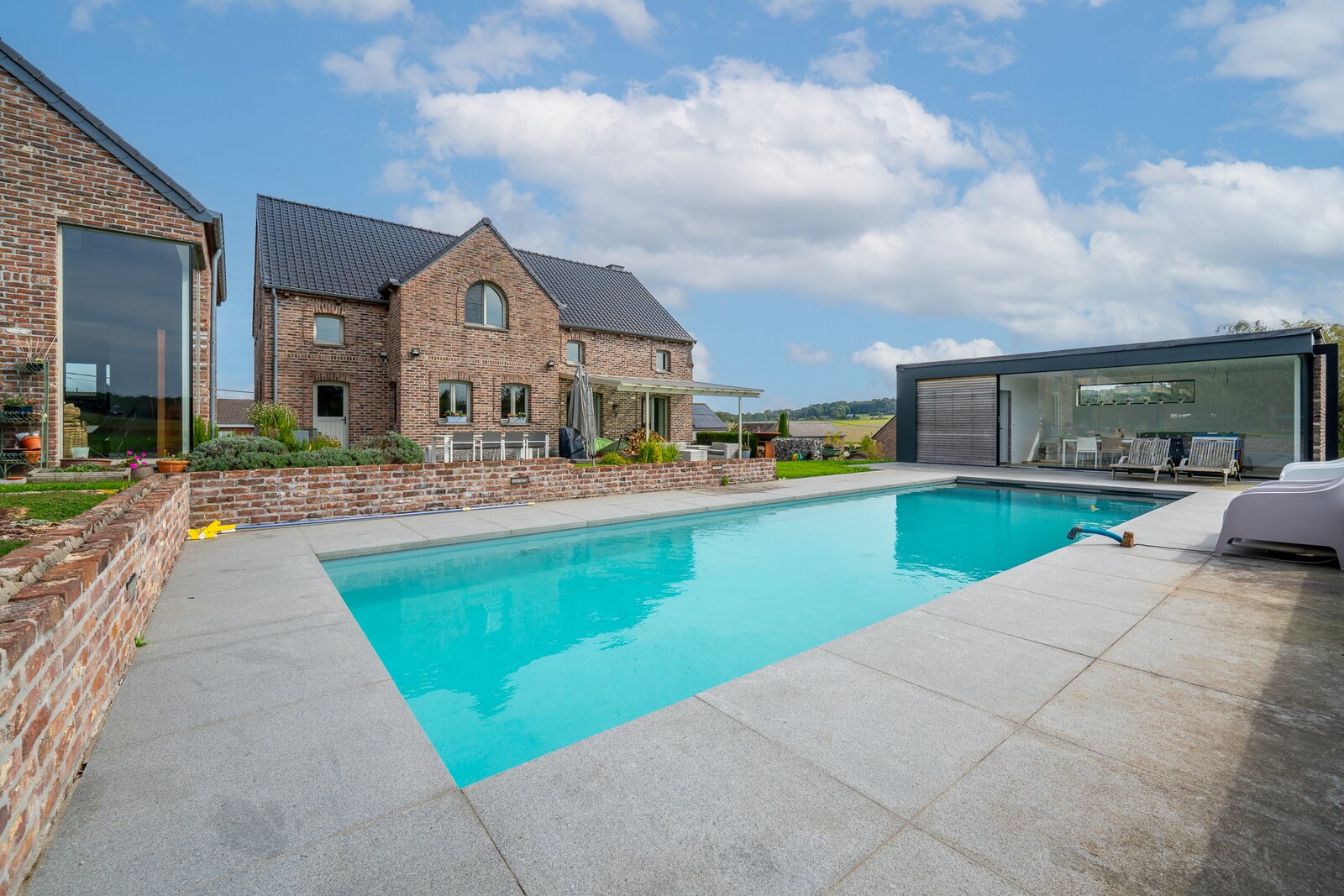 ERA Blavier biedt u deze ruime villa aan die comfort en ruimte combineert. Het hoofdgedeelte biedt een grote inkomhal, een ruime woonkamer, eetkamer, ingerichte keuken, wasruimte, toilet en kantoor (of slaapkamer). Op de verdieping: 4 slaapkamers, waarvan een ouderslaapkamer met dressing, badkamer en doucheruimte. Twee garages op -1 met directe toegang tot de weg. Aan de achterzijde: tuin met vrij uitzicht op de velden, zwembad, poolhouse (±40 m²) en terras. Prachtige vrijstaande bijgebouw (±100 m²) met woonkamer, keuken, mezzanine, slaapkamer, doucheruimte en twee garages: ideaal voor een vrij beroep, nevenactiviteit of gezin. Oliegestookte verwarming en houtkachel. Een zeldzaam pand met royale volumes en een hoge levenskwaliteit! Neem contact met ons op via 042322121 om een bezichtiging te regelen!