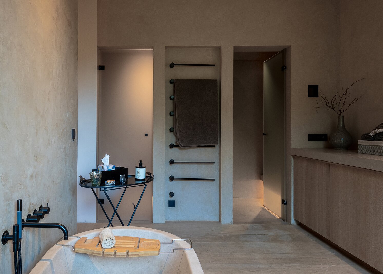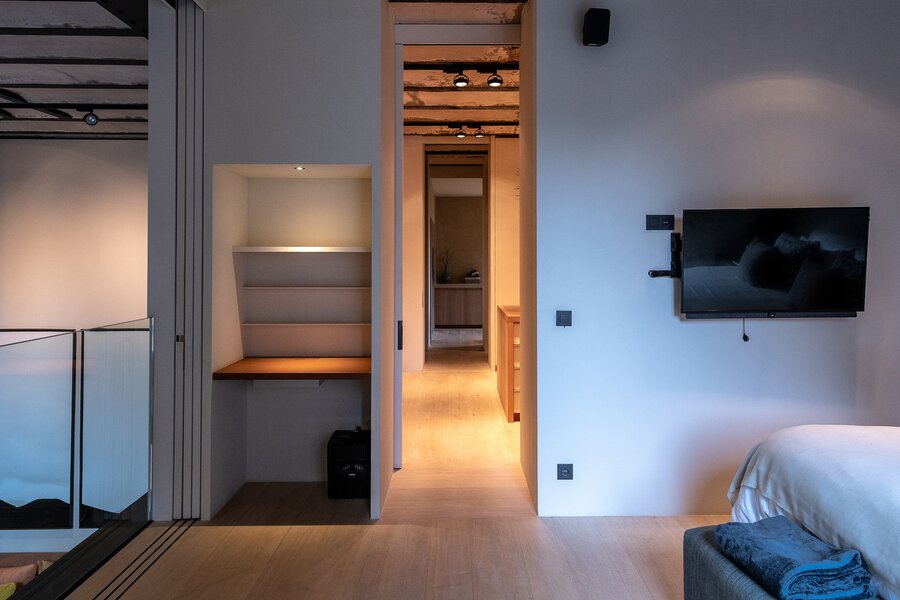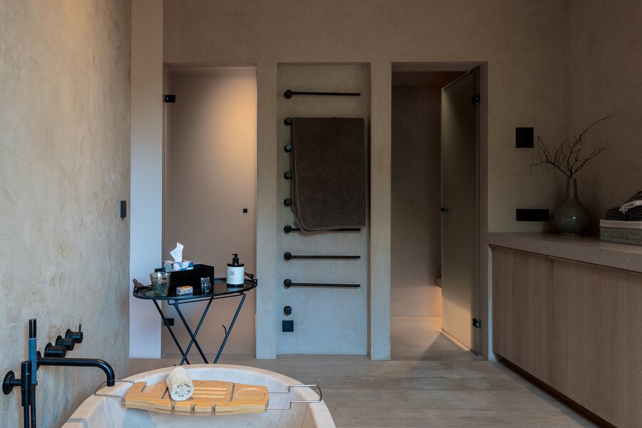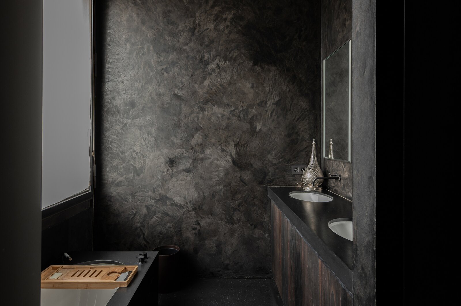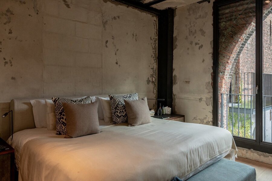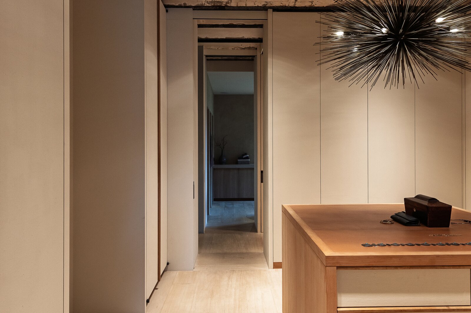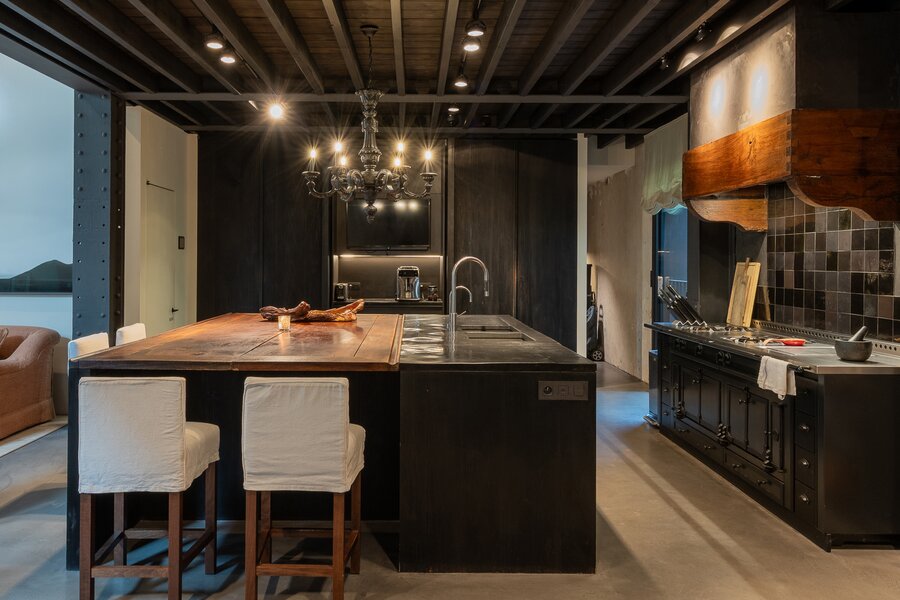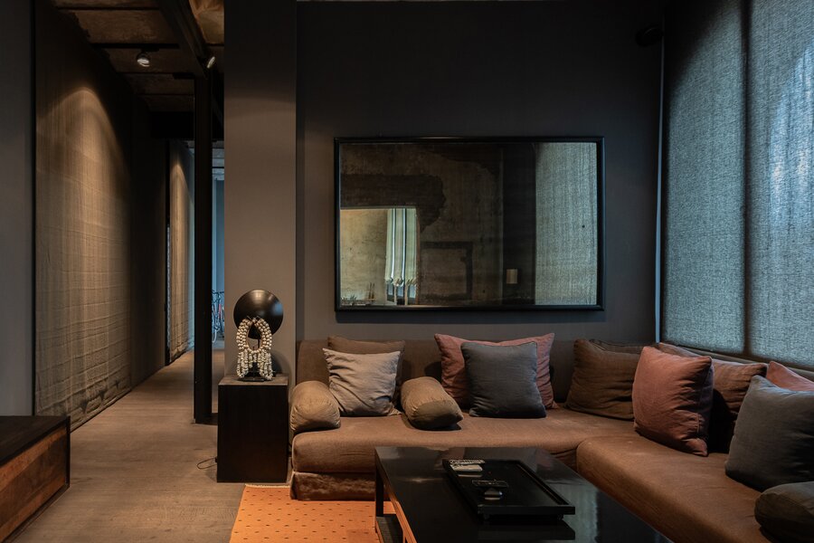 Boven de historische pakhuizen van de Stokerijstraat, bevindt zich een uitzonderlijk appartement van ca. 300 m², volledig ingericht door Axel Vervoordt zelf. Elk detail draagt zijn signatuur: ingetogen luxe, natuurlijke materialen en een haast meditatieve lichtinval.