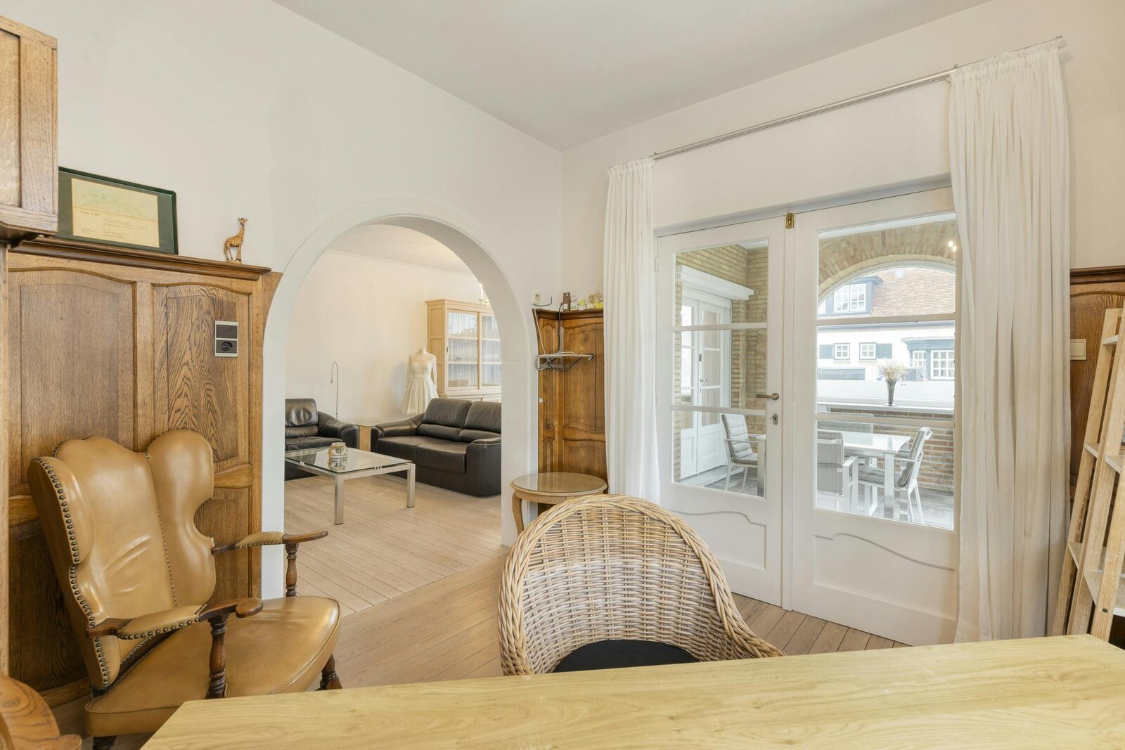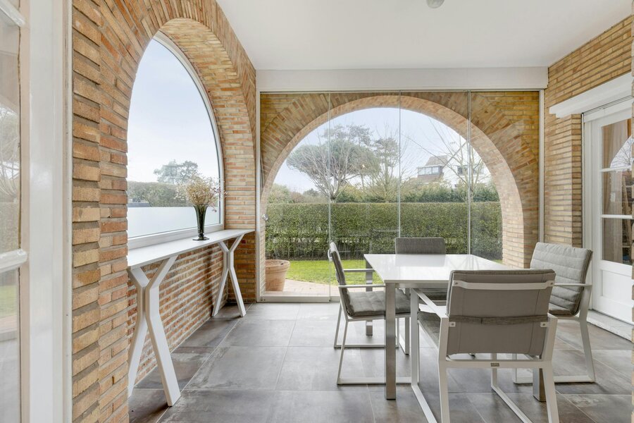 - bij de leefruimte is een overdekt terras aanwezig dat is afgesloten met glazen wanden die zowel open als dicht kunnen. Ideaal voor elk moment van het jaar;