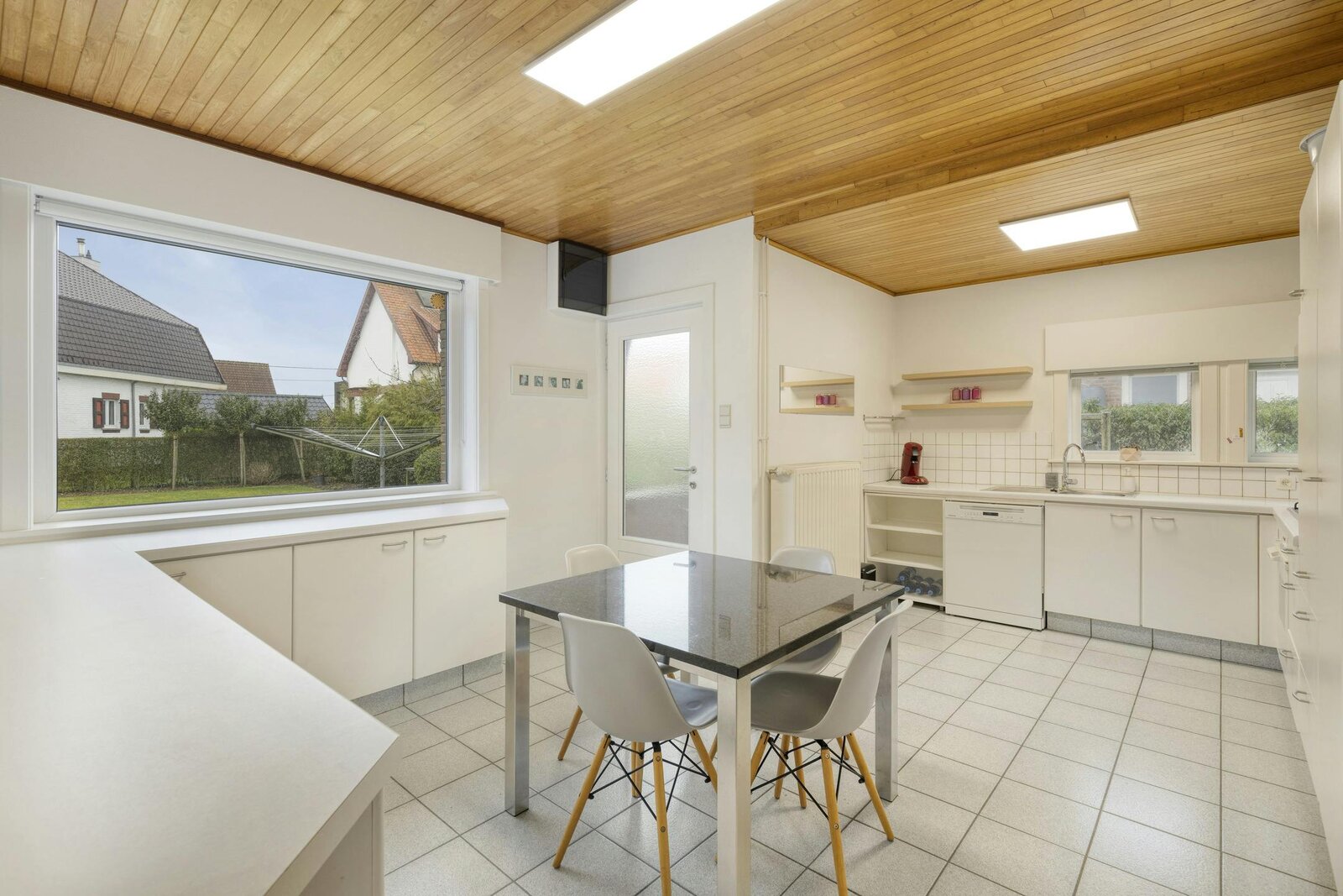 - keuken voorzien van spoelbak, gasfornuis, dampkap, oven, koelkast en vaatwasmachine;