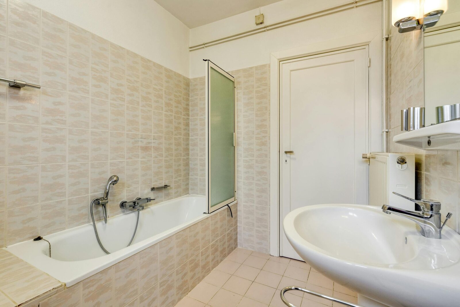 - badkamer met lavabo en douchebad;