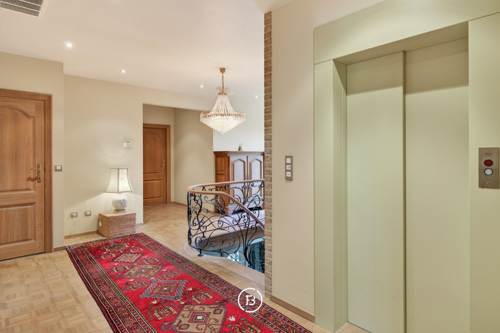 Daarnaast is er op het gelijkvloers een volwaardige bureau- of slaapkamer met eigen badkamer — ideaal voor wie gelijkvloers wil wonen of gasten in alle comfort wil ontvangen. De stijlvolle inkomhal met vestiaire en apart gastentoilet vervolledigt dit niveau.