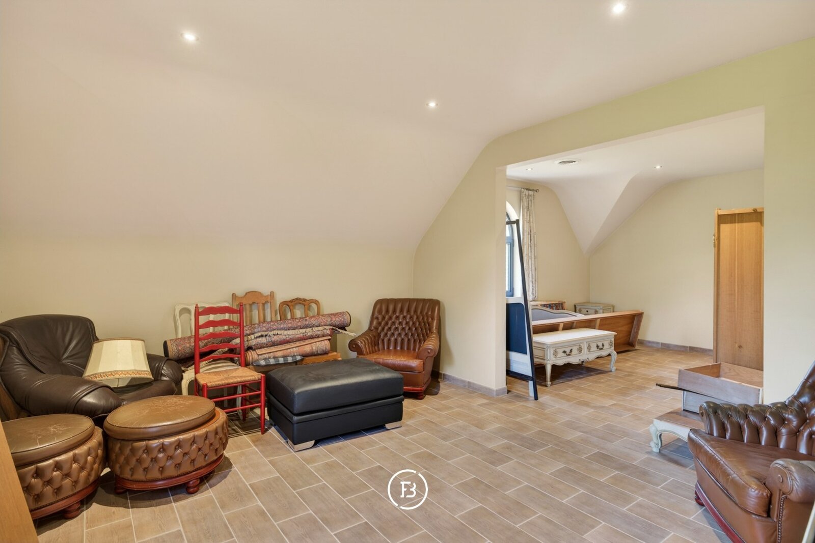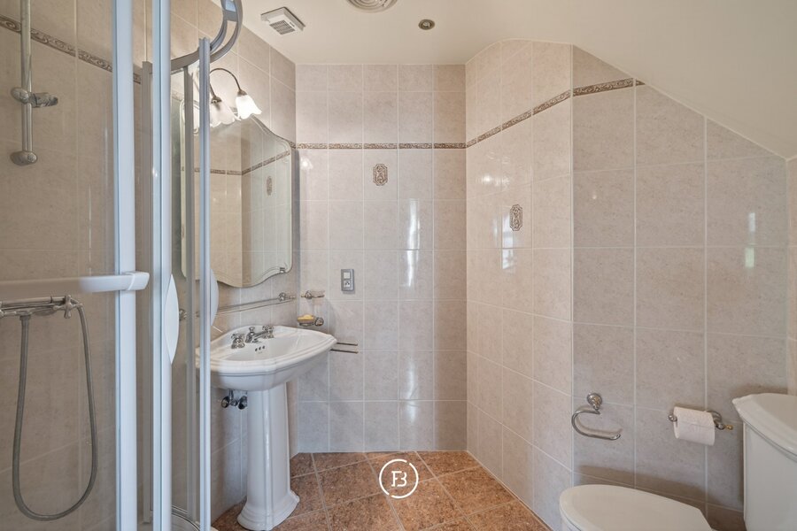Op de eerste verdieping bevinden zich vier ruime slaapkamers, een dressing en twee badkamers, met de mogelijkheid tot het creëren van een derde badkamer. Twee slaapkamers bieden bovendien het potentieel om ingericht te worden als aparte woonentiteiten met eigen badkamer en voorzieningen voor een keuken. Dankzij hun aparte toegang via de garage zijn ze perfect geschikt voor inwonende familie, een praktijk aan huis of een kangoeroe-oplossing. Ook hier is er een apart toilet op de nachthal. De zolder biedt bijkomende opslagruimte, terwijl de volledig onderkelderde woning tal van (hobby)ruimtes herbergt. Een personenlift zorgt bovendien voor extra comfort en toegankelijkheid.