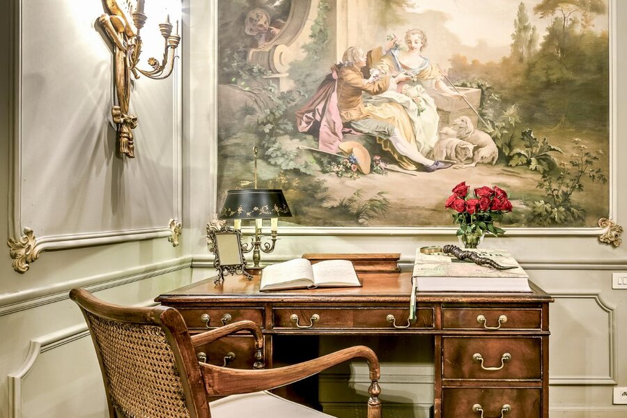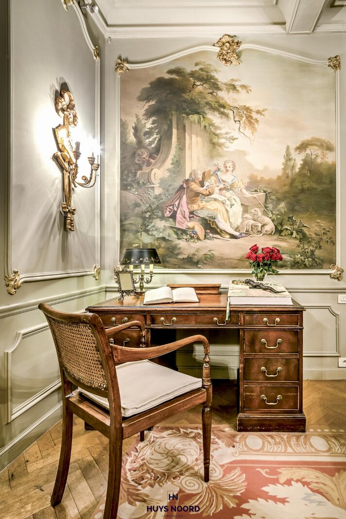 Men voelt zich onmiddellijk thuis en geniet de ziel van de authentieke muurpanelen, antiek, decoratieve elementen, gravuren, spiegels en consoles.