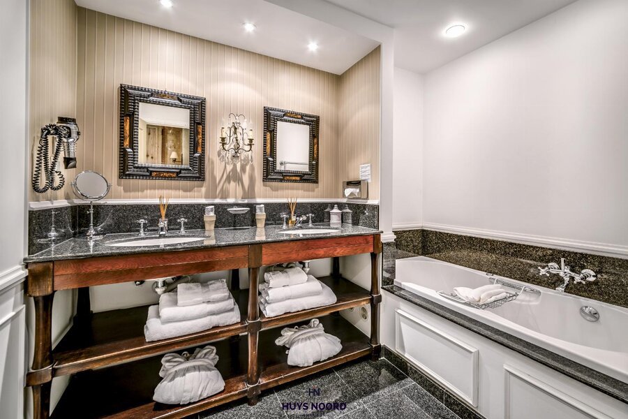 Op de derde verdieping de vijfde ruime suite kamer met ensuite badkamer, douche en dubbele wastafel.