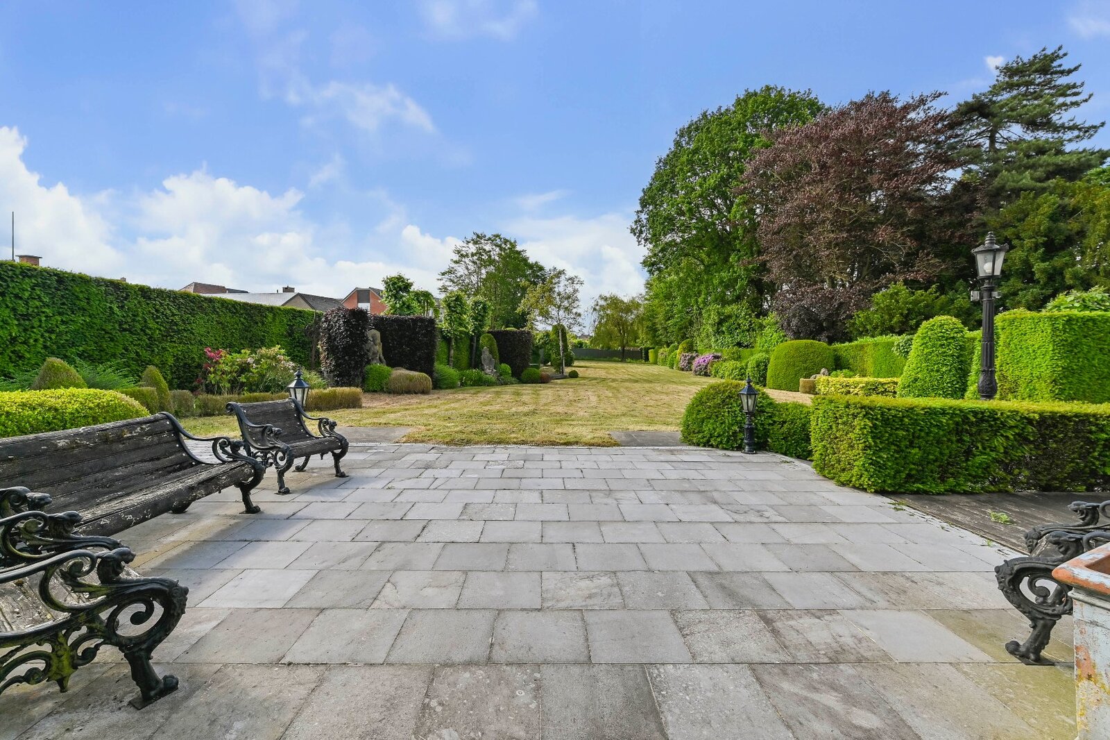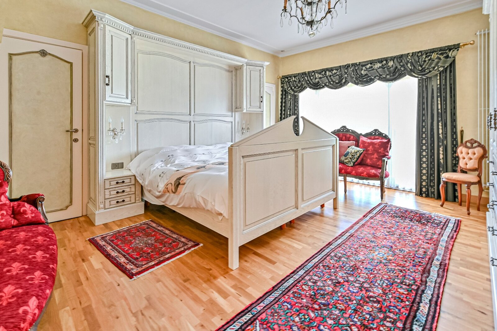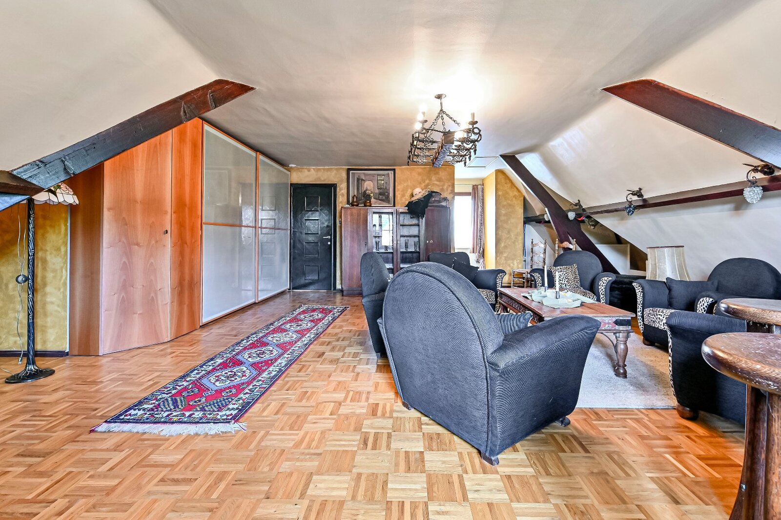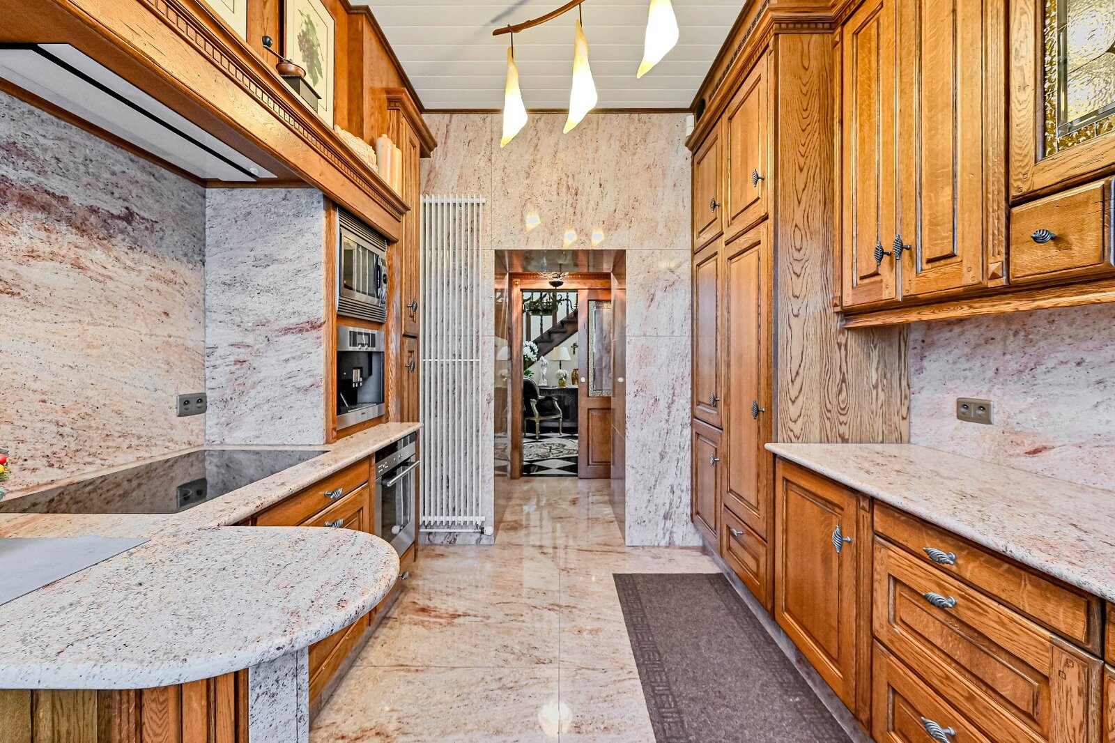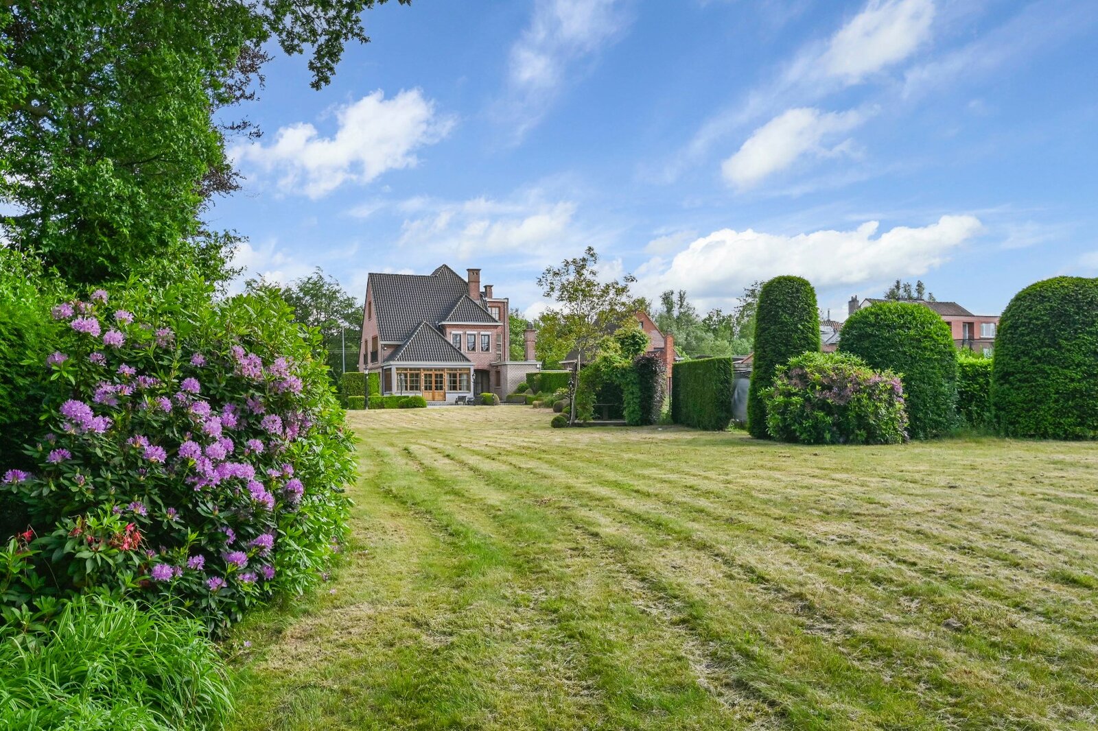 De woonkamer met parket en haardmantel, de lichtrijke uitbouw en de volledig private tuin creëren een oase van rust, vlak bij het stadscentrum. Extra troeven zijn de dubbele garage, multifunctionele bijgebouwen en een wijnkelder.