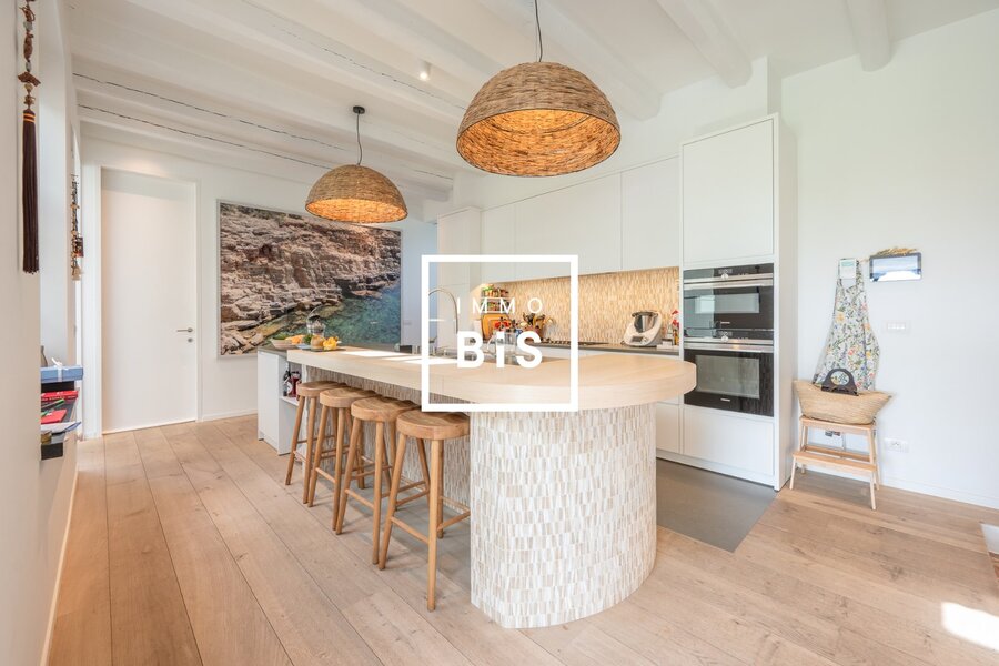 Deze volledig gerenoveerde hoevewoning onder leiding van architect Dries Bonami is een unieke parel op fietsafstand van het Zoute en de zee.