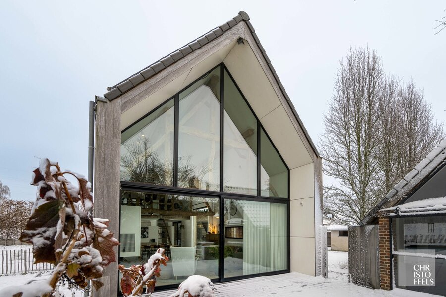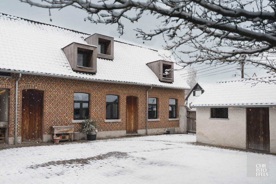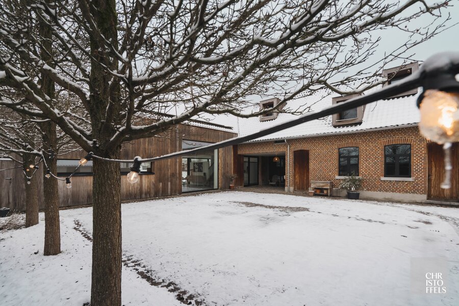 Deze uitzonderlijke vierkantshoeve, daterend van het einde van de 19e eeuw, werd in 2011 volledig en met groot respect voor haar historisch karakter gerenoveerd en heringericht tot een stijlvolle luxe woning van 333 m². Originele elementen, zoals de indrukwekkende houten dakgebinten, bleven behouden en vormen vandaag een harmonieus geheel met hedendaagse technieken en hoogstaand wooncomfort.