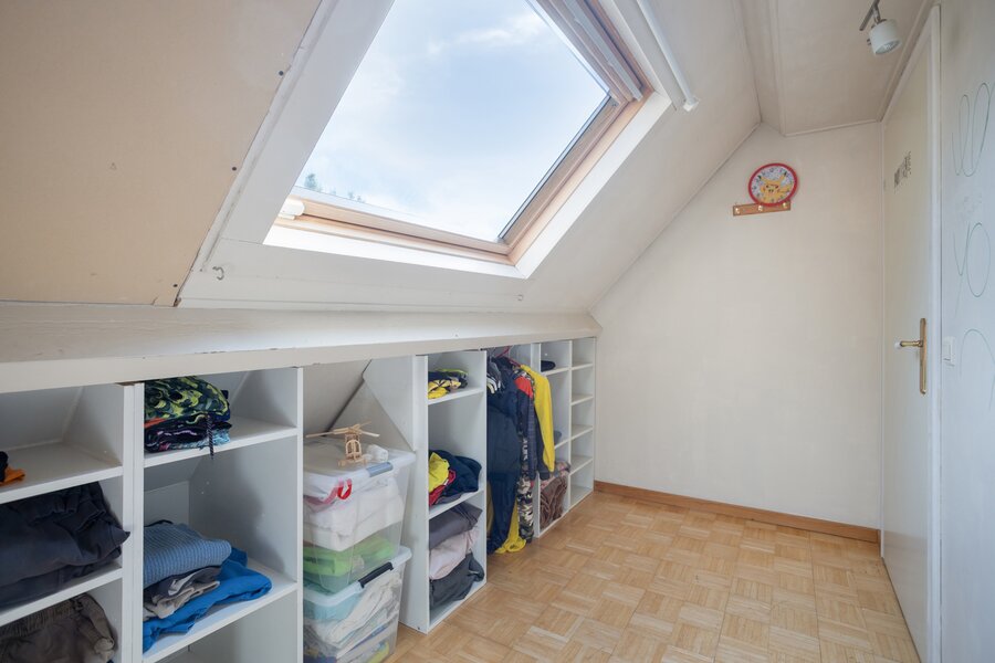 De zolderverdieping valt te bereiken vanuit één van de slaapkamers, maar heeft een ook een rechtstreekse toegang vanuit de keuken. Deze verdieping is gedeeltelijk ingericht als hobby-ruimte kan perfect dienst doen als extra slaapkamer. Het andere gedeelte van de zolder wordt momenteel gebruikt als extra bergruimte.