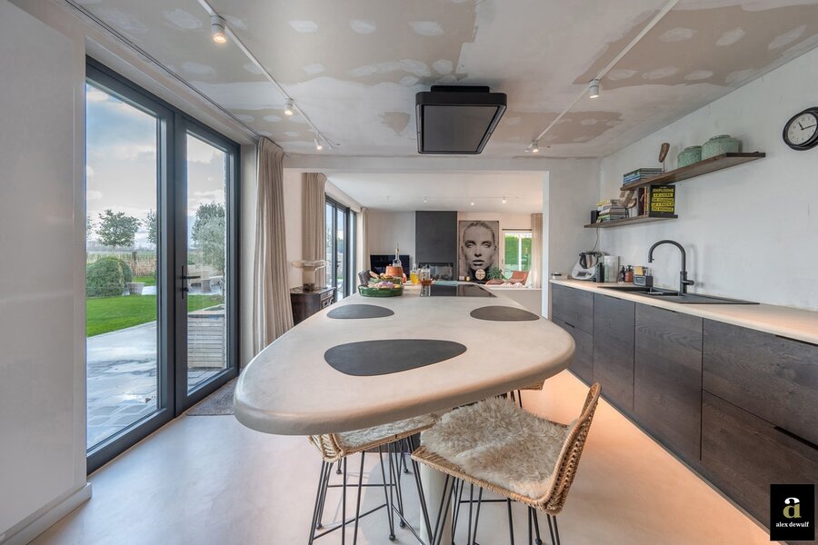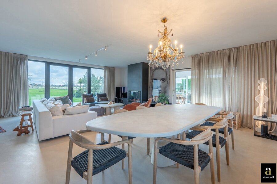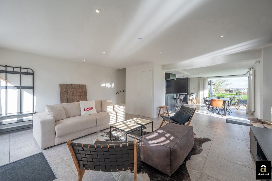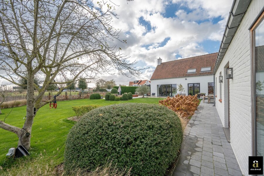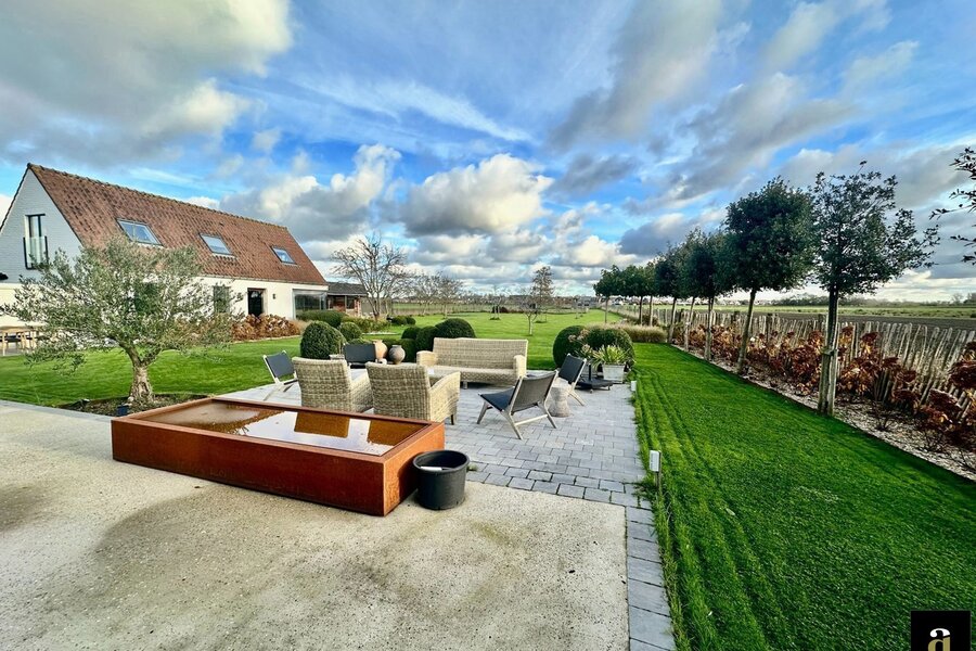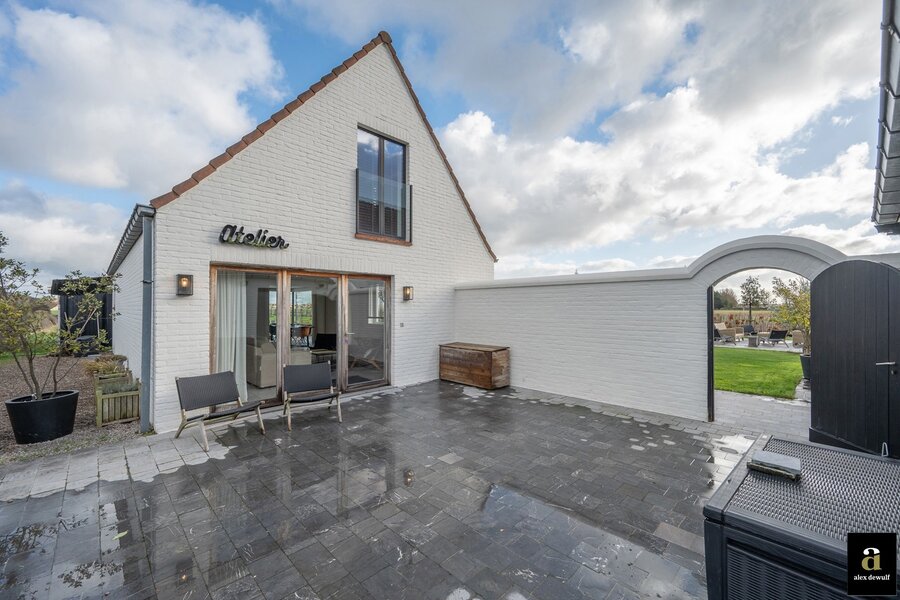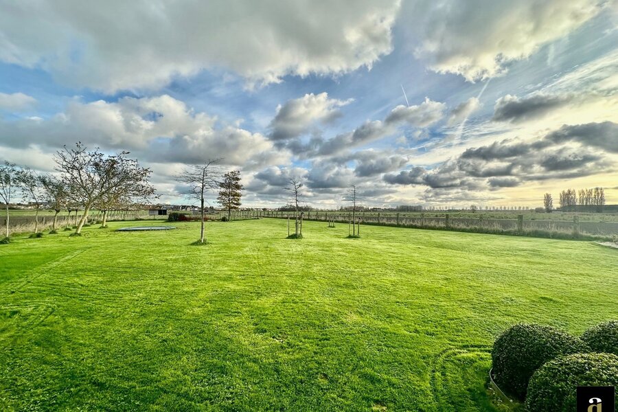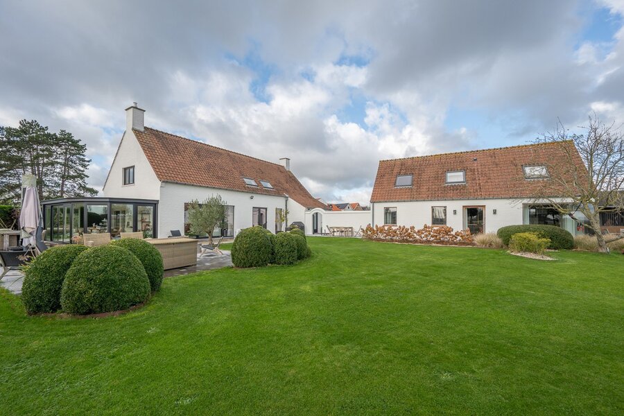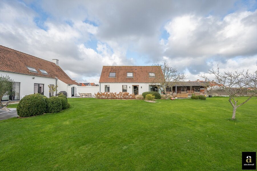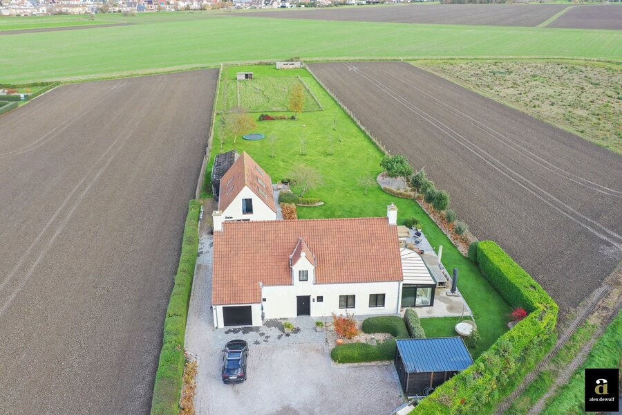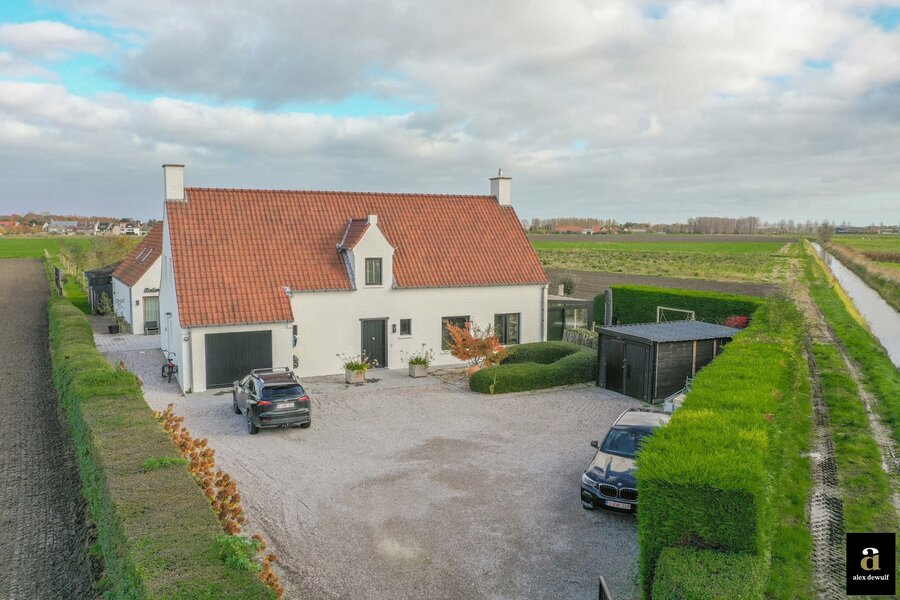 Charmante hoeve gelegen op een terrein van 5.460m2, genietend van vergezichten op de polders van Knokke. Indeling: inkomhal met gastentoilet. Ruime woon- en eetkamer met gashaard met toegang tot het terras en de zuid-west gerichte tuin. Open volledig geïnstalleerde keuken met ontbijteiland genietend van prachtige open zichten. Aan de leefruimte: gezellige veranda (nu bureauruimte). Eerste verdieping: Master bedroom met aansluitend badkamer (bad, lavabo en toilet). 3 slaapkamers. Aparte douchekamer (douche, lavabo en toilet). Inpandige garage voor twee wagens / wasplaats. Aparte atelier: ruime gezellige woonkamer met geïnstalleerde open keuken met eetkamer, genietend van de prachtige zichten naar de polders. Op het verdiep zijn er twee volwaardige slaapkamers met elk hun eigen douchekamer en toilet. Meerdere parkeerplaatsen voor de woning.