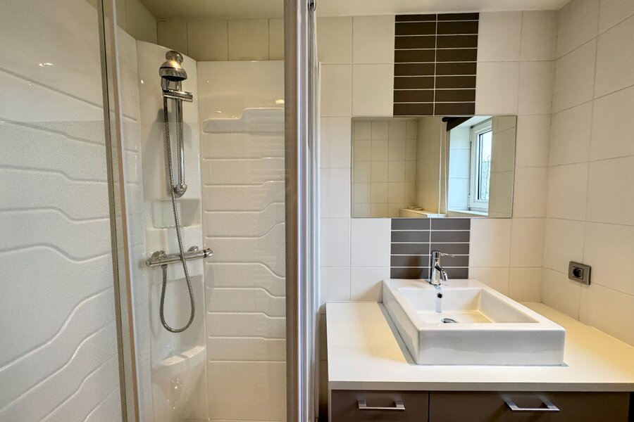 De eerste verdieping omvat twee volwaardige slaapkamers, een nachthal met ingemaakte kasten en een tweede badkamer met lavabo, toilet en douche.