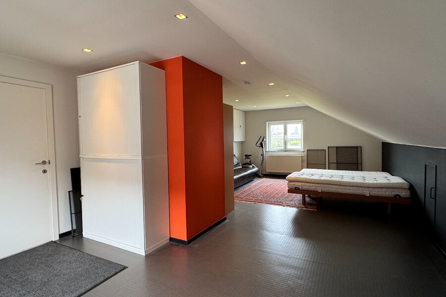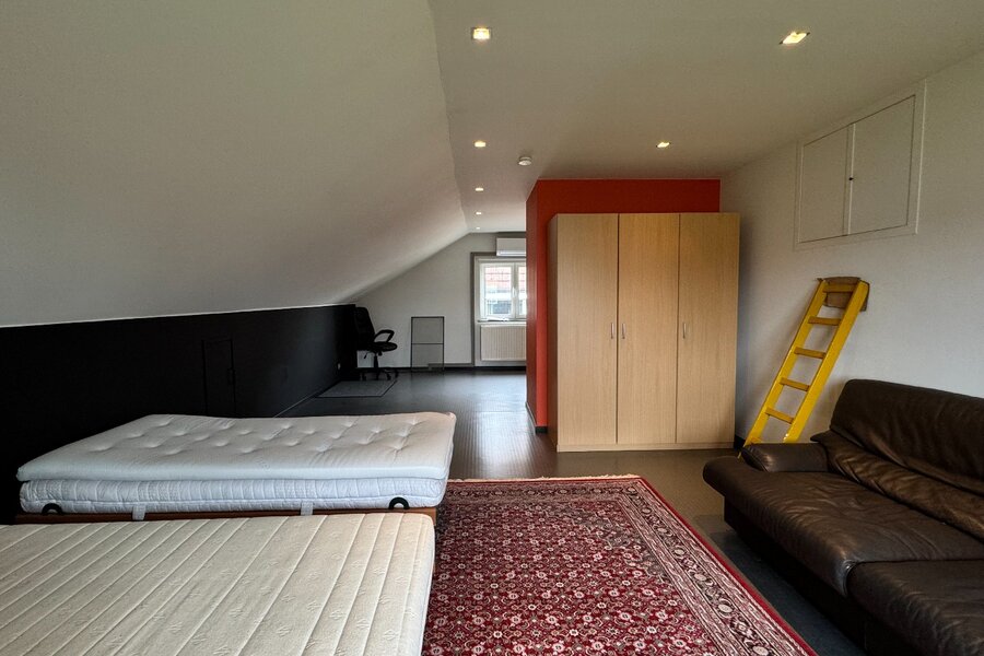 Een niveau hoger bevindt zich een ruime polyvalente ruimte die flexibel kan worden ingevuld als extra slaapkamers, hobbyruimte, bureau of ontspanningsruimte. Aansluitend is hier ook bijkomende zolderbergruimte.