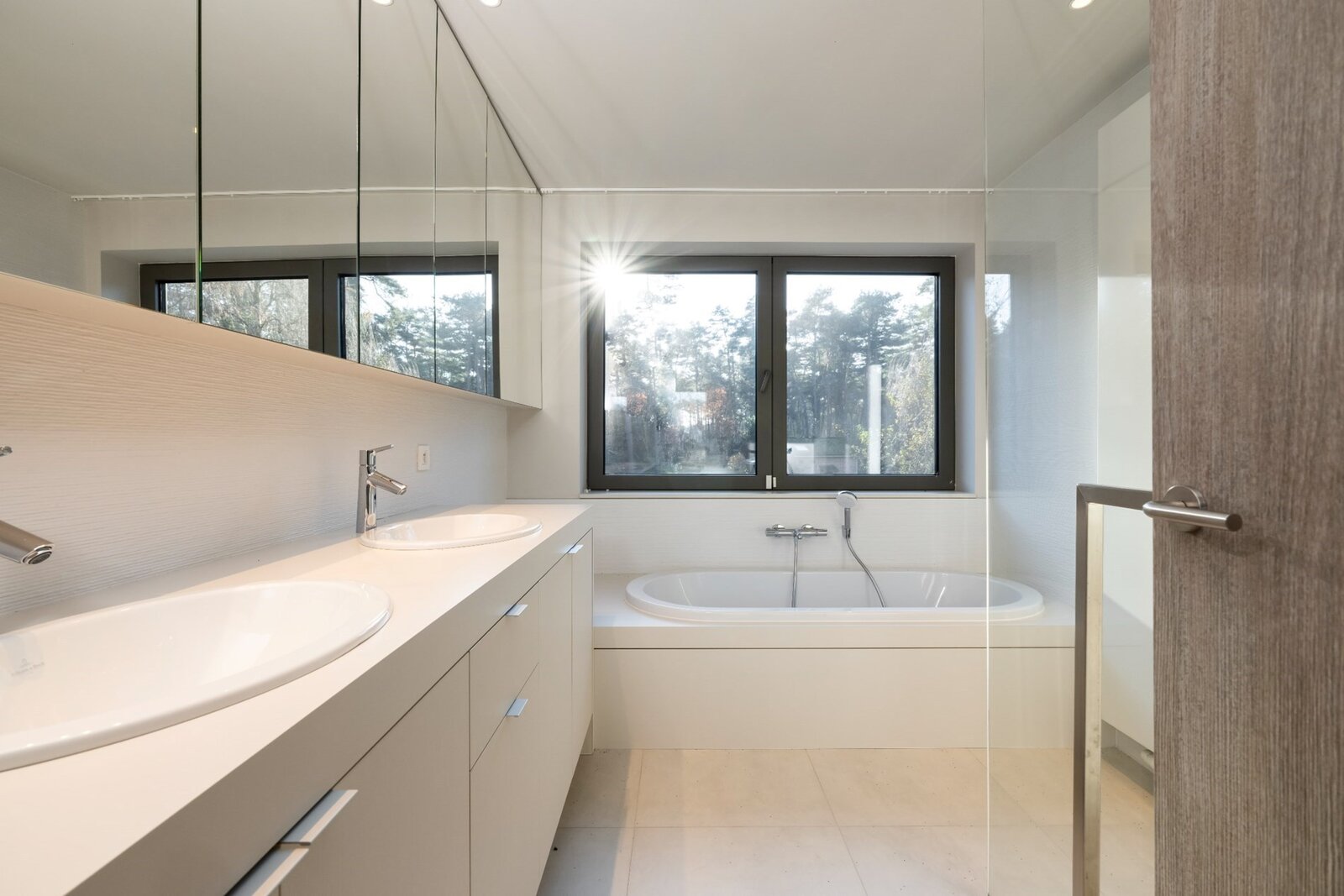 De tuin is zuidelijk georiënteerd en grenst aan het Nationaal Park Hoge Kempen. De woning beschikt over 40 zonnepanelen.